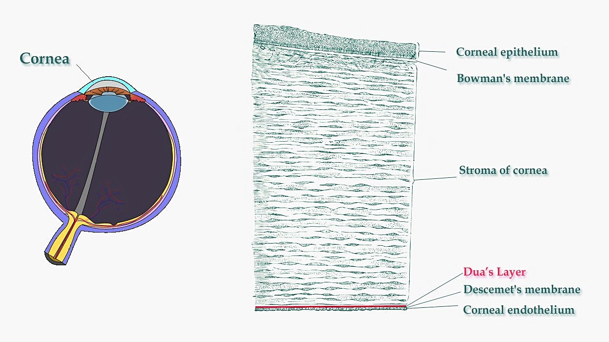 Yeni keşfedilen Dua'nın Katmanı, korneanın arka kısmında, kornea stroması ile Descemet'nin zarı arasında yer alıyor.