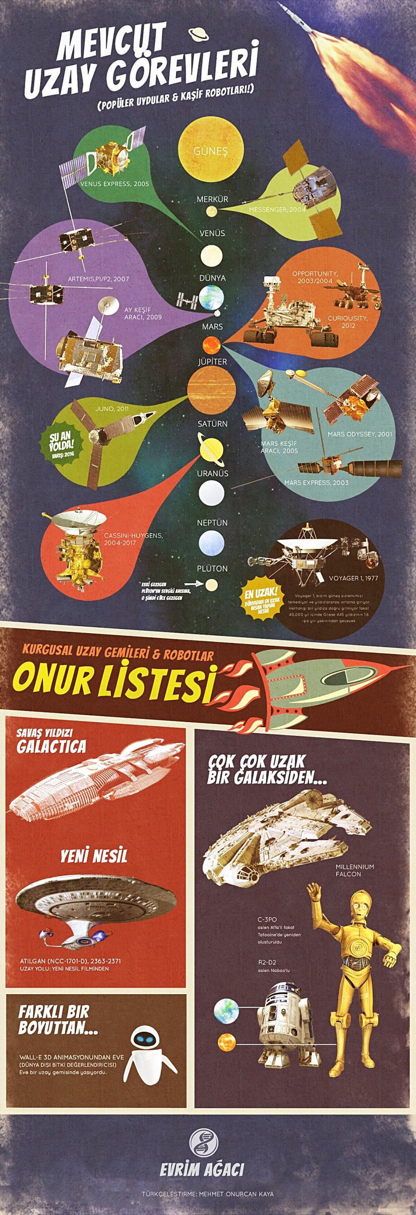 Bugüne kadar uzaya birçok araç gönderdik. Bunların bir kısmı işlevlerini kaybettiler, bir kısmı görevlerini başarıyla tamamladılar. Bazıları ise harıl harıl çalışmayı ve Evren ile ilgili bilgilerimizi genişletmeyi sürdürüyor.