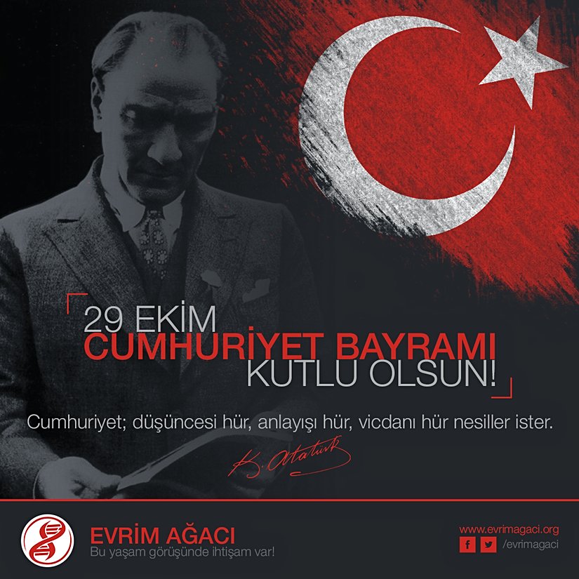 Efendiler, hanımefendiler! Türkiye'de bilimsel devrimi ve aydınlanmayı yaşatmak ve Anadolu insanının da çağdaş medeniyetler düzeyine uğraşması için ter döken genç, yaşlı, erkek, kadın, LGBTİ, düz, siyah, beyaz ve arasında kalan her renkten, her dinden, her dilden, her milletten, her ülkeden; aydın, hümanist, ilerici her türlü düşünceden olan okurumuzun 29 Ekim Cumhuriyet Bayramı'nı içtenlikle kutlarız!