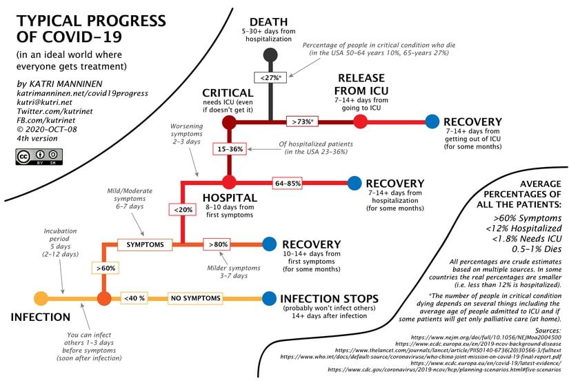 Devam eden salgınlarda, alınan önlemlere, geliştirilen ilaç ve aşılara, virüsün evrimsel sürecine bağlı olarak bu sayıların coğrafyadan coğrafyaya ve zamandan zamana değişebileceği hatırlanmalıdır. Örneğin salgının erken evrelerinde virüs hakkında yeni yeni bilgiler edinirken, şu tür bir bilimsel ilerleyiş kaydedilmişti (bunların bir kısmı geçerliliğini yitirmiştir):