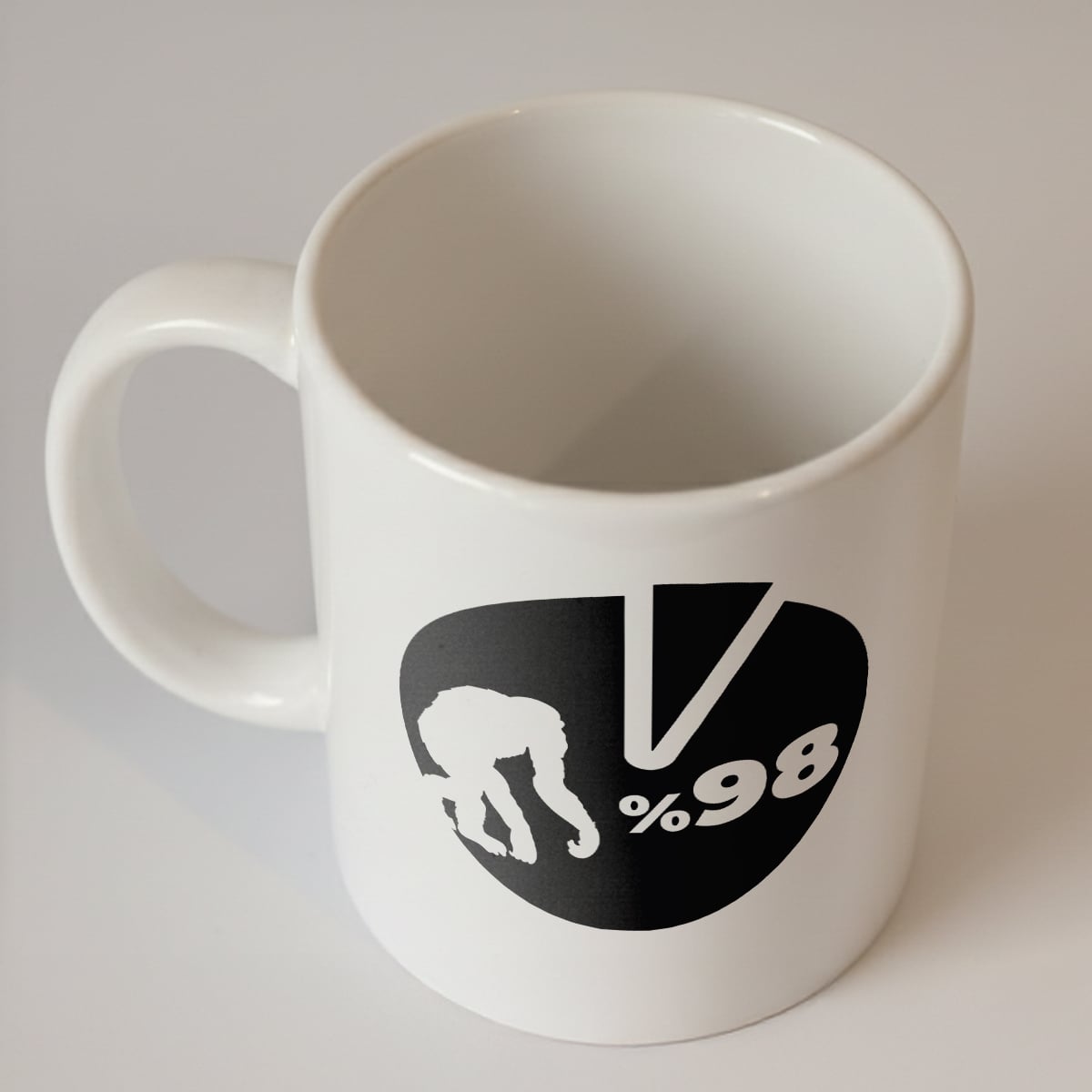Şempanzelerle olan %98'lik genetik benzerliğimize göz kırpan, sabah kahvenize evrimsel bir neşe katacak esprili bir tasarım. ☕ Bilimsel Bir Mola: Bu özel tasarım kupayı, bilimsel sohbetlerinize eşlik edecek en iyi lezzetle tamamlayın: Evrim Ağacı Kahvesi.