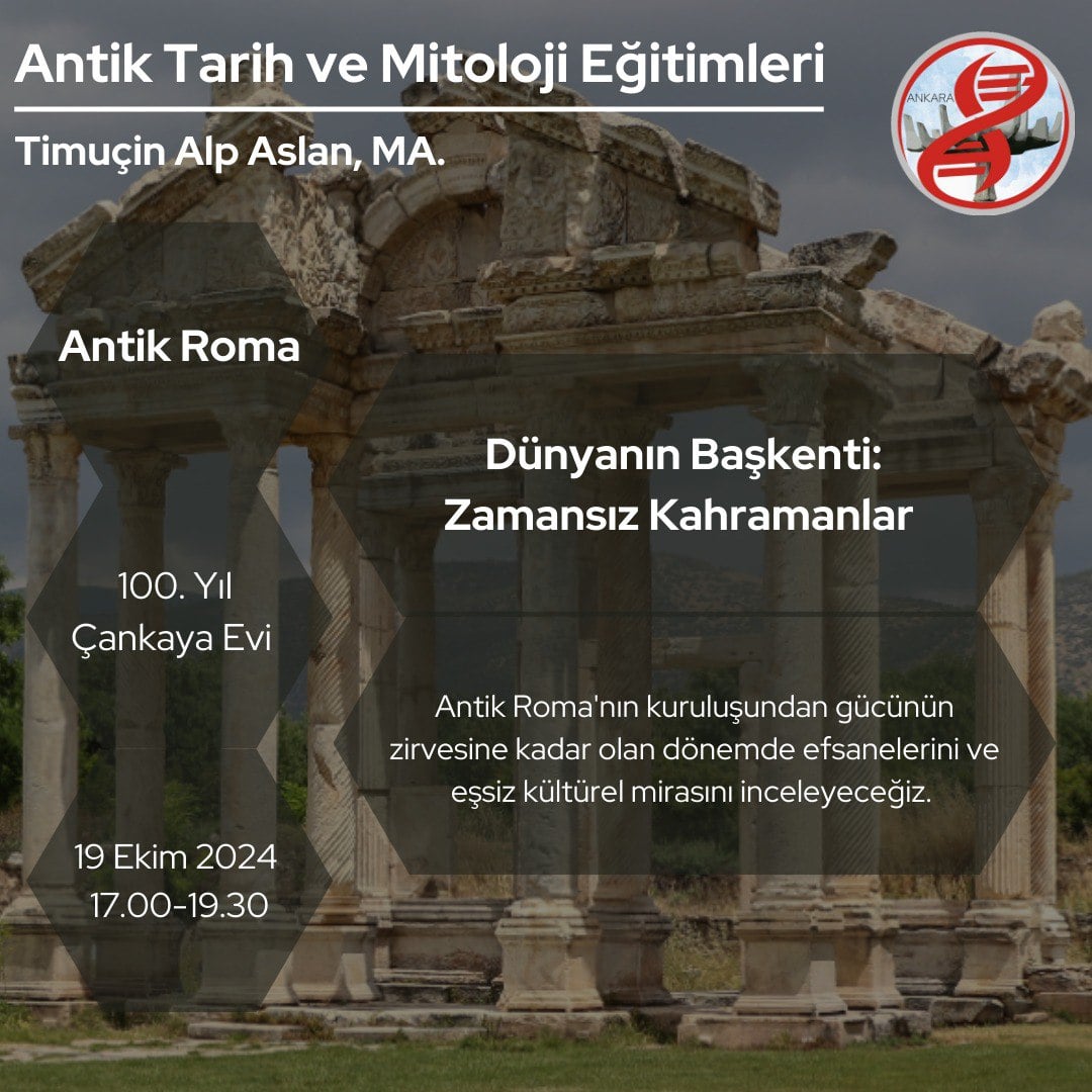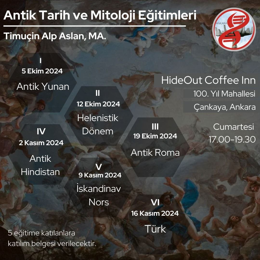 Evrim Ağacı Antik Tarih ve Mitoloji Dersleri, 5 Ekim 2024 tarihinde saat 17.00’da başlayacak olup diğer dersler de aynı gün ve saatte toplam 6 ders/6 hafta şeklinde yapılacaktır.