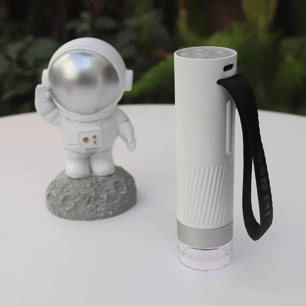 Sadece 100 gramdır. Hafif ve kompakt, silindirik gövde tasarımı ile düz zeminde her an dik durabilir. Taşınabilir bir bileklik ile taşıması kolaydır. Bu, çocukları bir öğretim aracı olarak keşfetmeye çıkarmak için veya cilt, saç, bitkiler, böcekler, mücevherler ve madeni paralar hakkında bilgi edinmek isteyen herkes için harika bir seçenektir.