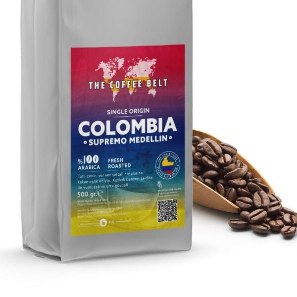 The Coffee Belt Colombia Supremo Medellin Yöresel Kahve 500 gr. Dünyanın en fazla kahve üretilen ülkeleri arasında yer alan Kolombiya popüler kahveleriyle bilinir. Kolombiya kahve çekirdekleri genellikle supremo ve excelso olarak birbirinden ayrılır. Supremo daha iri kahve çekirdeklerini temsil...