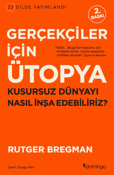 “Gerçekçiler İçin Ütopya, bir geleceği tahmin girişimi değil, geleceğin kilitlerini açma girişimi,” diyor Bregman. “Ve bunun için, ütopyalara geri dönmeliyiz.” Köleliğin kaldırılmasından kadın erkek eşitliğine, uygarlığımıza kilometre taşı olmuş pek çok gelişme, öncesinde birer ütopyaydı. Gerçekçiler İçin Ütopya, pek çok saha çalışması, deney ve vakadan faydalanarak, günümüzde ütopik gelebilecek kimi fikirlerin (mesela çalışsın çalışmasın herkese temel gelir) aslında erişilebilir olduğunu gösteriyor. Yeter ki tüketim üstüne kurulmuş, piyasa gerçekleri üstünde uzlaşmış bir uygarlıktan daha iyisi olabileceğimizi hatırlayalım.
