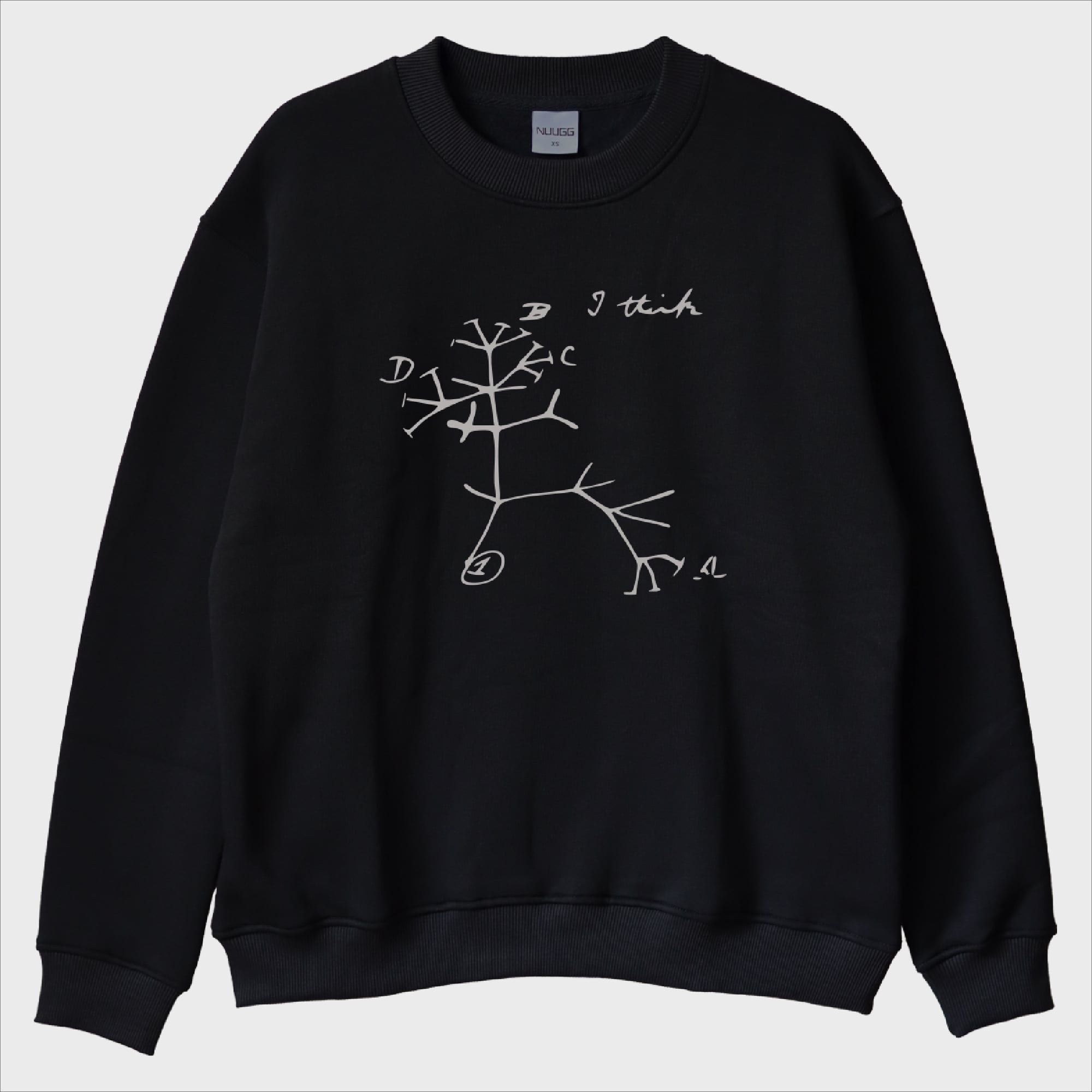 Darwin'in yaşam ağacı çizimi, türlerin ortak atadan evrimleştiği fikrini görselleştiriyor. Bu sweatshirt, evrimsel biyolojiye olan ilginizi yansıtırken, aynı zamanda bilimsel düşünceyi de destekliyor. Minimalist tasarımıyla her kombine uyum sağlıyor.