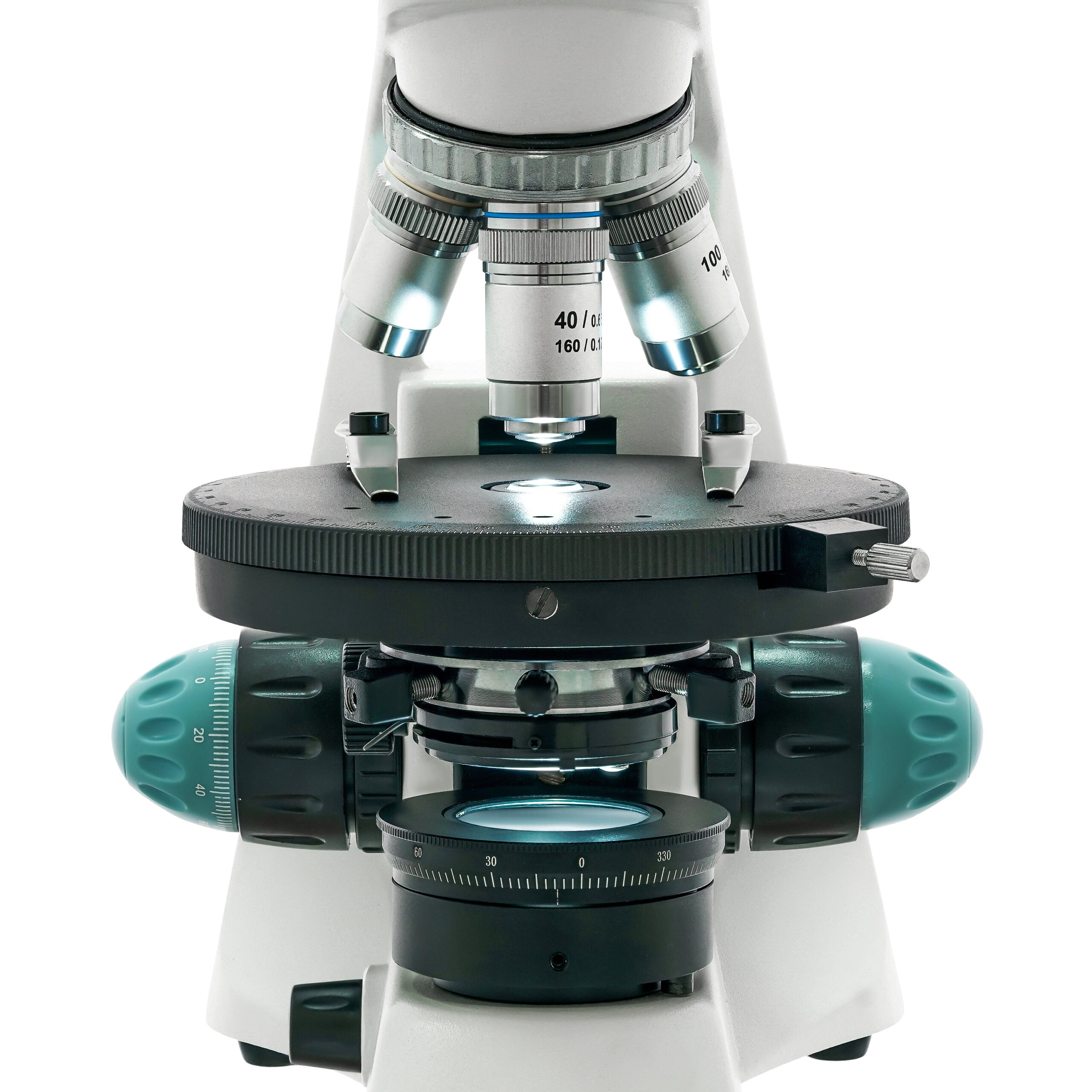 Levenhuk 500T POL Mikroskop, polarize ışık kullanımının yanı sıra parlak alan araştırması kullanmanıza da olanak tanır. Yeterlilikleri tıp, biyoloji, kristalografi, kriminoloji, metalografi ve diğer bilimsel alanlarda kullanılabilir. Bu profesyonel mikroskop güvenilir bir tasarıma sahiptir ve yüksek kaliteli optik parçalar ile donatılmıştır. Mikroskop bir trinoküler başlık ile donatılmıştır: binoküler görsel kısım hafif eğimlidir, dijital kameranın takılması için sunulan oküler tüp dikey olarak konumlandırılmıştır. Başlık 360° döndürülebilir. Optik düzen, 10x büyütme oranlı geniş alanlı göz mercekleri ve 4x, 10x, 40x ve 100x büyütme oranında büyütme sağlayan akromatik objektiflerden oluşur. 40x ve 100x objektiflerin ön mercekleri, koruyucu yaylı çerçevelerle donatılmıştır. 100x objektifin yardımıyla yağa daldırma yöntemini kullanarak araştırma yapabilirsiniz. Kaba ve ince odaklama kullanılabilir. Mikroskop yuvarlak bir döner lamel yuvası kullanır. Mikroskop slaytlarının üzerine sabitlenmesi için klasik klipsler kullanılır. Lamel yuvasının altında, iris diyaframlı ve filtre tutuculu bir kondansatör bulunur. En altta kolektörlü bir LED ışıktan oluşan bir aydınlatma birimi yer alır. Işık parlaklığı ayarlanabilir. Buna ek olarak, mikroskop dahili bir polarizör ve analizöre sahiptir. Aydınlatma, bir AC güç kaynağı ile desteklenir. Özellikler: