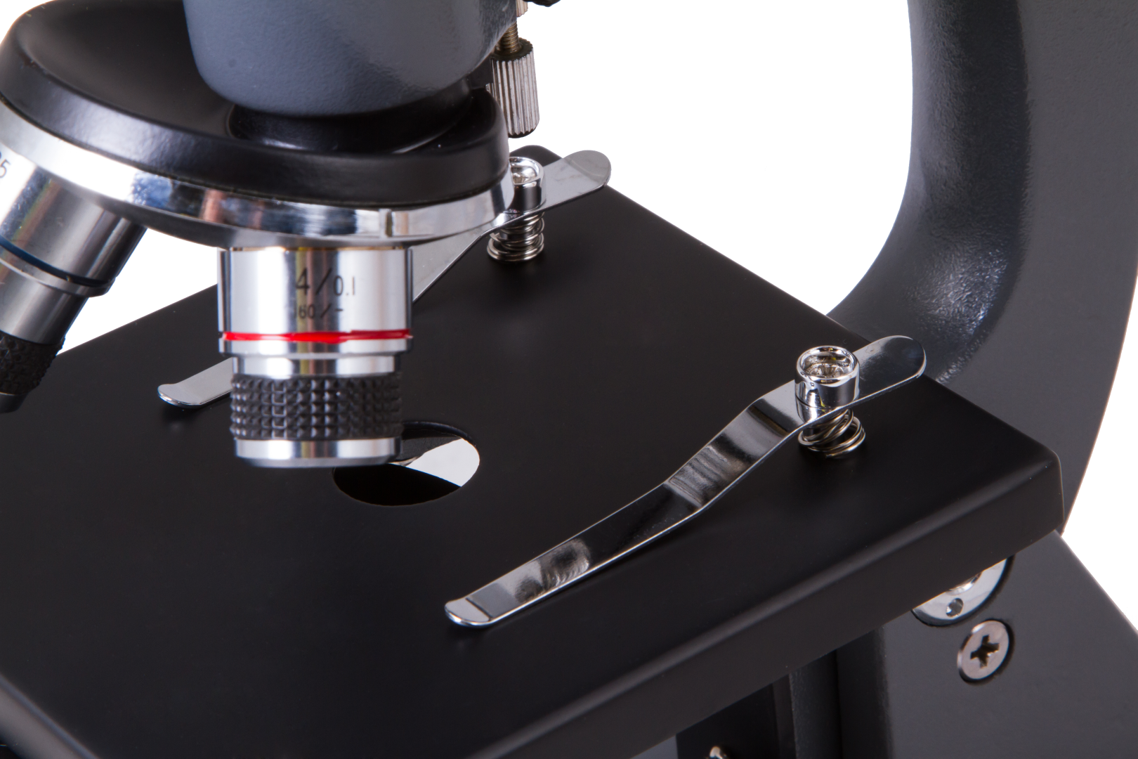 Mikroskopun optik elemanlarının tamamı camdan yapılmıştır ve dayanıklı bir metal gövde ile korunmaktadır. Döner burun parçası, üç objektif merceği için geliştirilmiştir ve kolaylıkla döndürülür. Monoküler burun parçası, uygun büyütme oranının elde edilmesi için göz merceklerinin değiştirilmesine olanak tanır. Lamel yuvası, standart lamel yuvası klipsleriyle donatılmıştır. İnce ve kaba odaklama düğmeleriyle keskinliği ayarlayabilirsiniz.