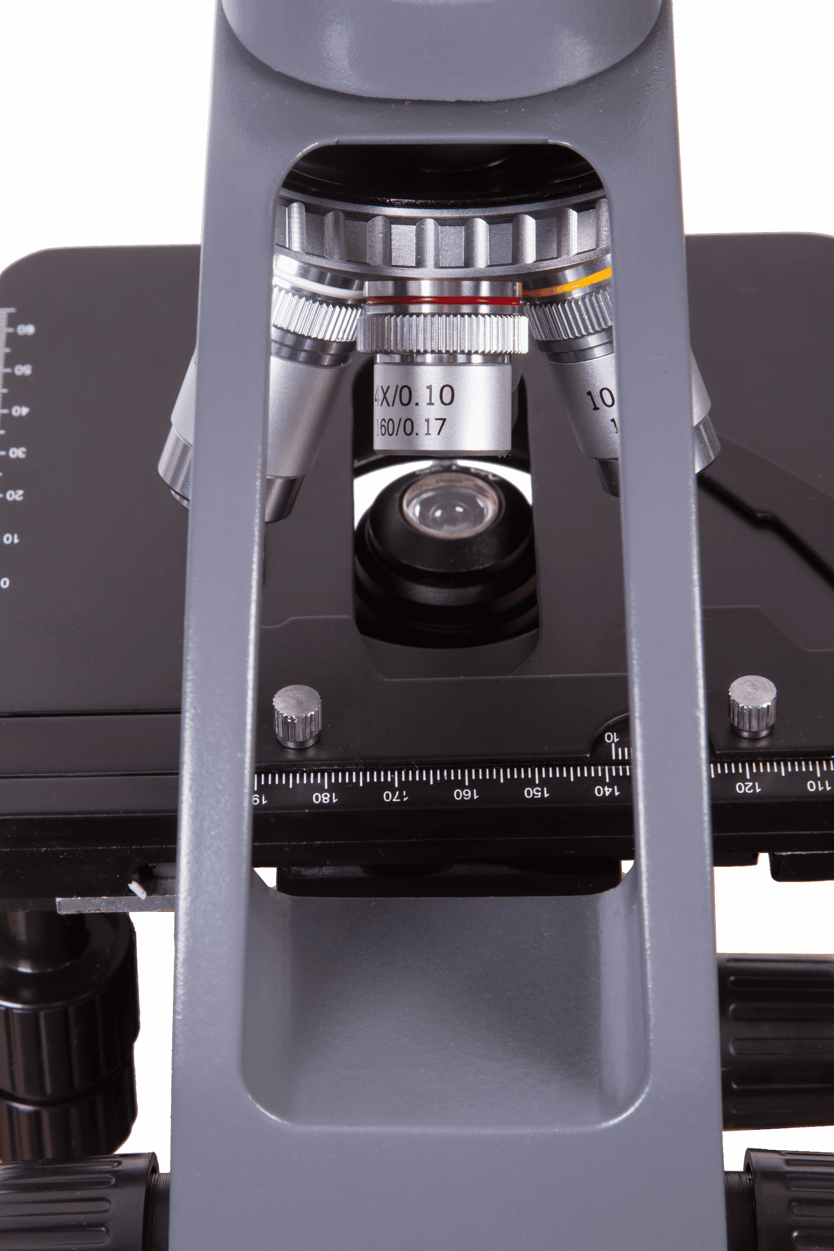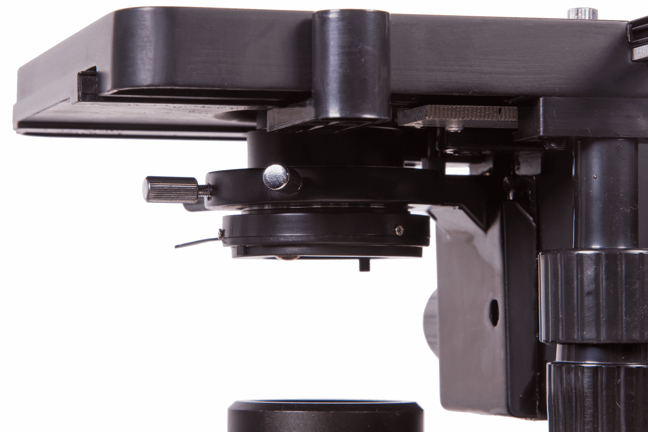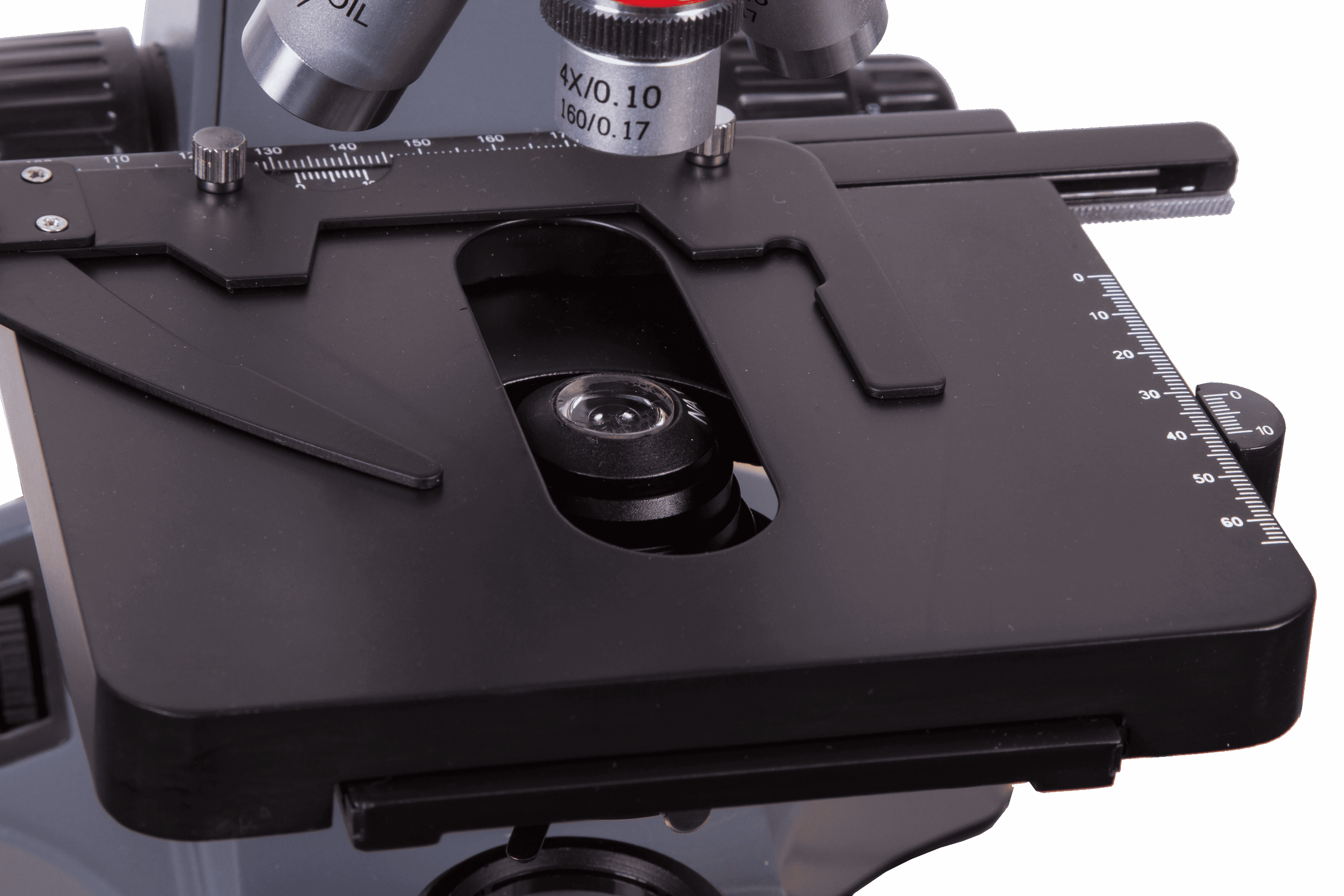 Mikroskop lamel yuvası dikey ve yatay hareket eder; bu nedenle numunelerin maksimum büyütme oranında gözlemlenmesi kolaydır. Lamel yuvasında eksenler boyunca hareketin doğruluğunu belirlemenize yardımcı olan bir koordinat ölçeği bulunur. Lamel yuvası manuel olarak kontrol edilir. Odaklama, kaba ve ince olmak üzere iki tür ayara sahiptir.
