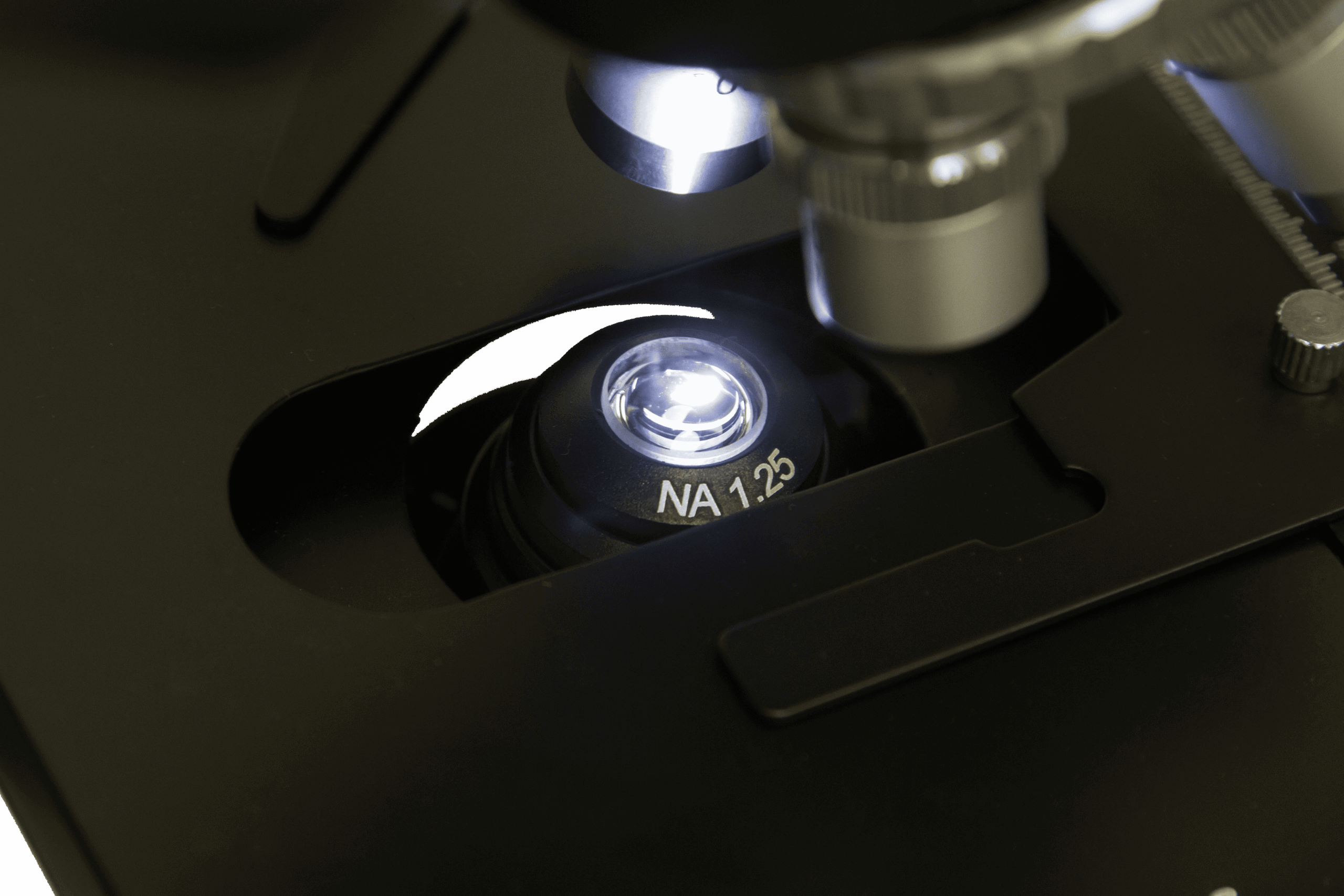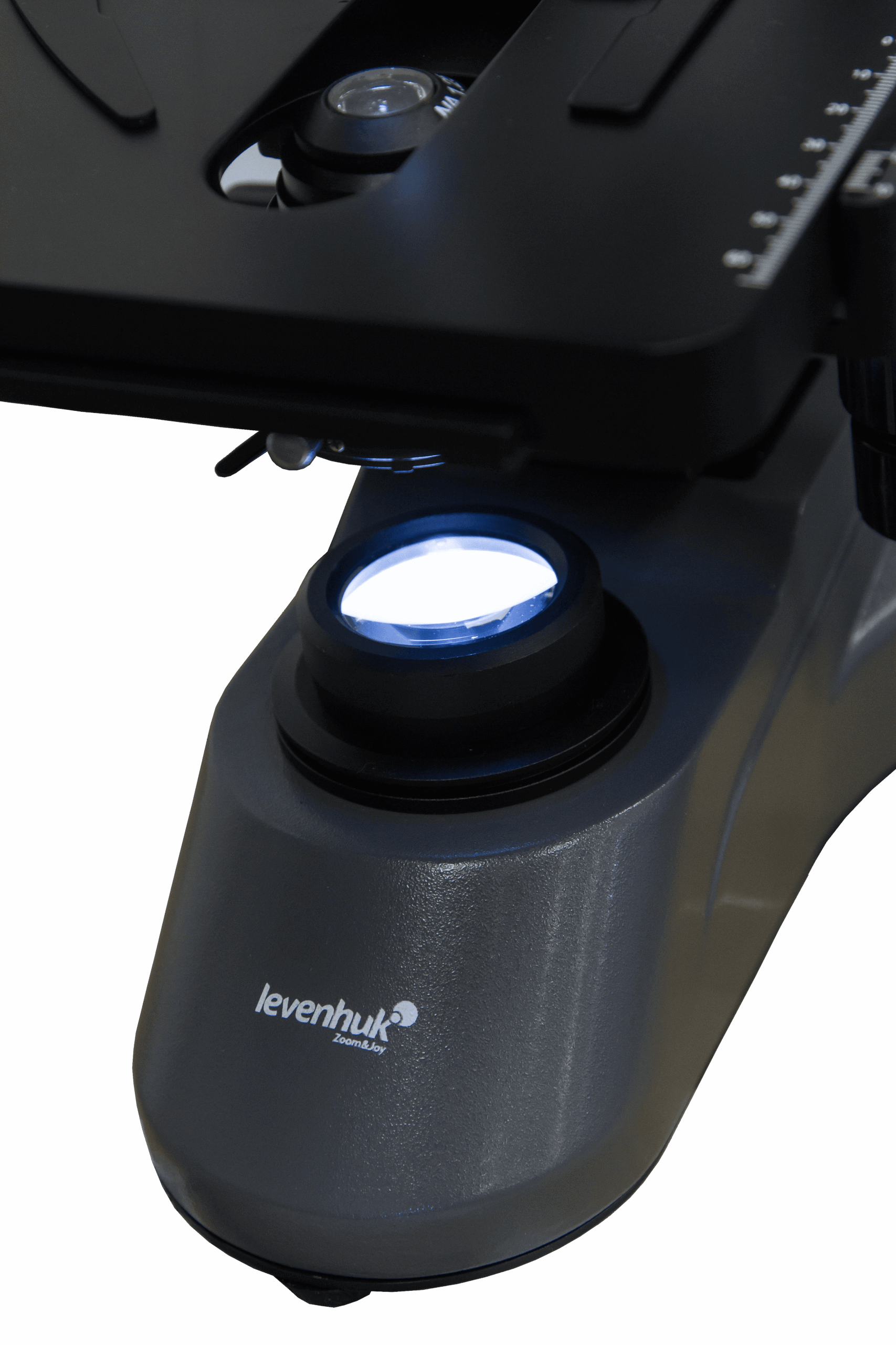Parlaklığı ayarlanabilir aydınlatma, lamel yuvasının altında bulunur. Gözlemlenen numunelerin daha da iyi aydınlatılması için iris diyaframlı bir Abbe kondansatörü kullanılır. Işığı tam olarak incelenen numuneye yönlendirir. Kondansatör özel merkezleme vidaları ile donatılmıştır. Aydınlatma bir prizle desteklenir, güç kablosu ürünle birlikte verilir.