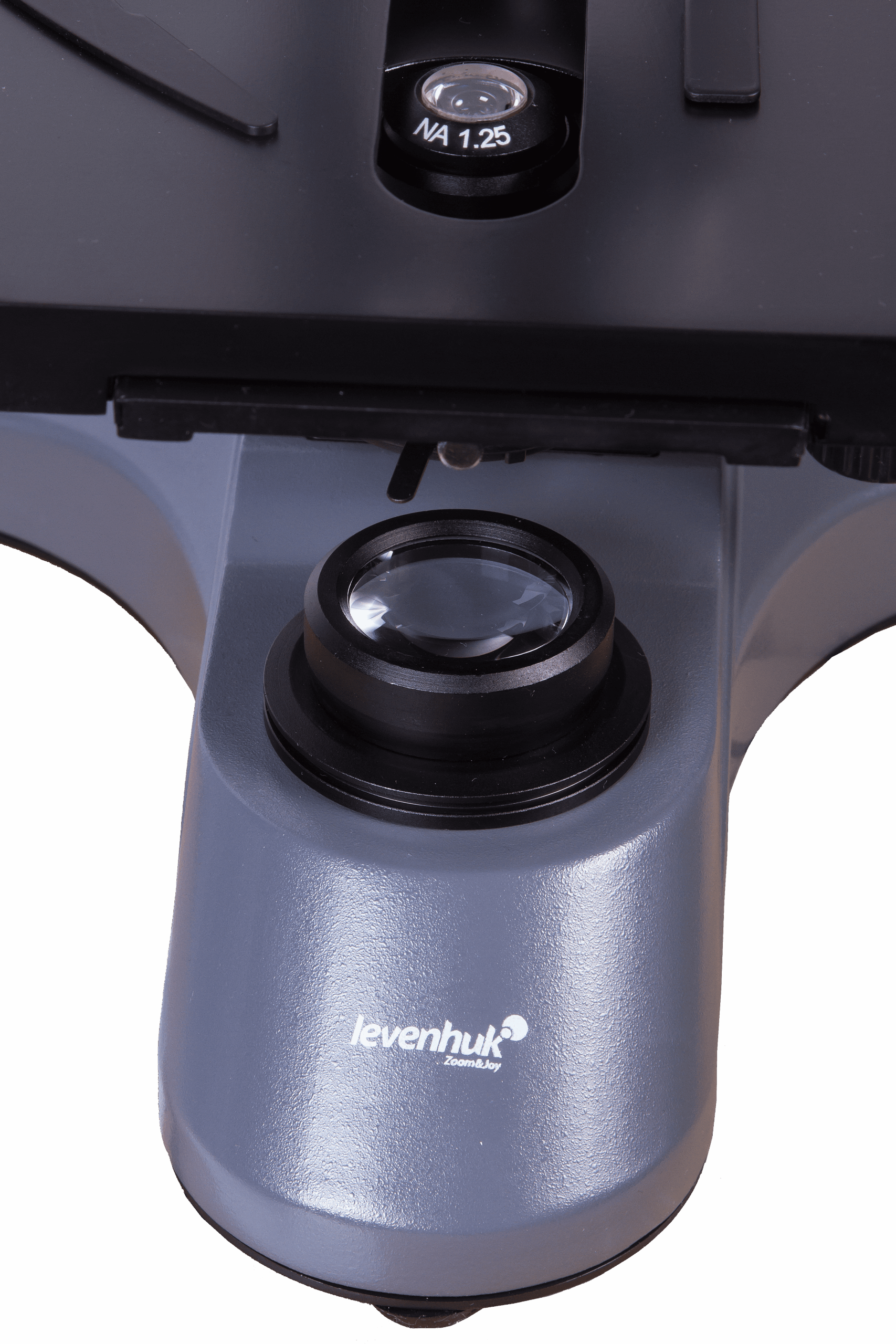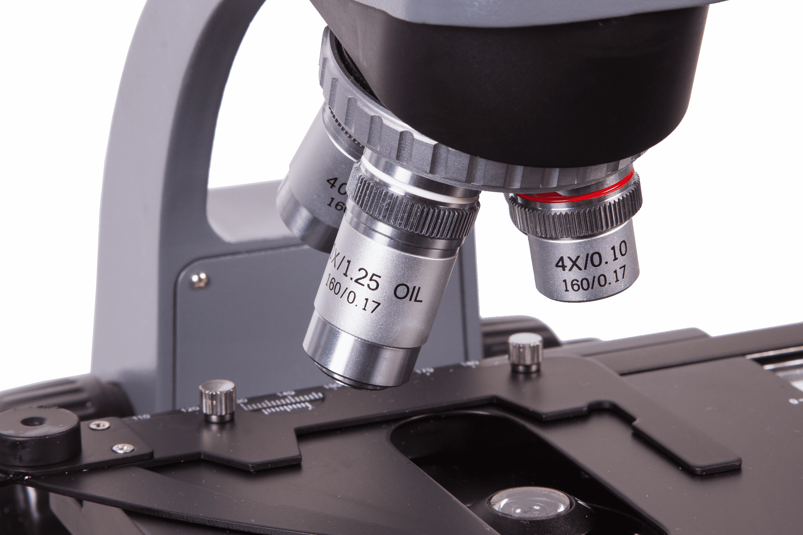 Mikroskop, 4 objektif mercekli bir döner burun parçası ile donatılmıştır. Kit, farklı büyütme oranlarına sahip akromatik objektif mercekleri içerir; bunlardan biri daldırma tipi mercektir. Daldırma yağı kullanımı, gözlemlenen mikroskop numunelerinin parlaklığını kayda değer oranda artırabilir ve büyütme oranı sınırlarını genişletebilir. Kite dahil olan iki geniş alanlı göz merceği (10x göz merceği ve 20x Huygens göz merceği) birbirine harika bir şekilde eşlik eder ve geniş bir görsel gözlem aralığına olanak tanır. Mikroskopun genel büyütme aralığı 40x ilâ 2000x'tir.