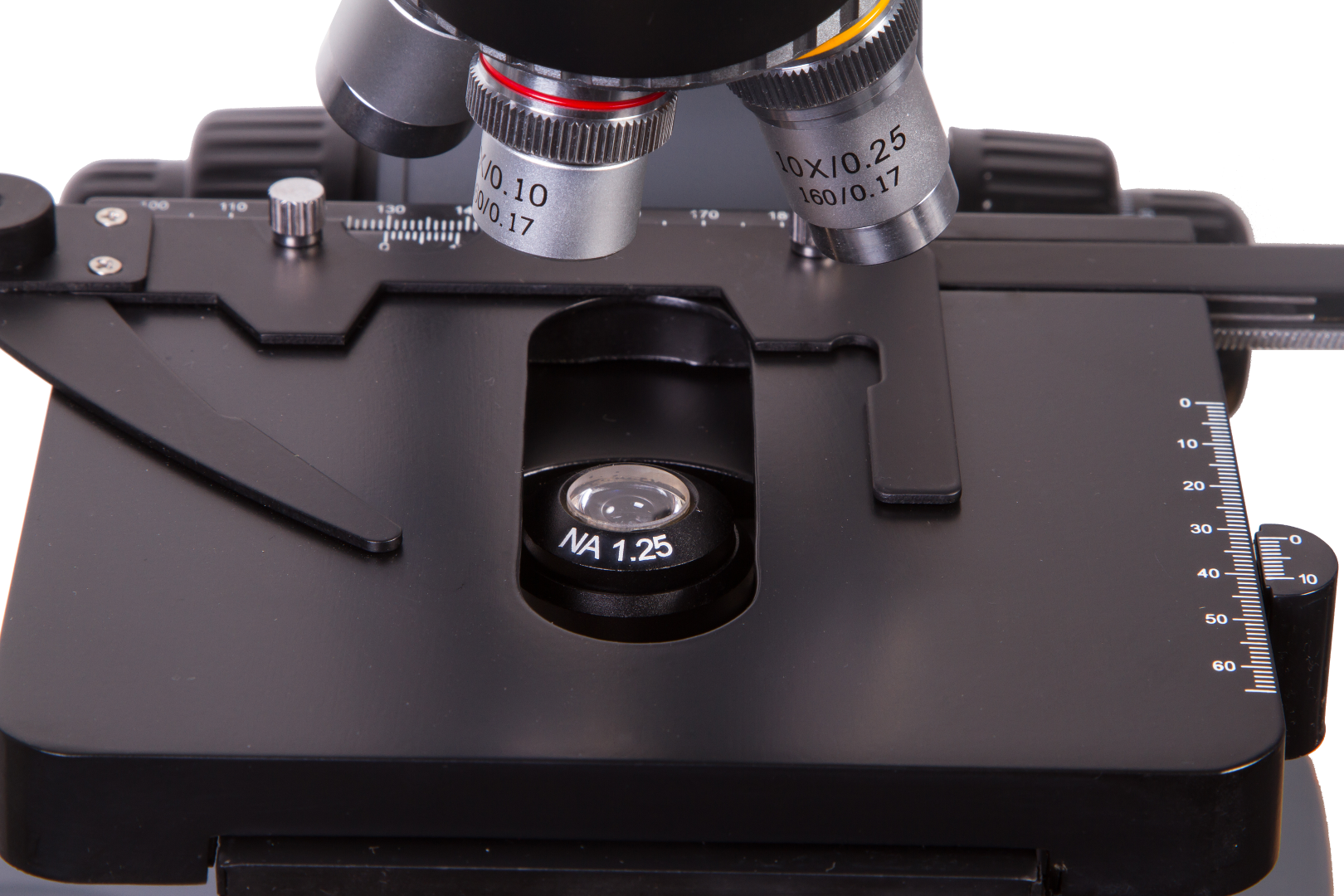 Numuneler, iki kullanışlı metal klips ile lamel yuvasına sabitlenir. Lamel yuvasının kendisi dikey ve yatay olarak hareket eder; bu şekilde araştırma alanını doğru bir şekilde belirleyebilir ve numunenin küçük bir kısmına odaklanabilirsiniz. Odaklama mekanizması ince ve kaba keskinlik ayarı yapılabilmesini sağlar. Çoğu amatör mikroskop modelinde bu kullanışlı özellik mevcut değildir.