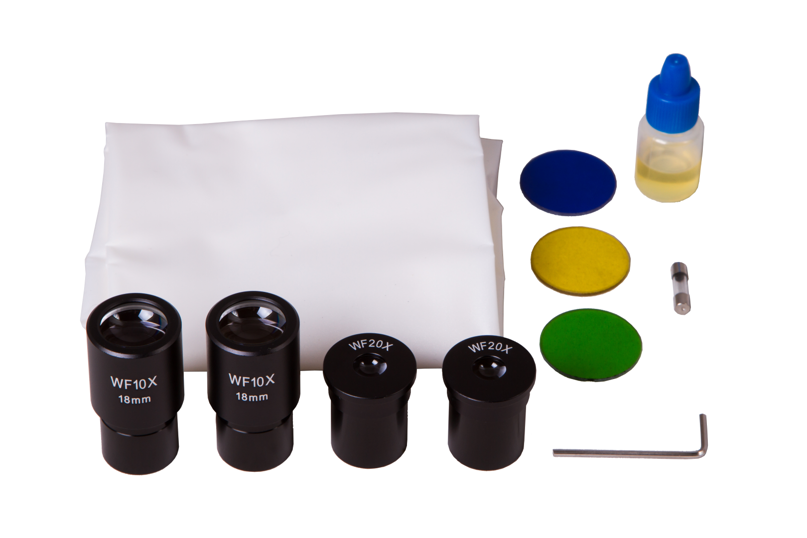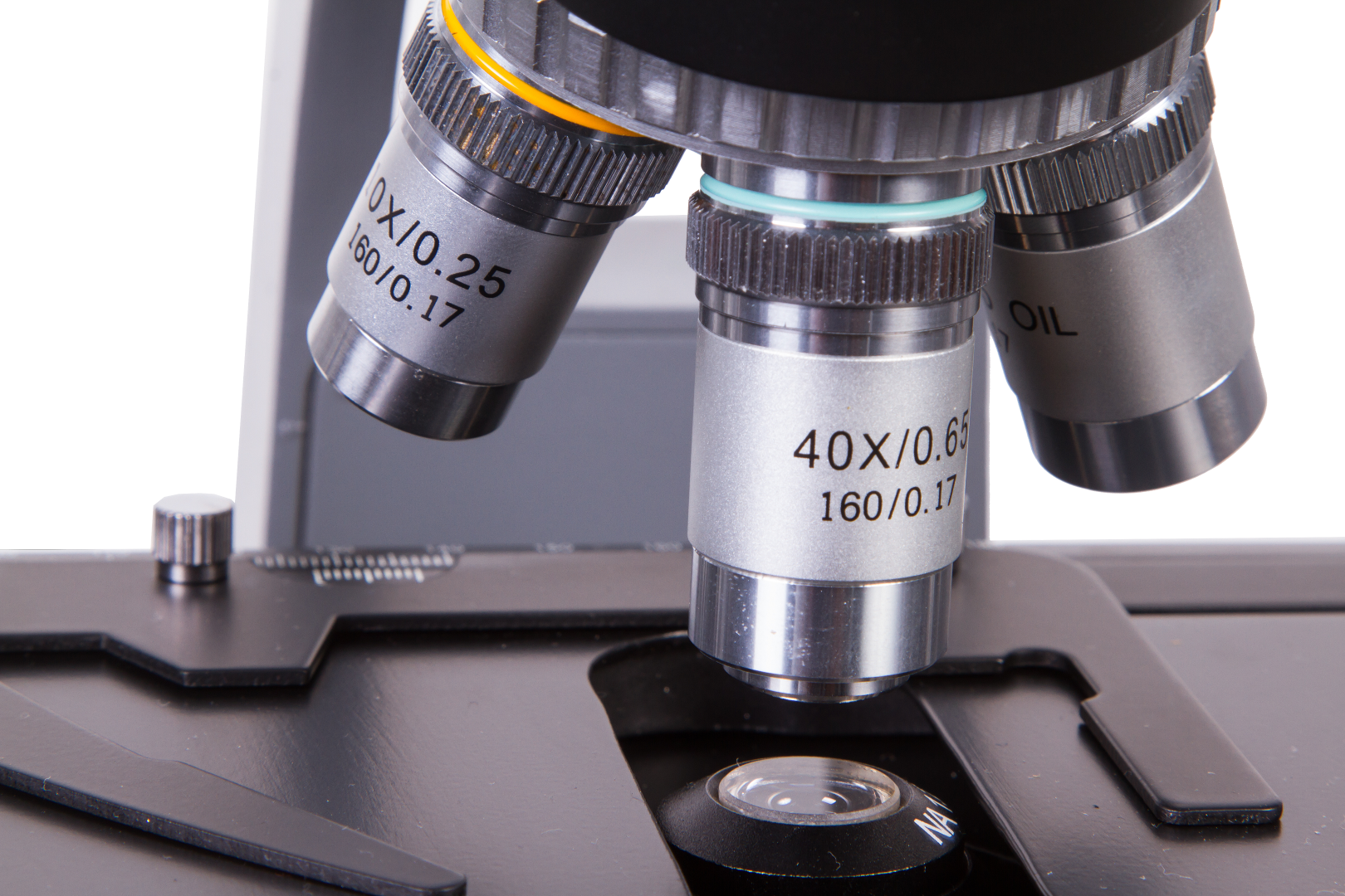 Döner burun parçası, dört objektif merceği yerleştirilebilecek şekilde geliştirilmiştir. Bunların farklı büyütme oranlarında birbiriyle değiştirilebilir merceklerle birleştirilmesiyle 40x–2000x aralığında geniş bir sabit büyütme oranı elde edebilirsiniz. Kit dahilindeki tüm göz mercekleri çift olarak sunulmaktadır.