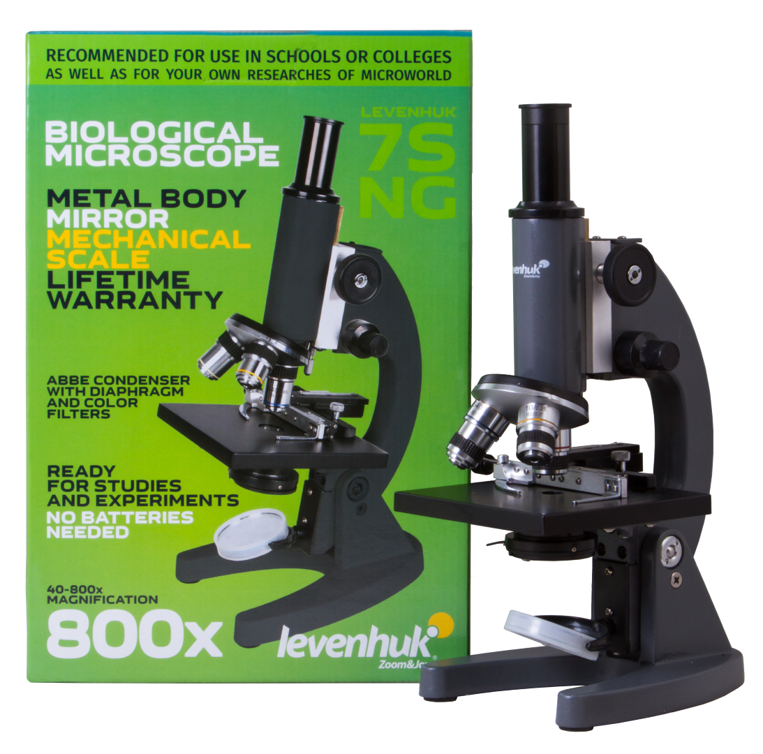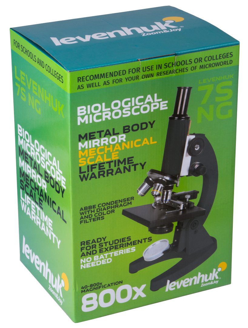 Levenhuk 7S NG Mikroskop, özellikle okul çağındaki ve bilime ilgi duyan çocuklar için geliştirilmiştir. Güvenilir ve kullanımı kolay optik araç, mikro dünyanın 800x büyütme oranında gözlemlenebilmesini mümkün kılar. Bu büyütme oranı, eğlenceli biyoloji deneylerinin yapılması, tek hücreli organizmaların gözlemlenmesi ve hazırlanmış mikroskop slaytlarının ayrıntılı olarak incelenmesi için yeterlidir.