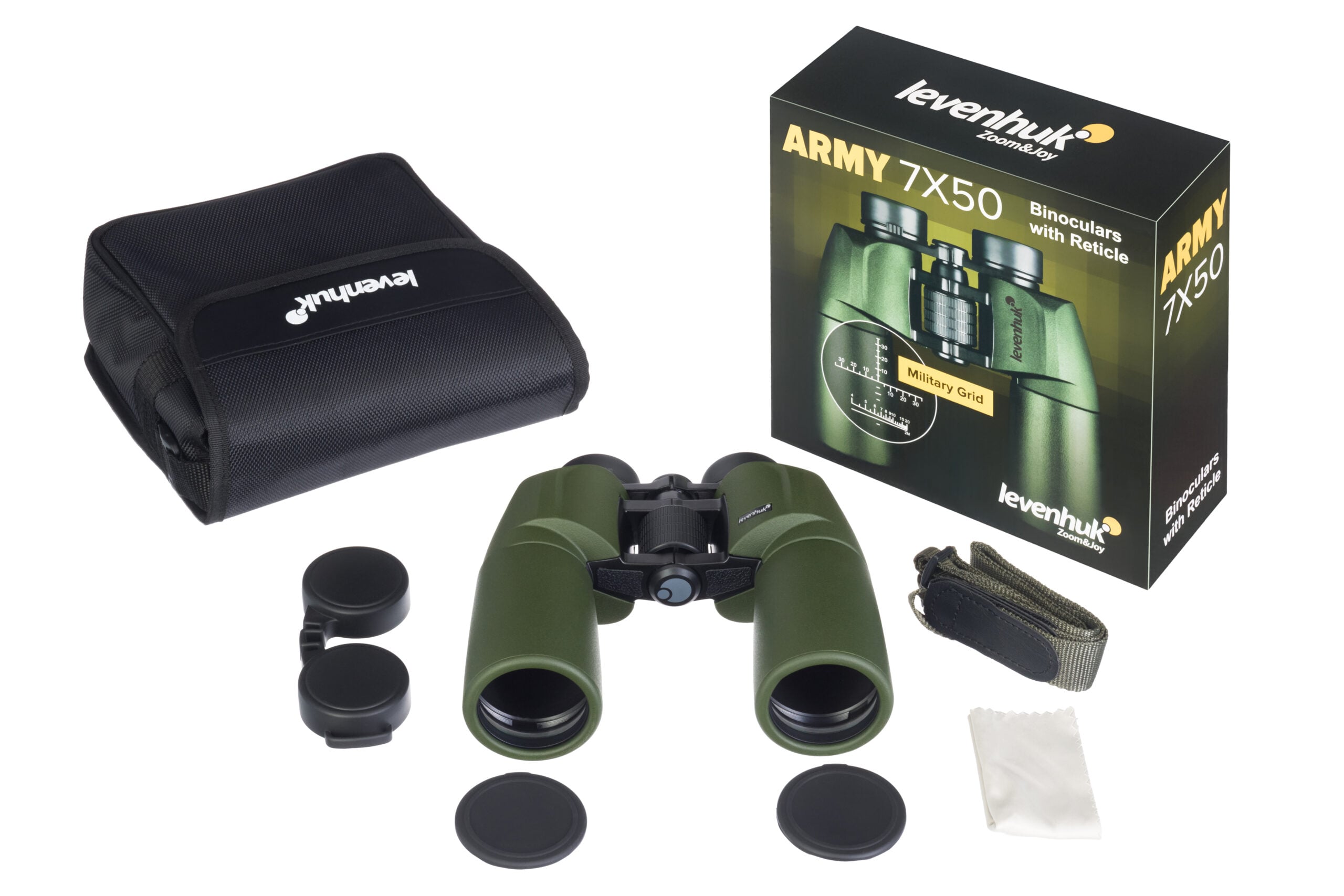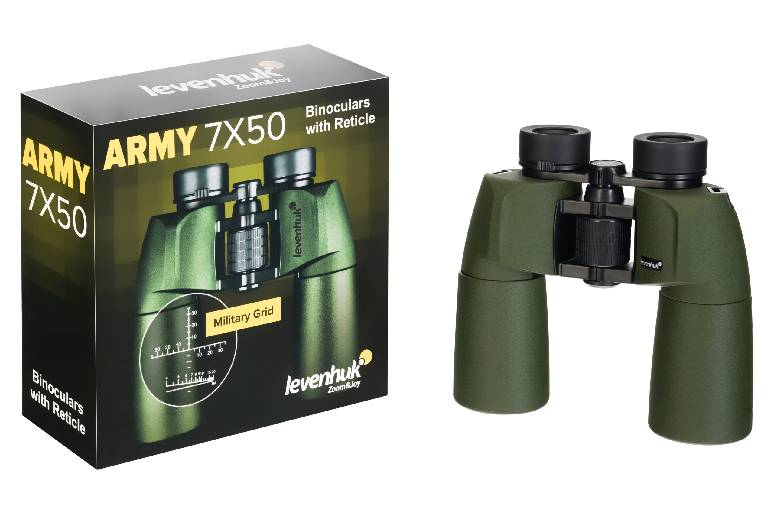 Levenhuk Army 7x50 Artıkıllı Binoküler Dürbün, yüksek diyafram açıklığı sayesinde düşük ışık koşullarında etkili gözlem sunan, saha kullanımına yönelik bir optik cihazdır. Avcılık, yürüyüş, balıkçılık ve denizcilik faaliyetlerinin yanı sıra arazi ölçümü ve güvenlik amaçlı profesyonel kullanıma da uygundur. 7x büyütme ile manzaralar ve uzak hedefler net şekilde izlenebilir. Göz merceğinde yer alan ölçekli artıkıl, mesafe, yükseklik ve açı tahmini yapılmasını sağlar.