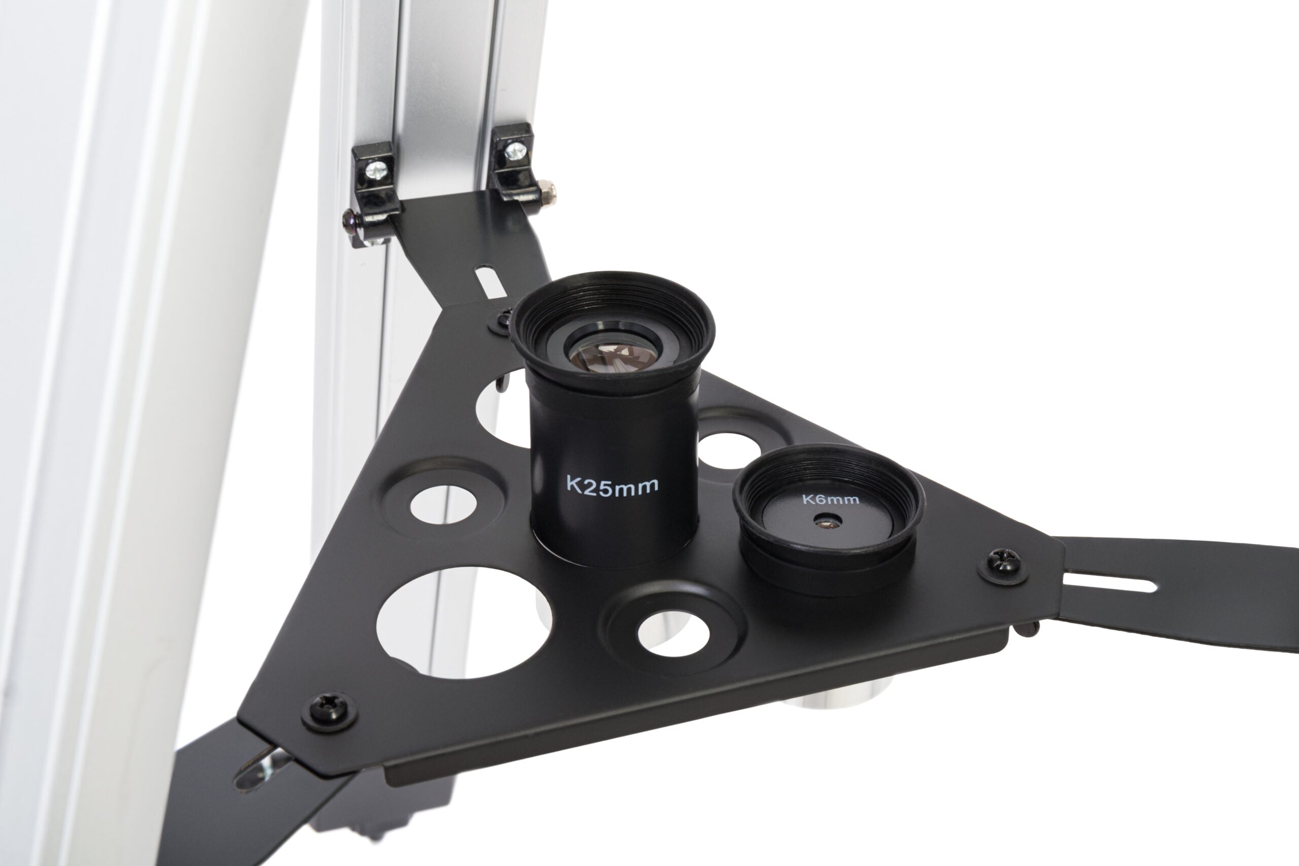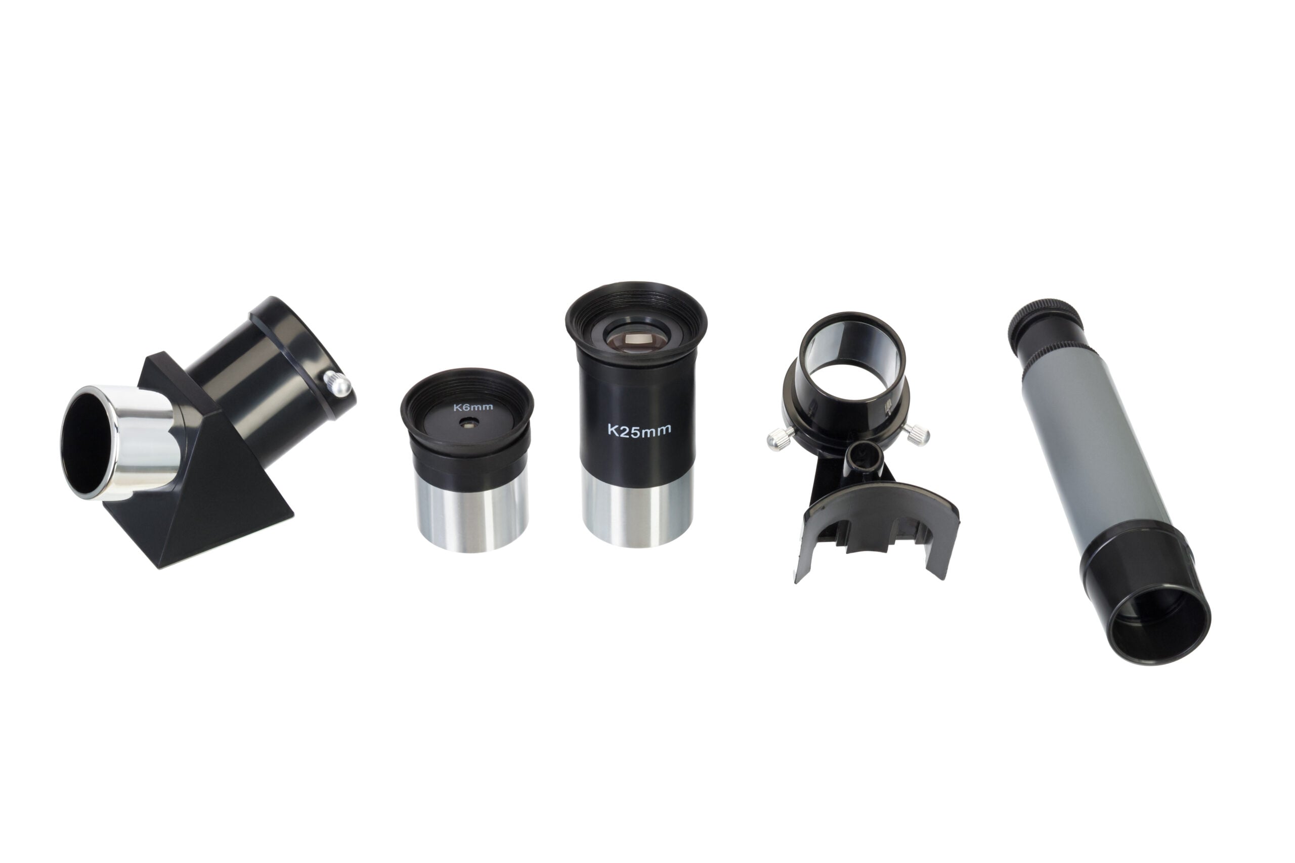 Ekvator kundak (EQ1) ve yavaş hareket kumandaları, gök cisimlerinin daha hassas takibini sağlar. 1,25" odaklayıcı, standart aksesuarlarla uyumludur. Alüminyum tripod ve temel aksesuarlar kutu içeriğine dahildir.