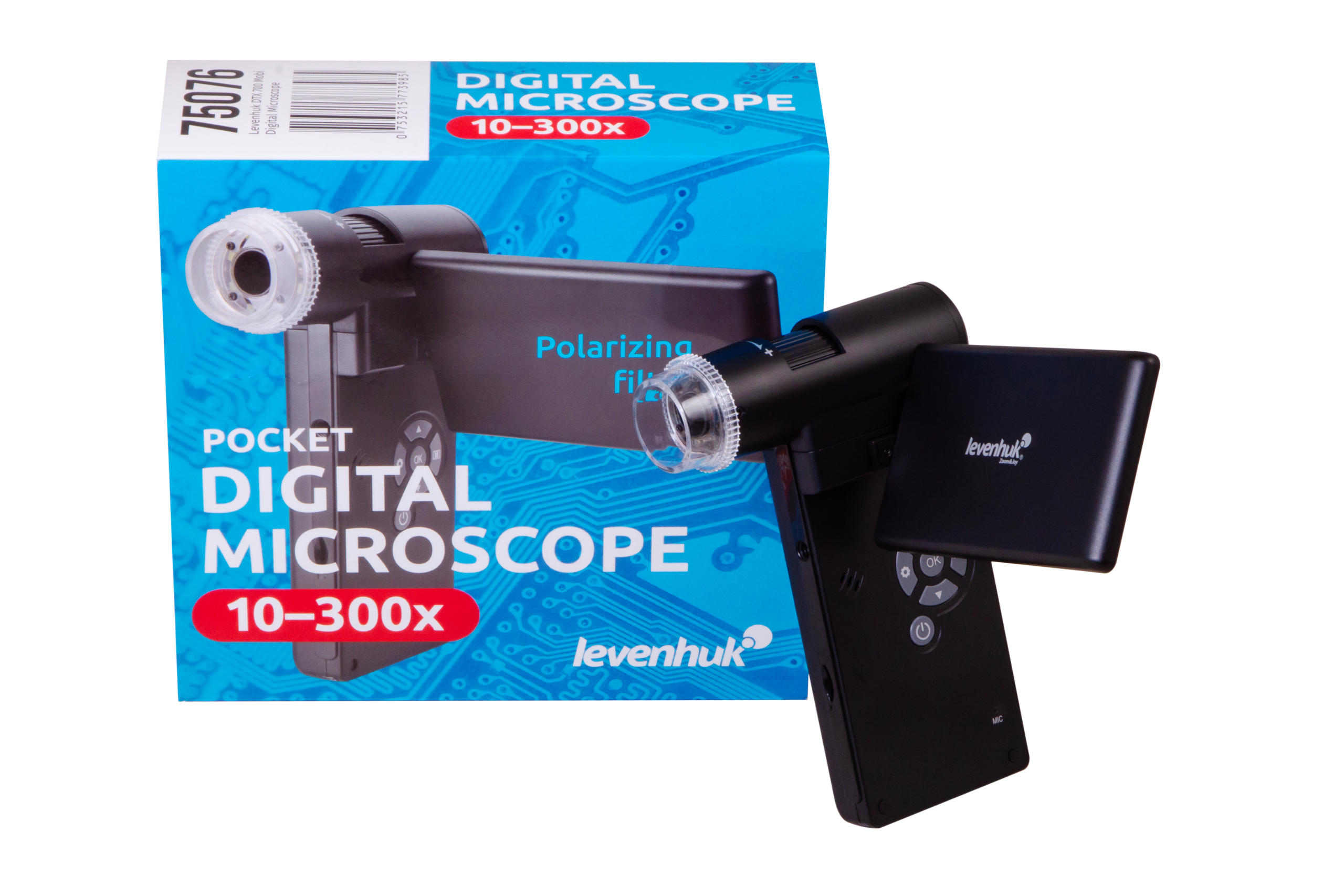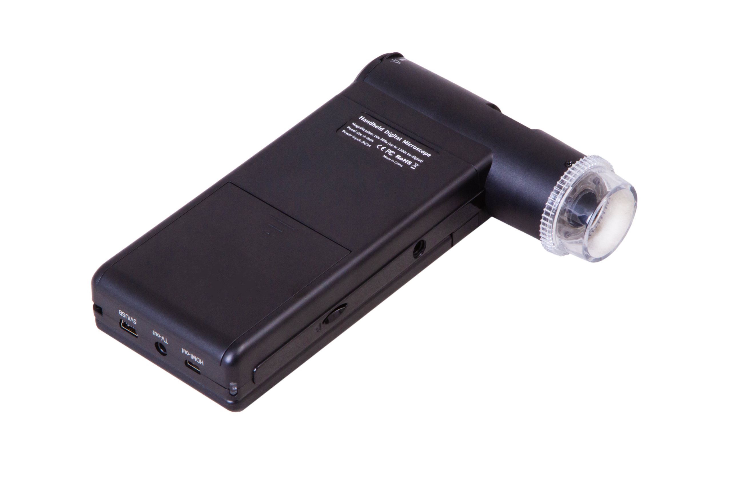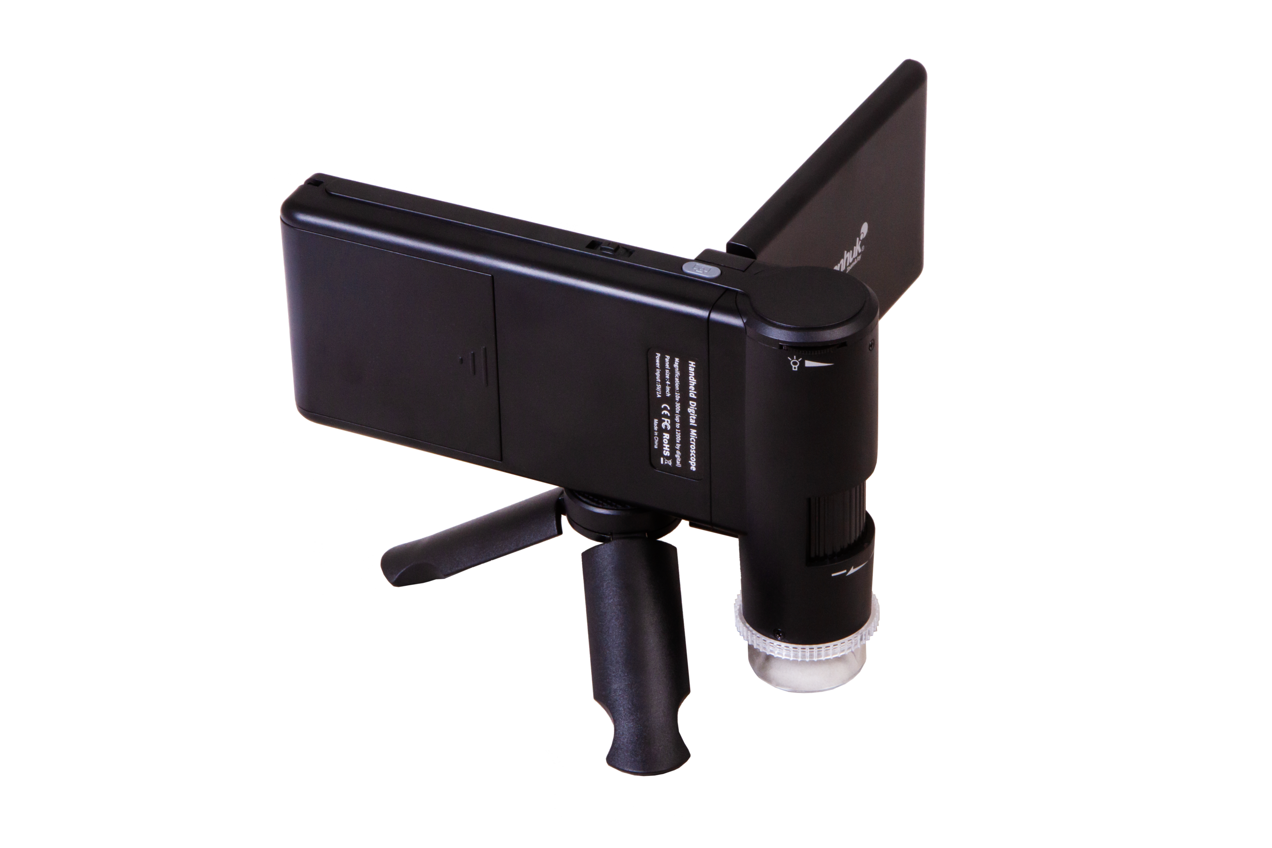 Mikroskop yalnızca saydam olmayan numunelerle çalışılmasına olanak tanır; ışık kaynağı olarak bir parlaklığı ayarlanabilir LED aydınlatma kullanılır. Parlak cisimlerin gözlemlenmesi sırasında parlama ve parazitik yansımaları azaltmayı sağlayan bir polarize edici filtre mevcuttur. Büyütme oranı, 10x ile 300x arasında sorunsuzca değiştirilebilir ve dijital yakınlaştırma 1200x'e kadar büyütme oranlarında gözlem yapabilmenizi sağlar. Mikroskop bir pil (2,5 saate kadar sürekli çalışma olanağı sunar) veya AC güç kaynağı ile çalışır.