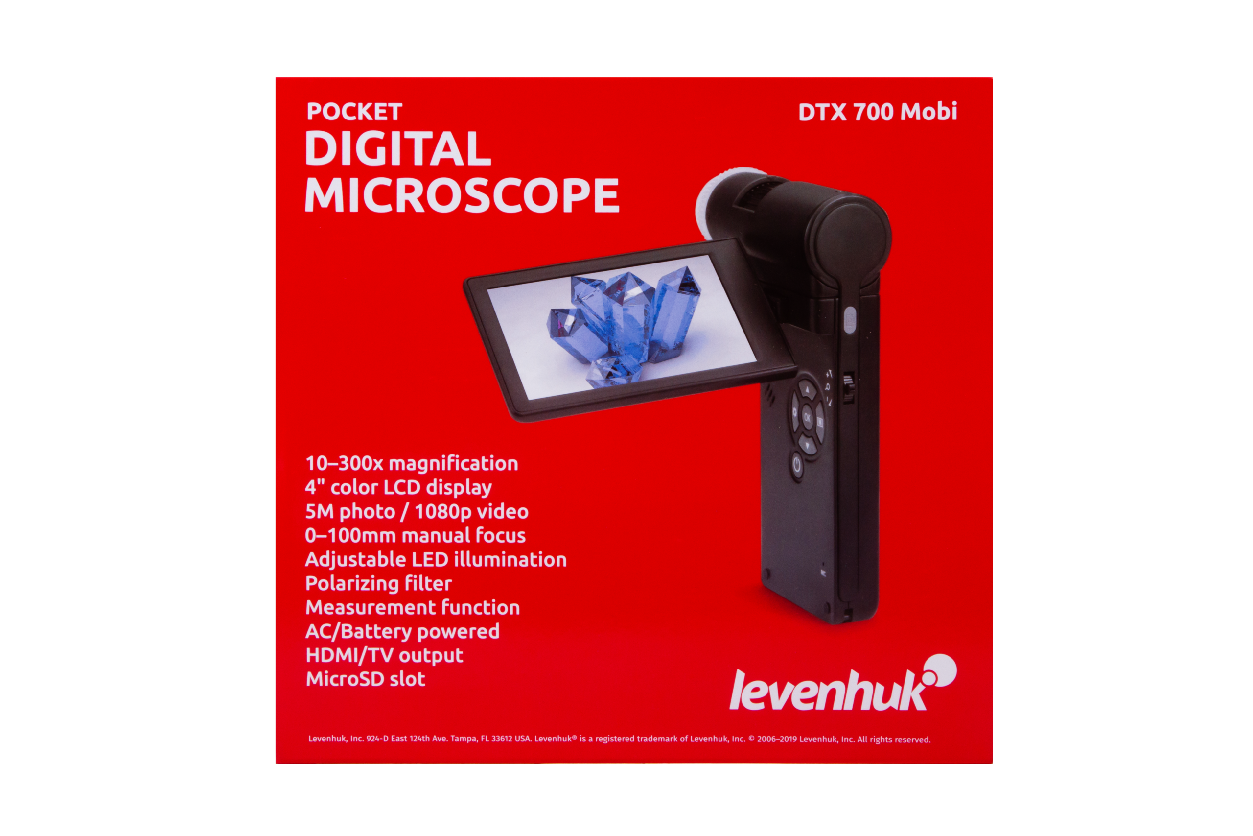 5 MP sensörlü bir kamera ile görüntü oluşturulur. Dahili bir LCD ekrana yüksek çözünürlüklü renkli görüntüler iletir. Açılır ekran kolaylıkla iş için en kullanışlı konuma ayarlanabilir. Mikroskop, aynı zamanda fotoğraf ve video çekebilir (ayrıca satın alınması gereken bir bellek kartı gereklidir). Bu, gövde üzerindeki bir düğmeyle gerçekleştirilir. Gerekli olması halinde, Levenhuk DTX 700 Mobi bir harici cihaza bağlanabilir: monitör, televizyon veya bilgisayar. Tüm gerekli kablolar halihazırda kite dahildir.