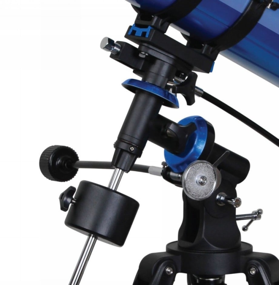 - Gece gökyüzünde hareket ederken gök cisimlerini izlemeyi kolaylaştıran yavaş hareket kontrolleri ile daha büyük, sabit ekvatoral kundağa sahiptir.