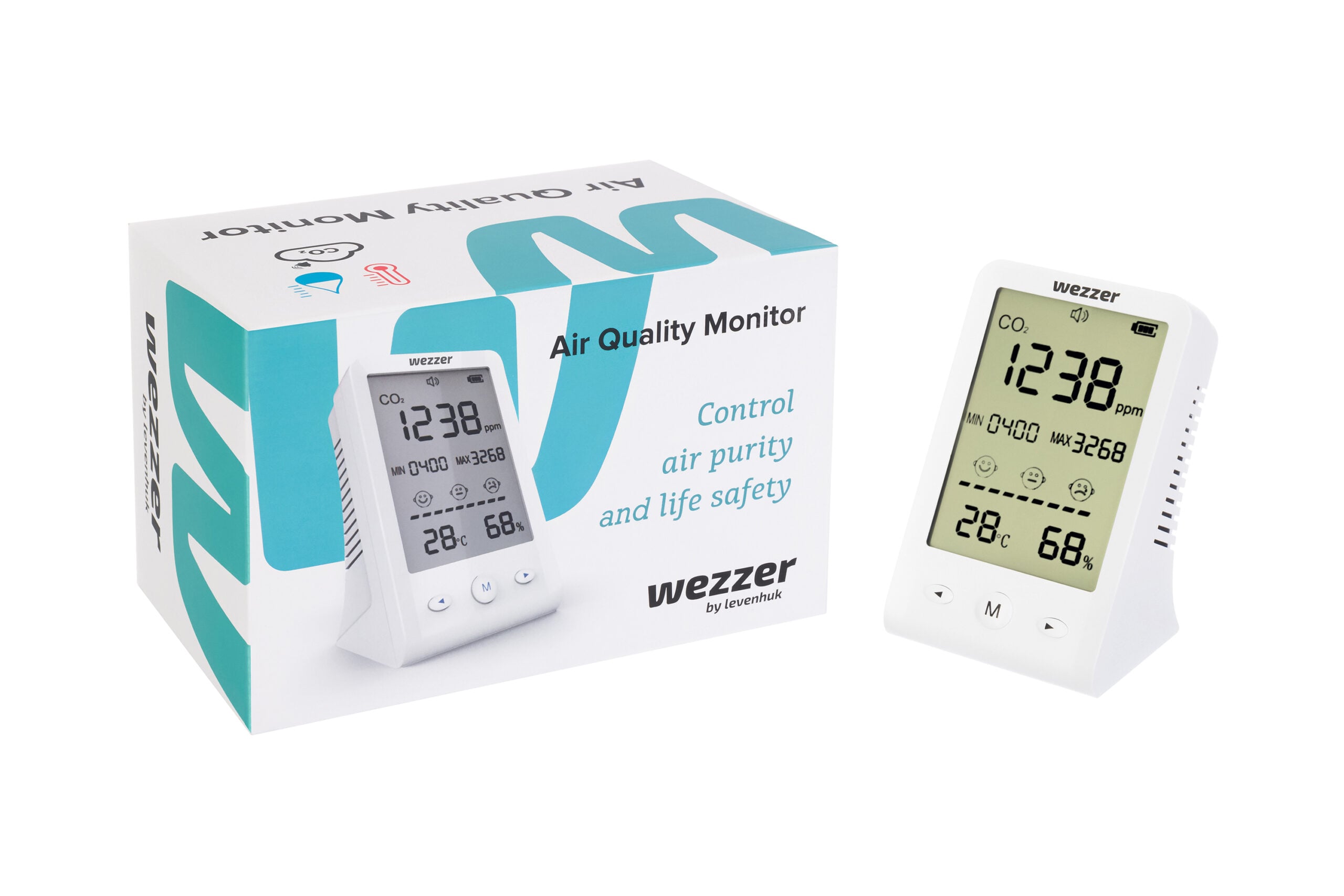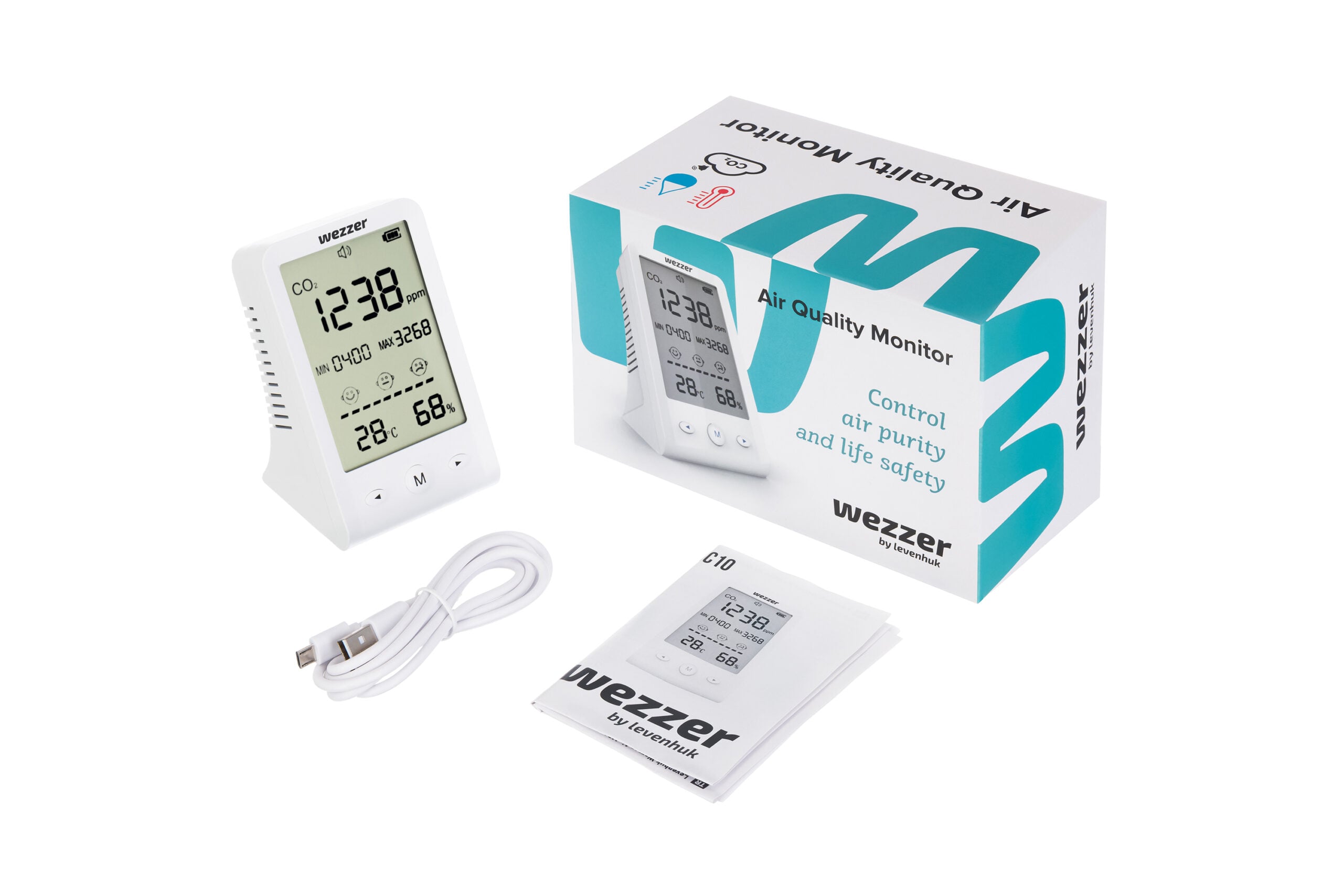 Levenhuk Wezzer Air MC10 Hava Kalitesi Monitörü, kapalı ortamlarda hava kalitesini takip etmek isteyen kullanıcılar için tasarlanmıştır. Özellikle sık havalandırılmayan odalarda artabilen karbondioksit (CO₂) seviyelerini izleyerek ortamın konfor ve sağlık açısından değerlendirilmesini sağlar.