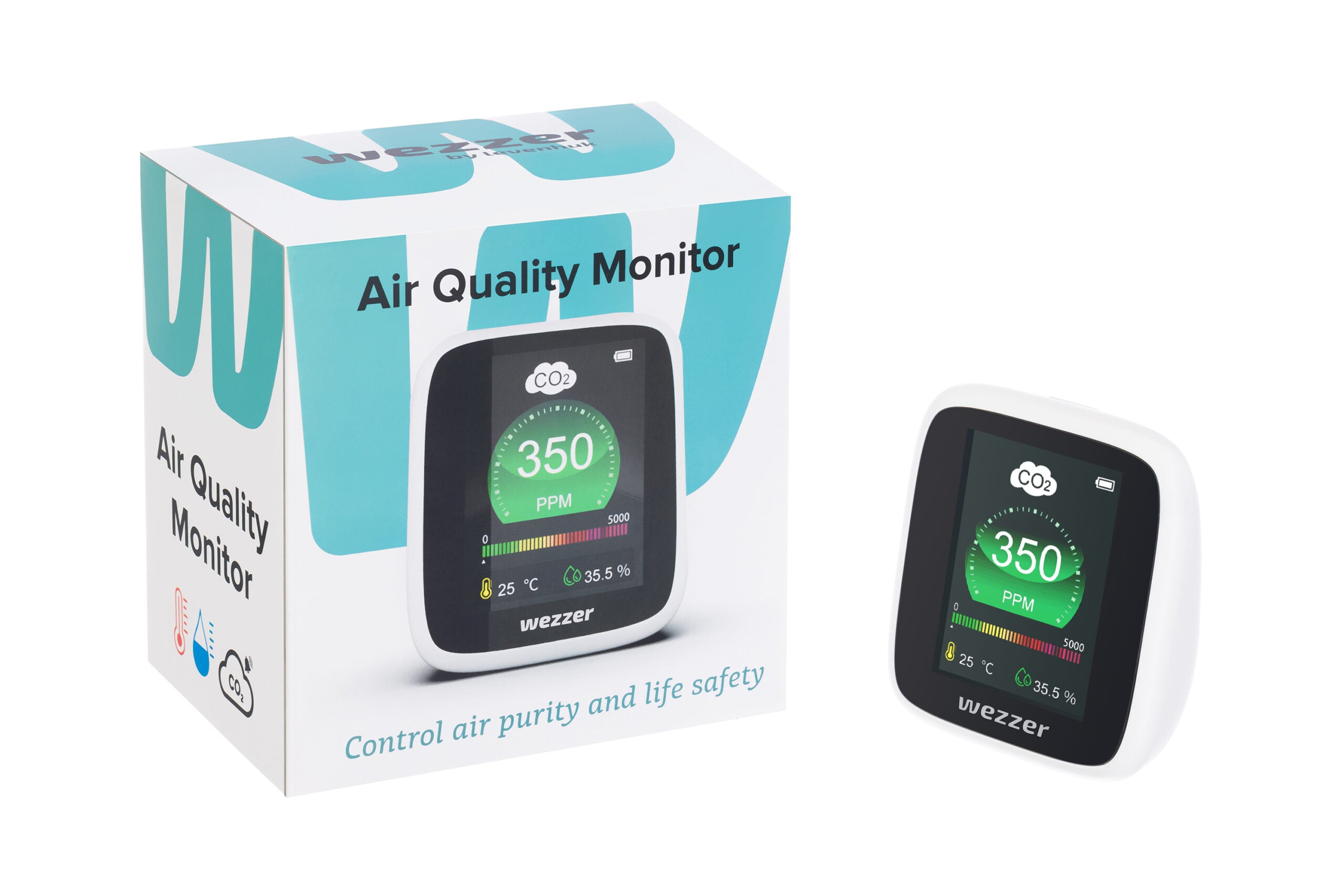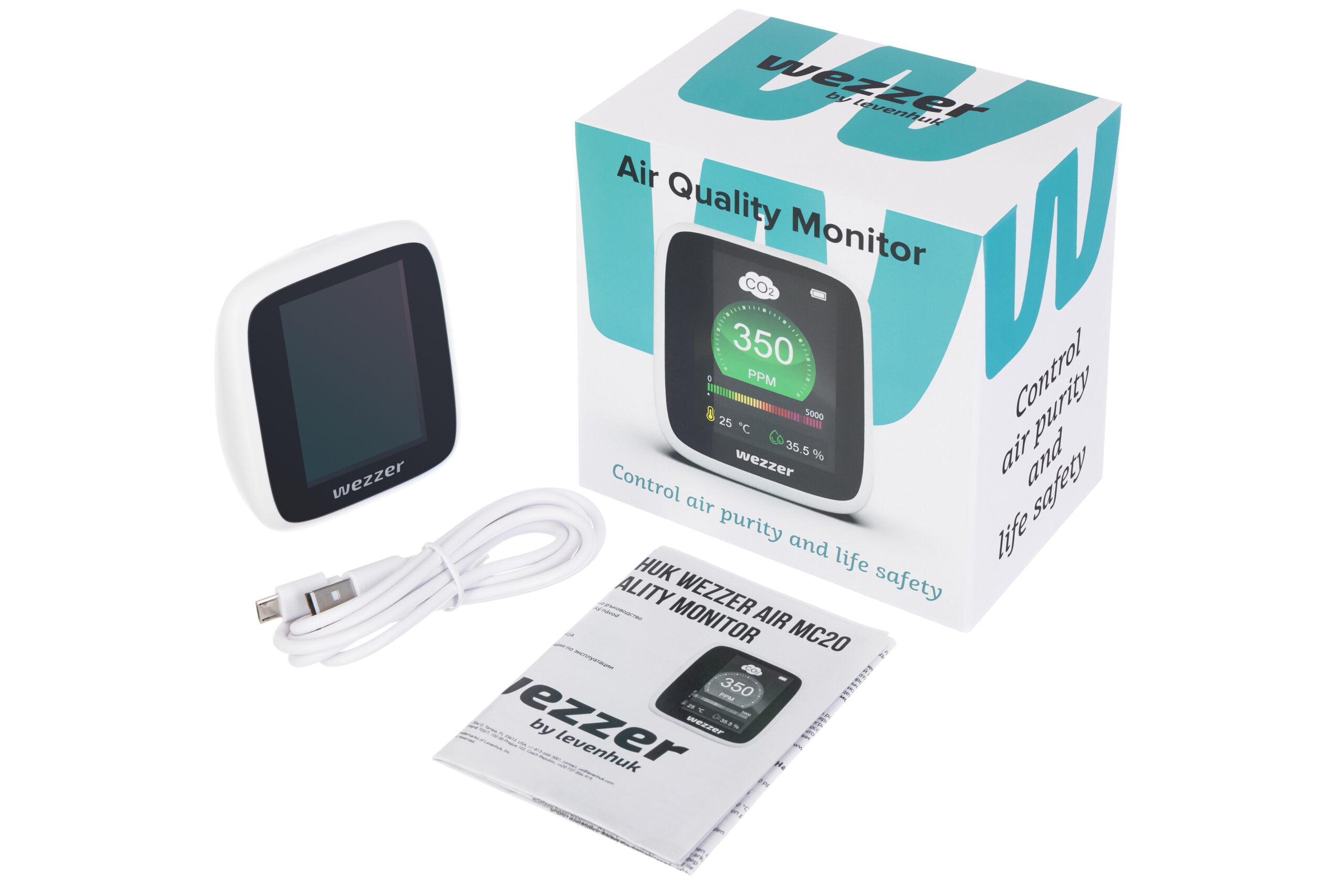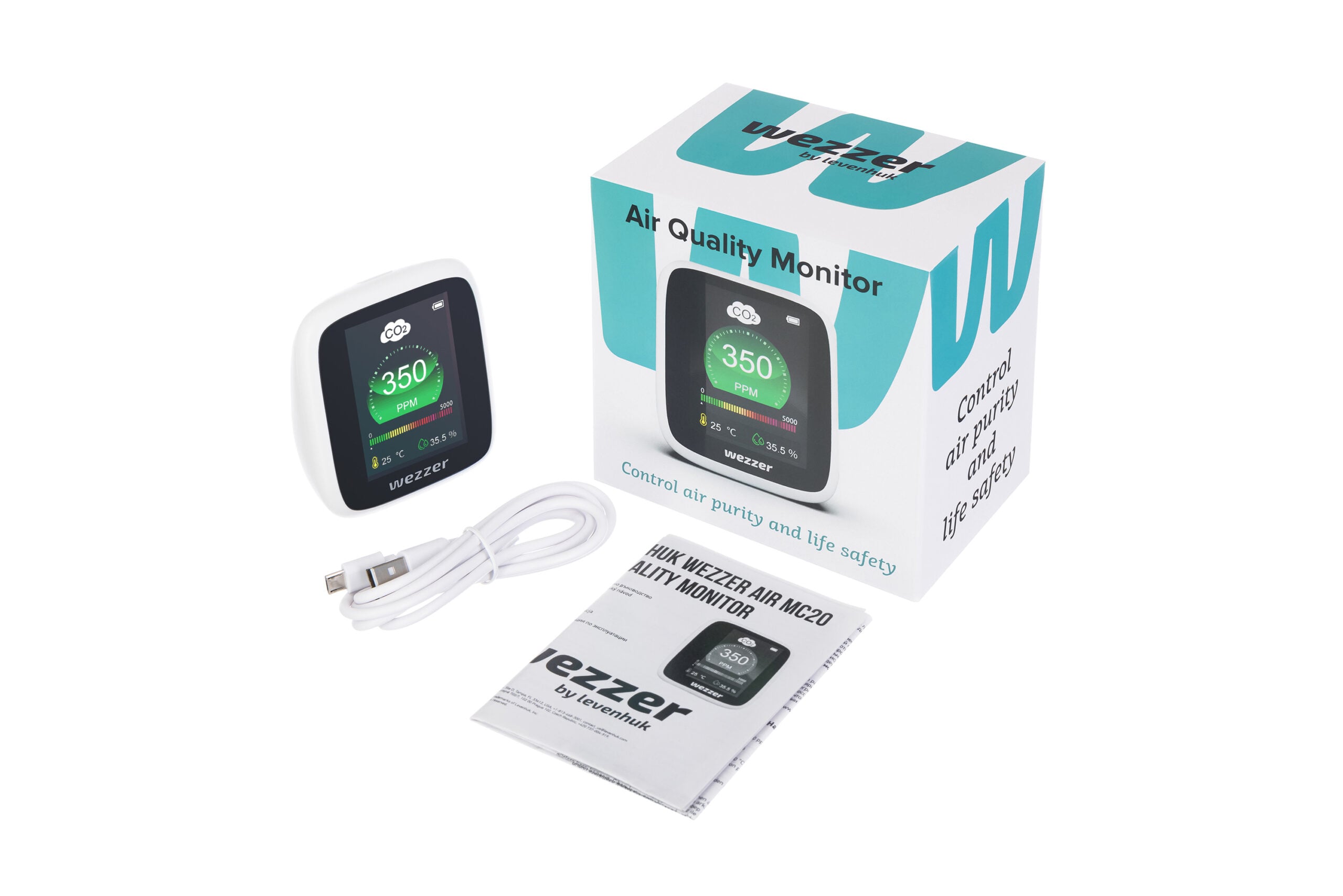 Levenhuk Wezzer Air MC20, iç mekân hava kalitesini izlemek için tasarlanmış masa üstü bir monitördür. Karbondioksit (CO₂) seviyesini, ortam sıcaklığını ve nemi ölçerek kapalı alanlardaki mikroiklimin kontrol edilmesine yardımcı olur. LCD ekrandaki renkli gösterge, CO₂ yoğunluğunu anlık olarak görselleştirir ve sınır değerler aşıldığında ortamın havalandırılması gerektiğini uyarı ile bildirir. Büyük rakamlar ve aydınlatmalı ekran, ölçümlerin kolayca okunmasını sağlar.