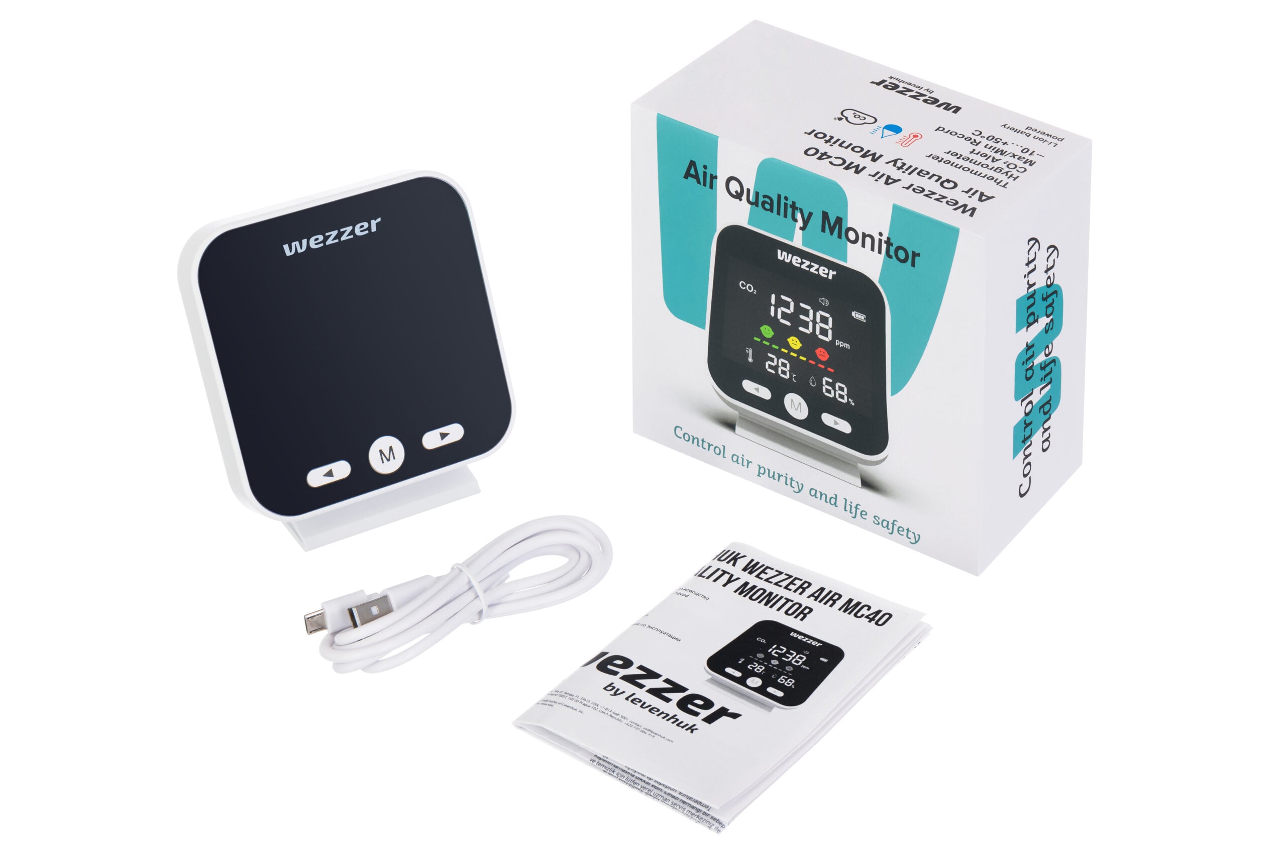 Levenhuk Wezzer Air MC40, iç mekân hava kalitesini izlemek isteyen kullanıcılar için tasarlanmış bir masa üstü monitördür. Cihaz, ortamdaki karbondioksit (CO₂) konsantrasyonunu algılar ve belirlenen konfor sınırları aşıldığında uyarı verir. CO₂ seviyesi yükseldiğinde hava ferah hissedilse bile oksijen miktarı düşebilir; bu durum uzun süreli maruziyette baş ağrısı, baş dönmesi ve yorgunlukla ilişkilidir. MC40, bu tür durumların erken fark edilmesini sağlar.