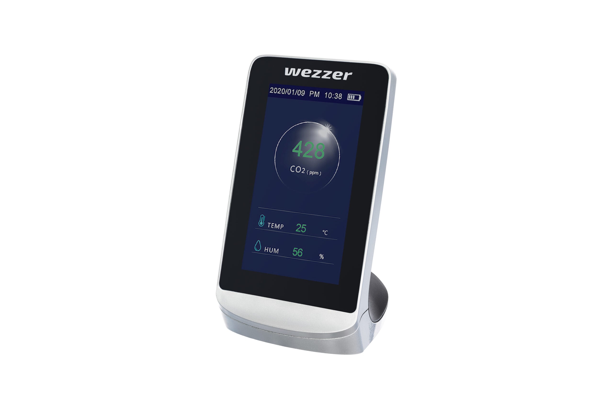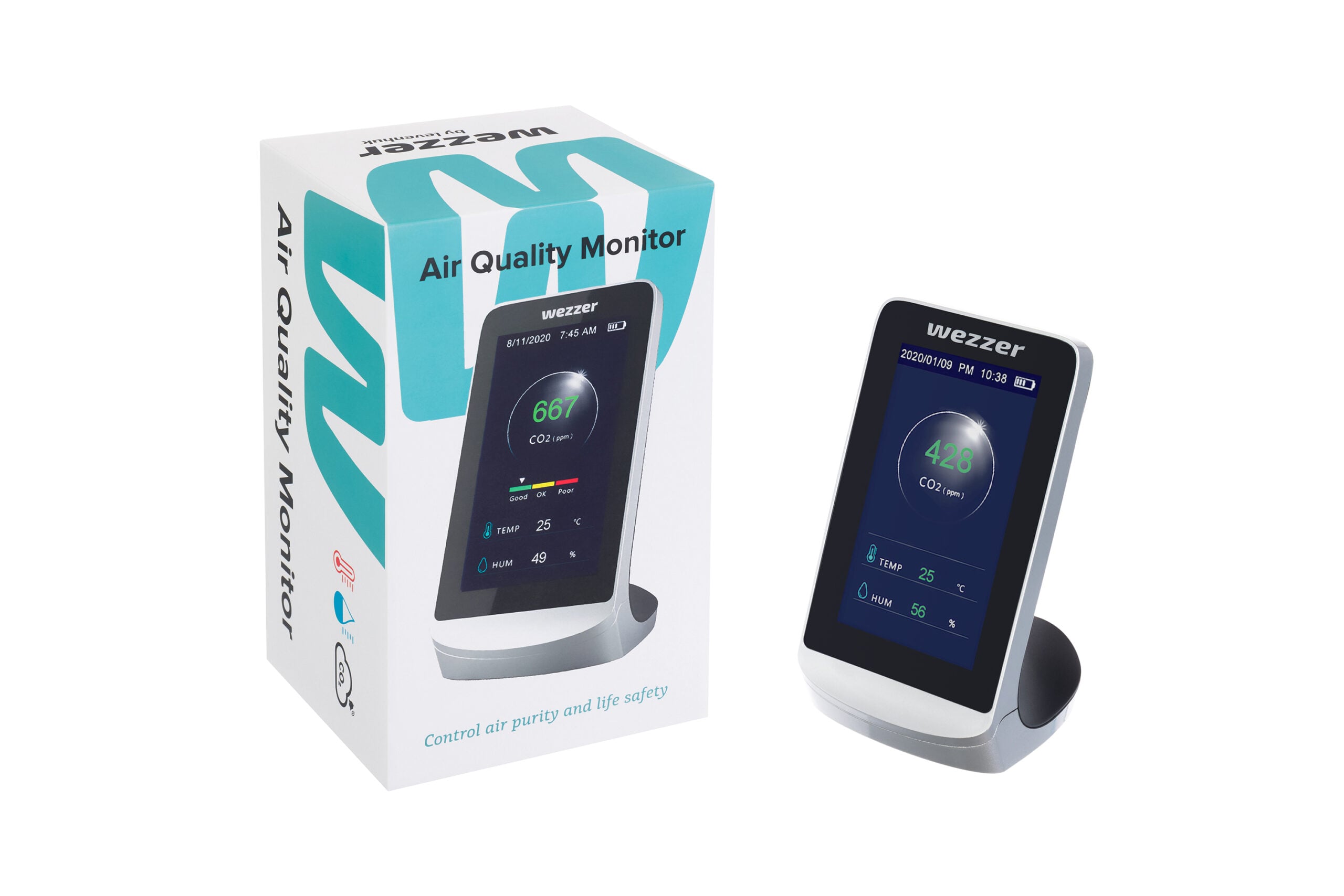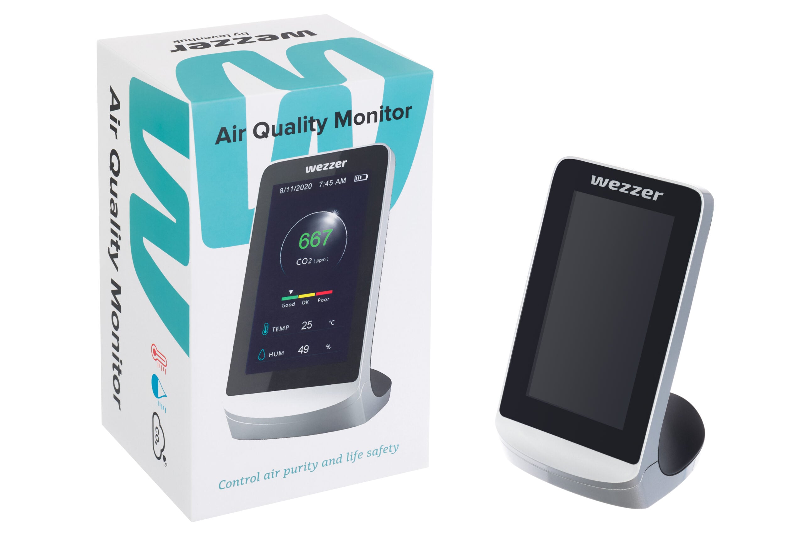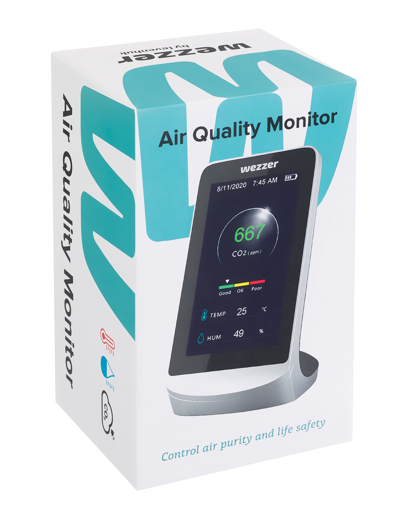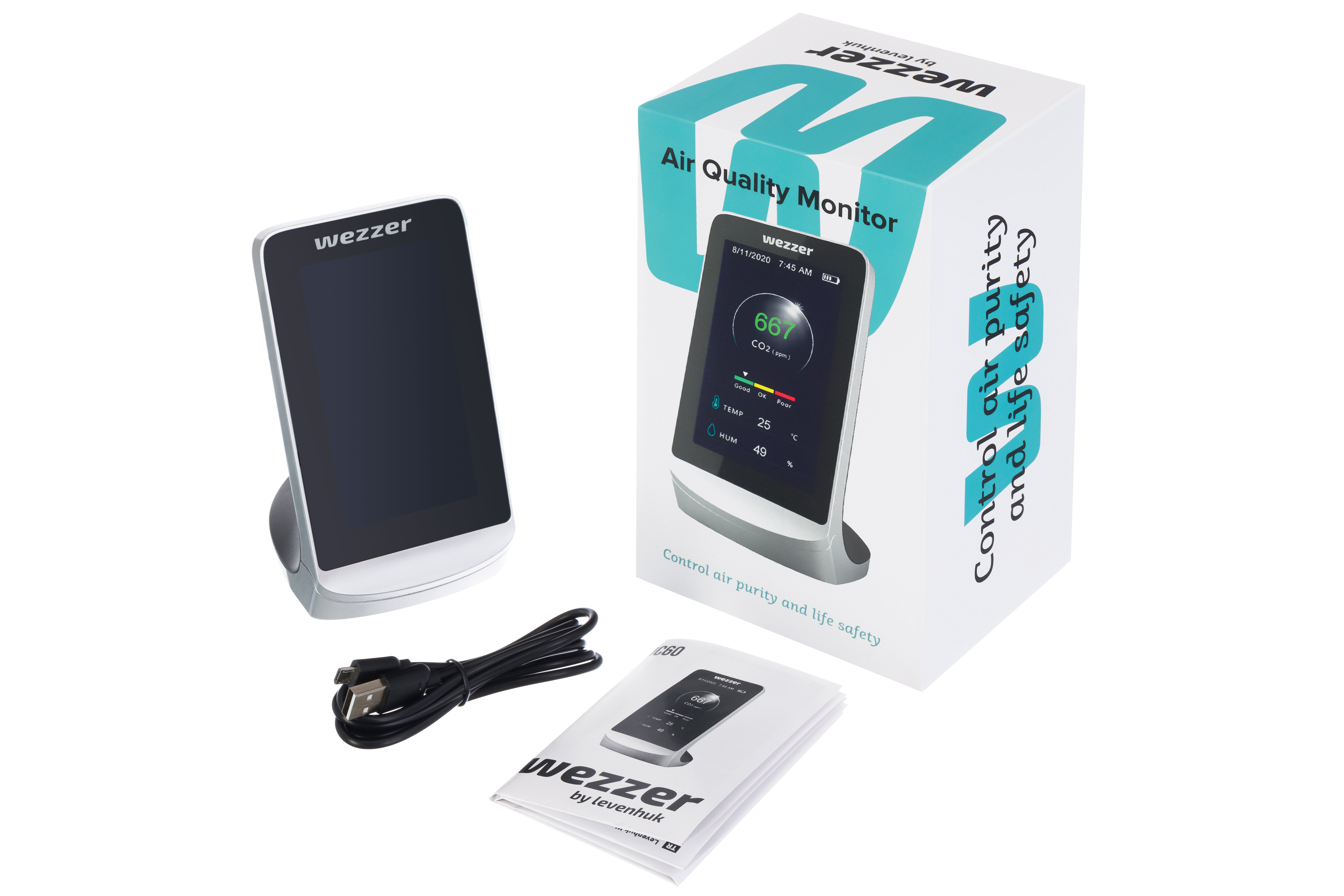 Levenhuk Wezzer Air MC60, iç mekân hava kalitesini izlemek için tasarlanmış kompakt bir masa üstü cihazdır. Cihaz, ortamın karbondioksit (CO₂) seviyesini, sıcaklığını ve nemini ölçer ve sonuçları renk kodlu bir konfor ölçeği ile geniş LCD ekranda gösterir. Bu sayede, odanın havalandırılmasına gerek olup olmadığını tek bakışta anlayabilirsiniz. CO₂ seviyeleri sınır değerleri aştığında cihaz uyarı verir; bu uyarı gerektiğinde devre dışı bırakılabilir.