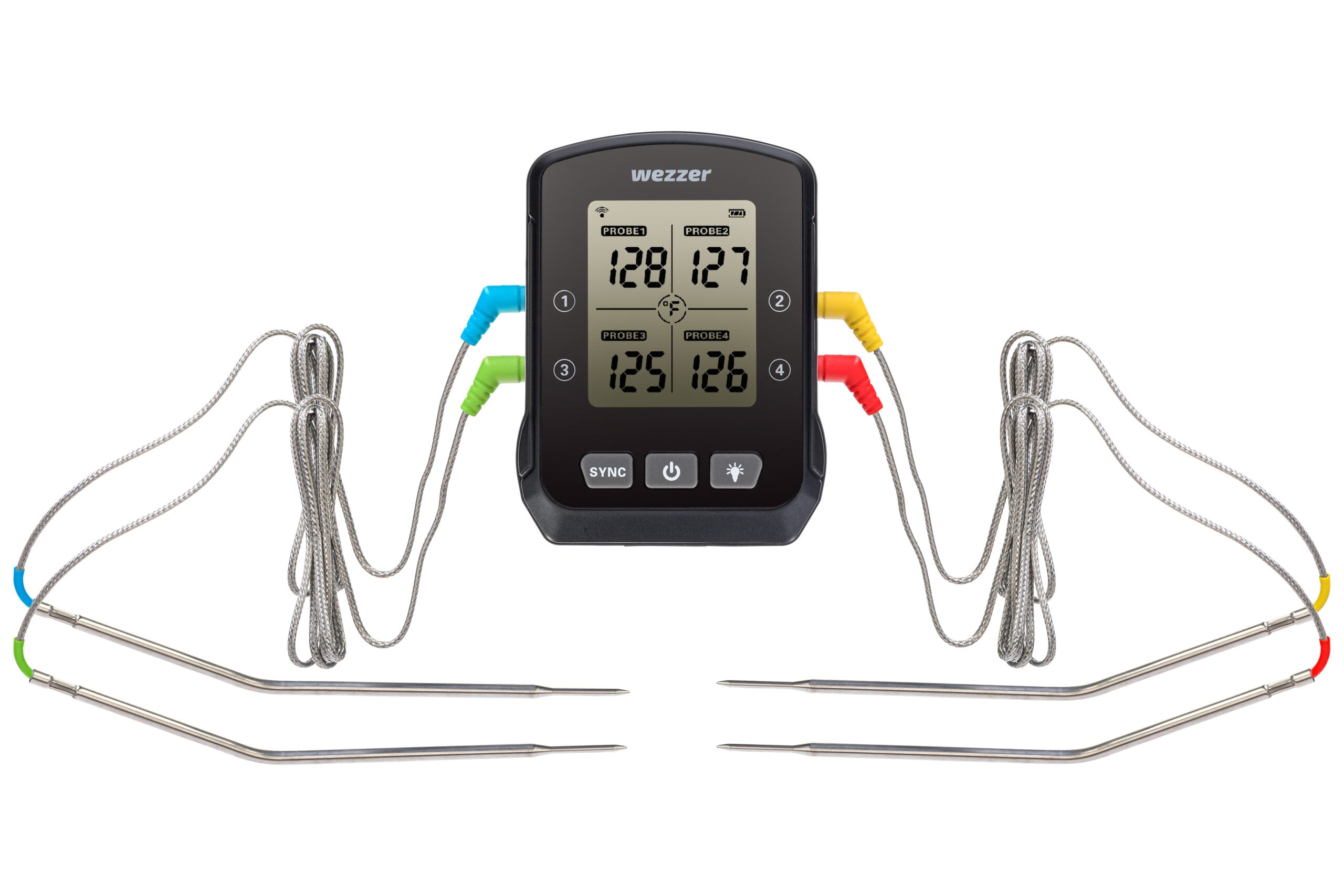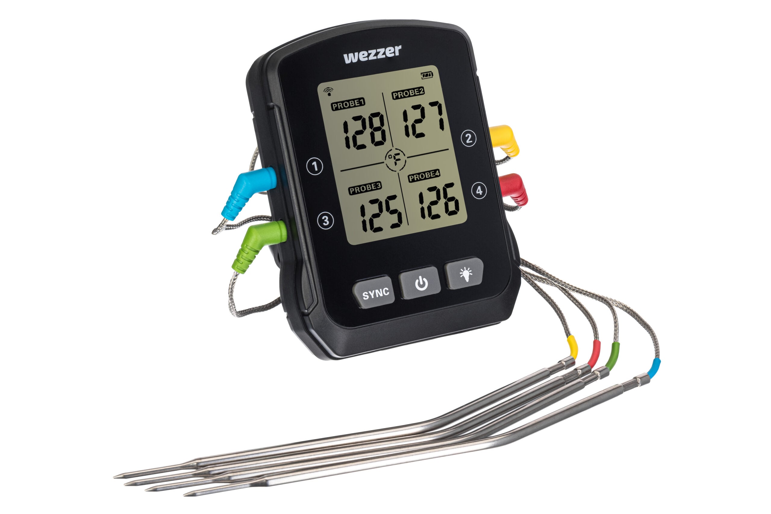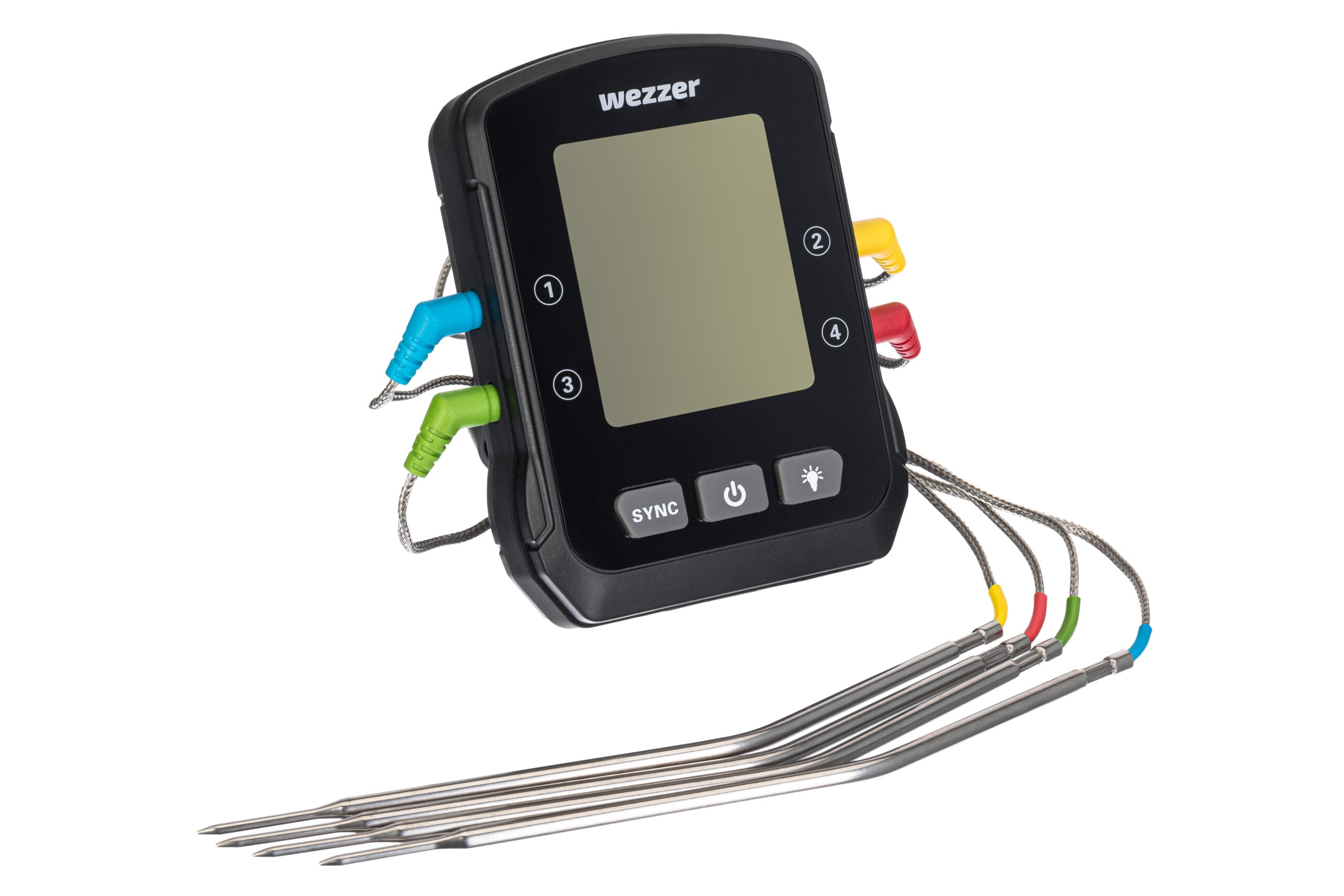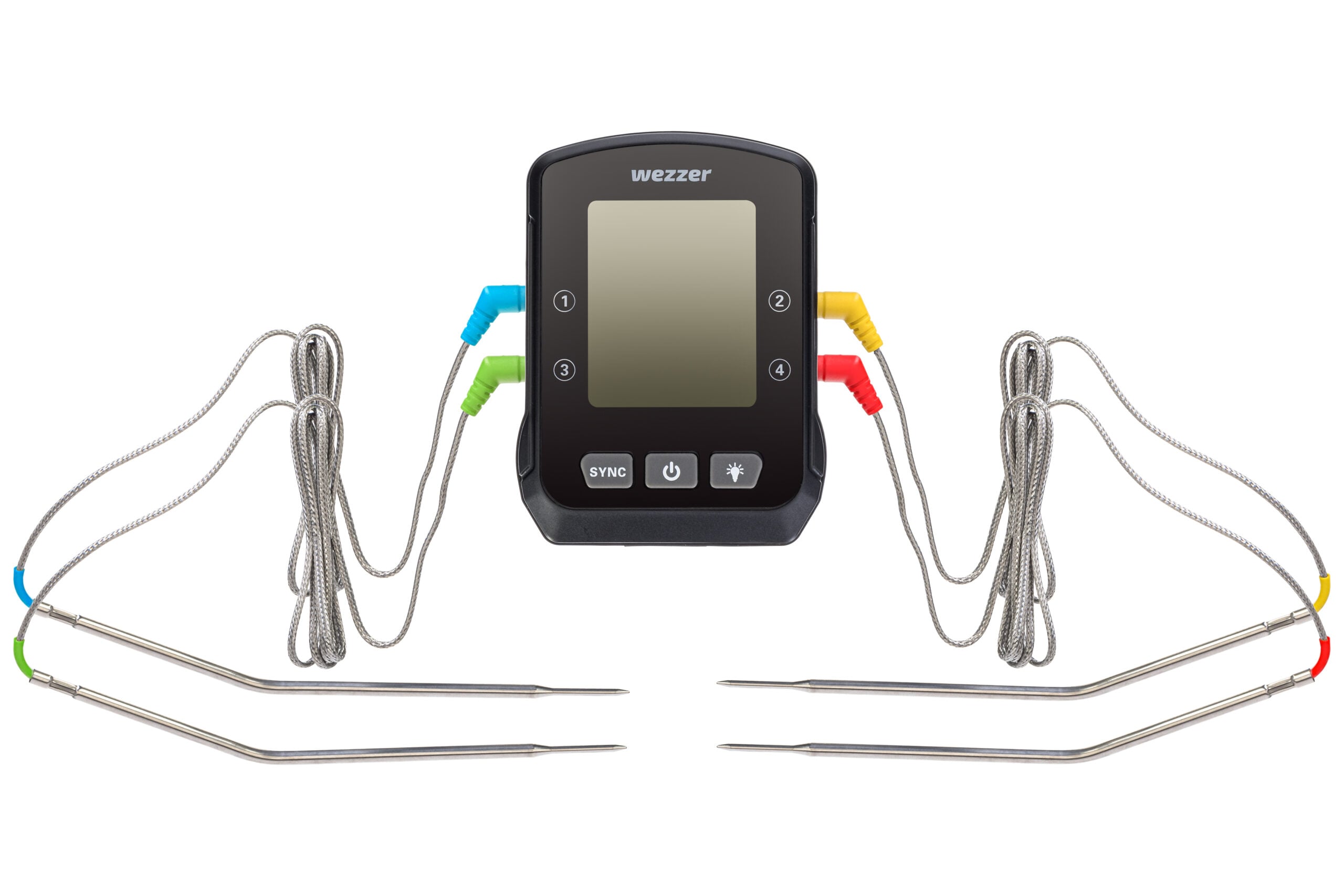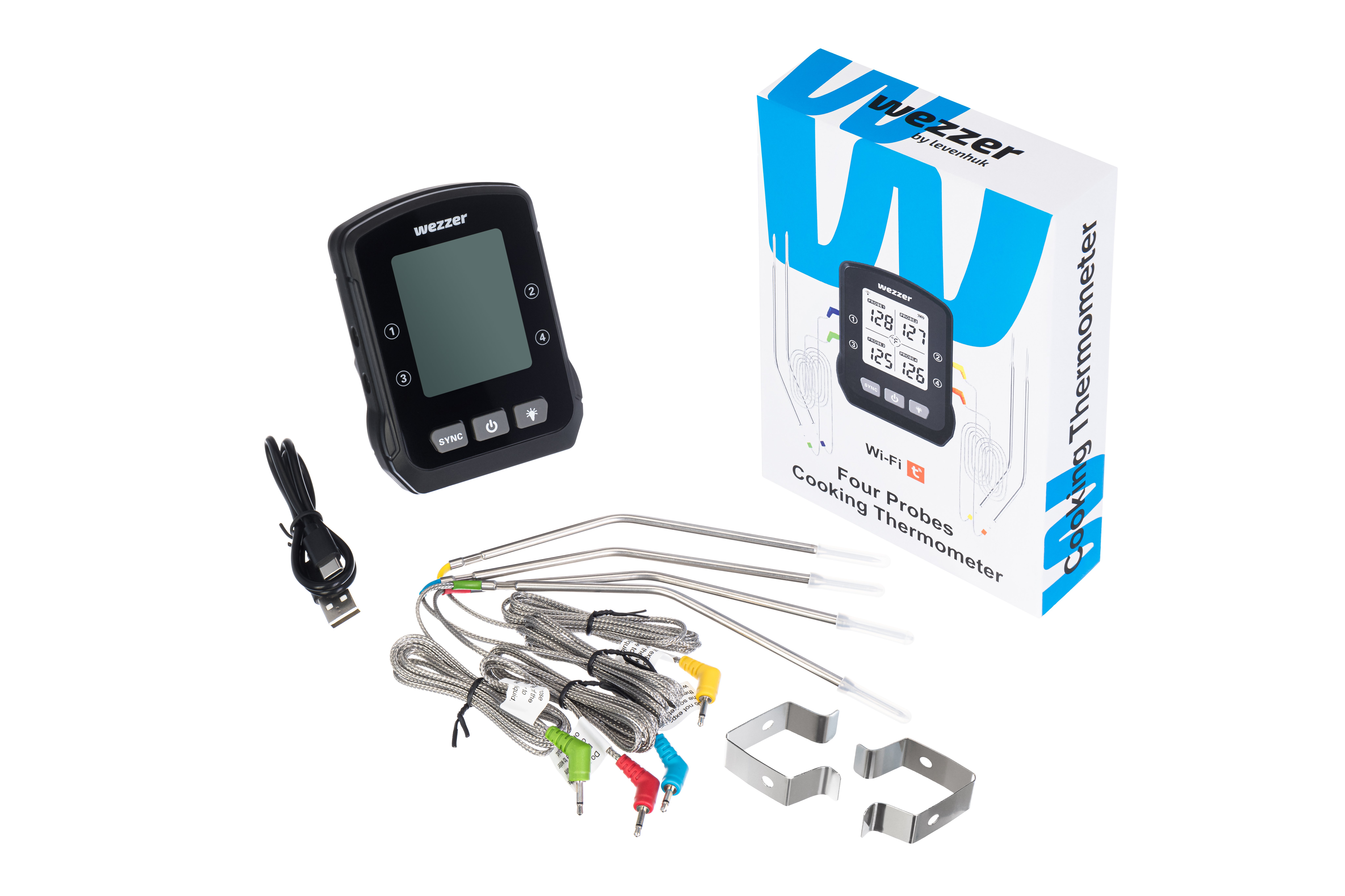 Levenhuk Wezzer Cook MT90, dört termoproblu bir gelişmiş pişirme termometresi modelidir. Her bir termoprob, 1 m uzunluğunda esnek bir tel kabloya bağlanır. Cihaz, aynı anda pişirilen birkaç yemeğin sıcaklığını ölçebilir ve yemeğin nerede olduğu önemli değildir: fırında, ocakta veya ızgarada olabilir. Veriler, yerleşik ekranda görüntülenir: Rakamlar büyük ve kontrastlıdır ve yerleşik bir arka ışık vardır.