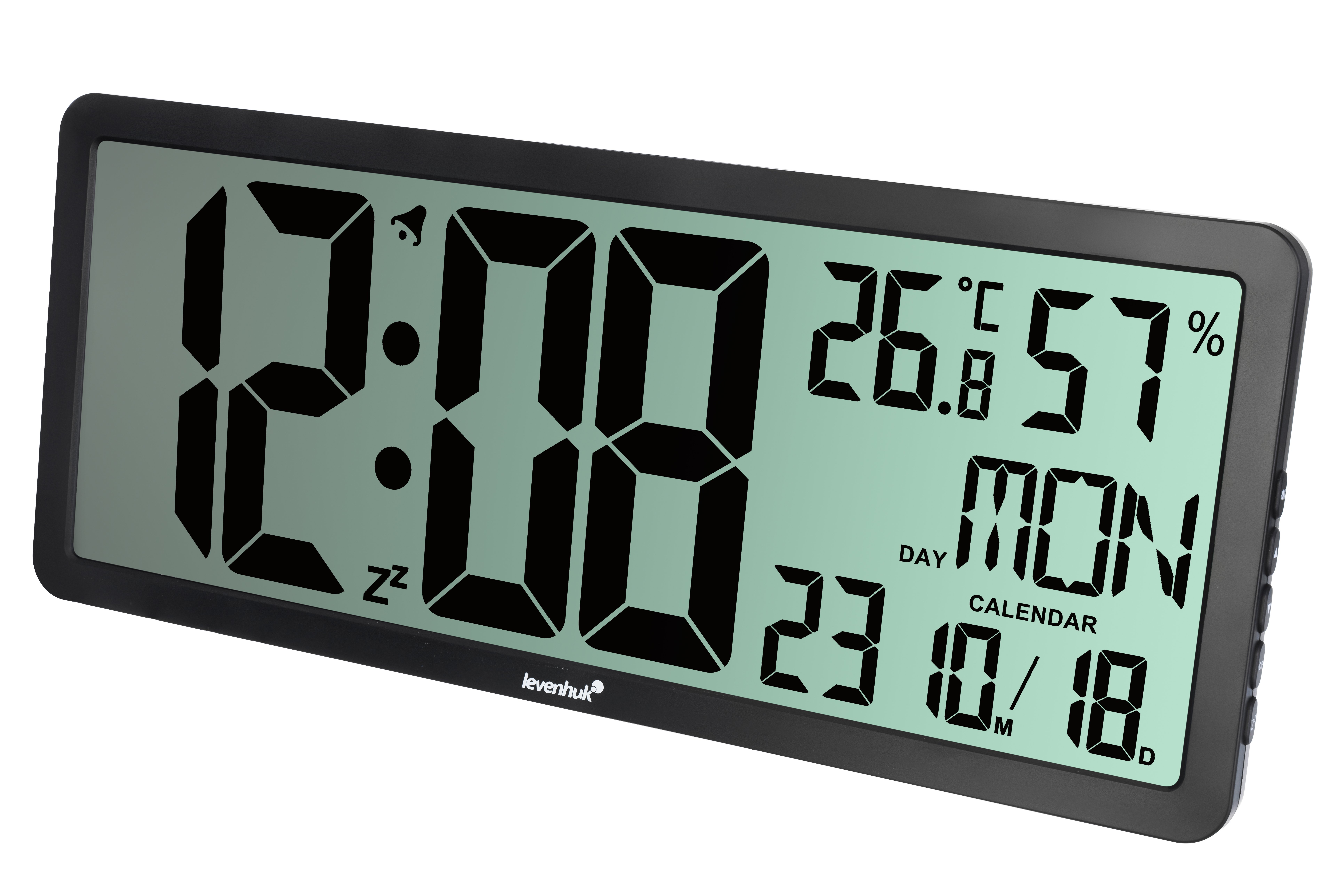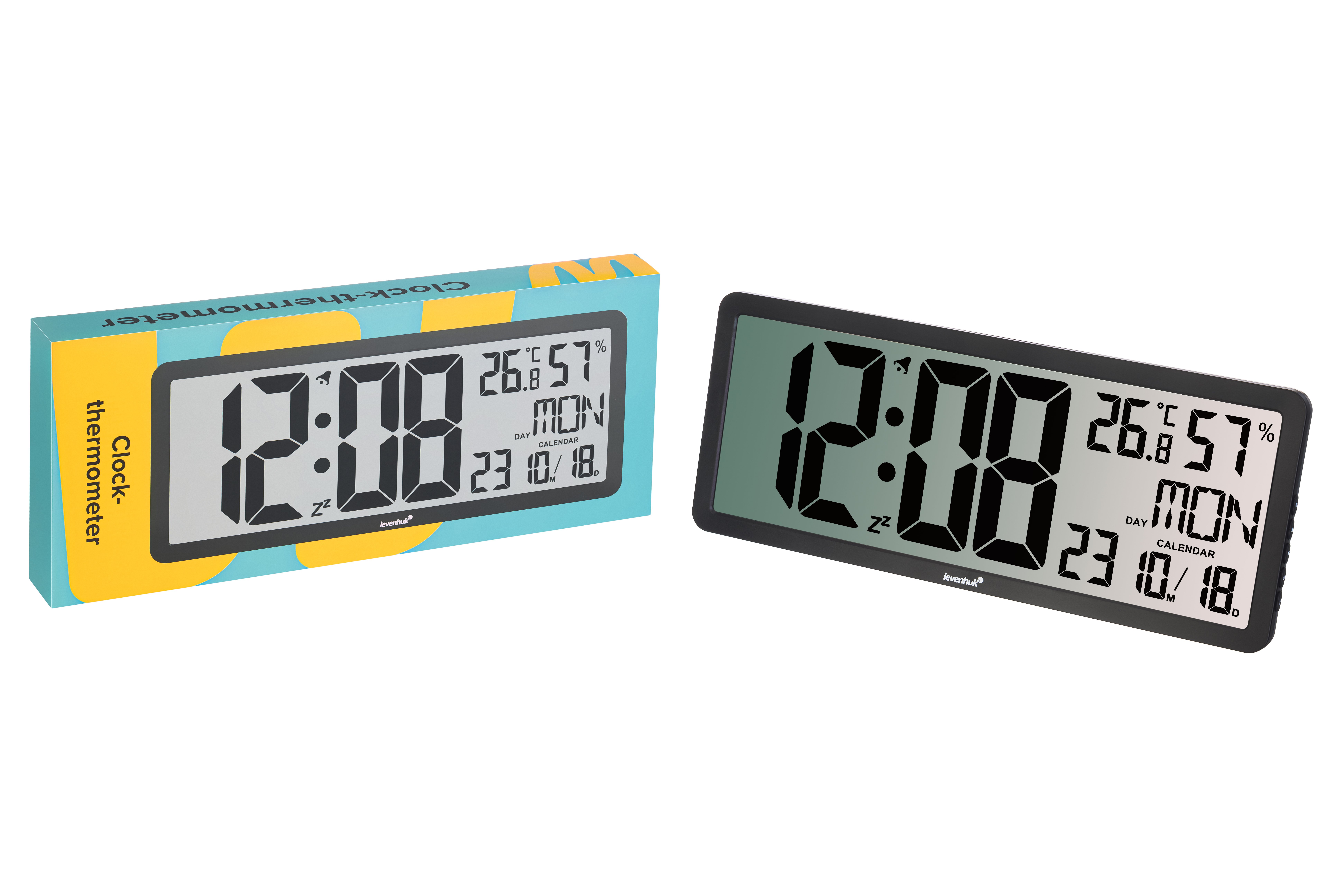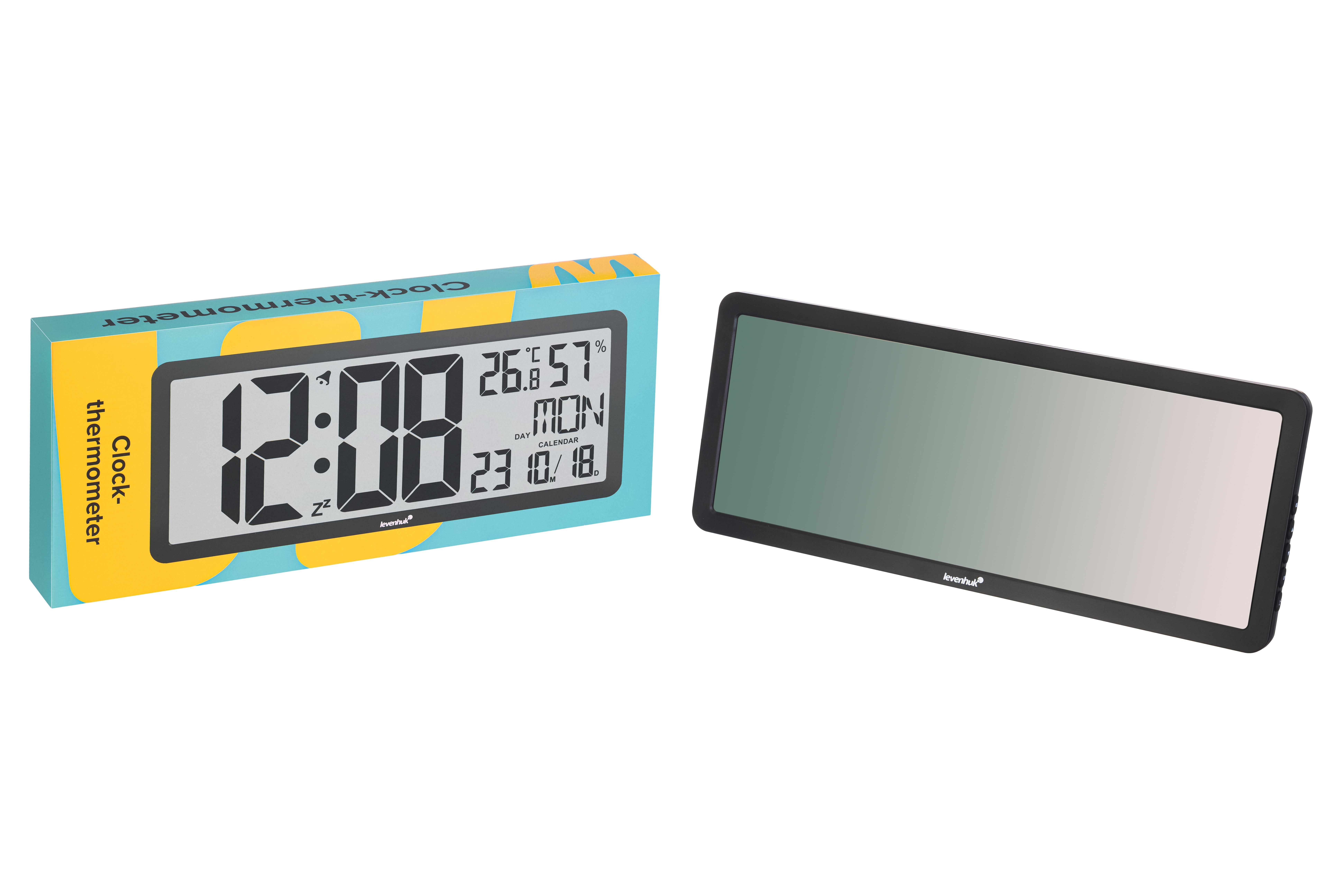 Levenhuk Wezzer Tick H80 Saat-termometre, ayrıntılarda sadeliği ve minimalizmi sevenlere yönelik bir cihazdır. Tasarım minimalisttir: Ön panelde dikkat dağıtıcı unsurlar yoktur, yalnızca çerçeveli büyük bir tek renkli ekran vardır. Bilgiler görsel grafik bloklarına bölünmüştür, her şeyi anında kolayca okuyabilirsiniz. Cihaz, iç tasarımı bozan bir unsur olmayacaktır ve bu nedenle hem ofis hem de ev için idealdir. Bu modelin bir diğer avantajı, neredeyse tüm ekranı kaplayan saat ekranı için büyük rakamlardır. Boyutları sayesinde uzak mesafeden rahatlıkla görülebilirler. Ekstra bilgiler daha küçük bir yazı tipinde görüntülenir. Ekranın yüksek kontrastı sayesinde verileri okumak da sorun değildir. Sıcaklık ve nemi, haftanın gününü ve tarihi gösterir. Ayrıca ekranda iki simge görünebilir: alarmlı saat ve erteleme özelliği. Kontrol düğmeleri sağ panelde yer alır ve bakmadan bile kolayca ulaşılabilir. Cihaz pillerle çalışır ve bir sehpaya veya rafa monte edilebilir ya da duvara asılabilir; cihazın arka panelinde duvara montaj delikleri vardır. Önemli özellikler: