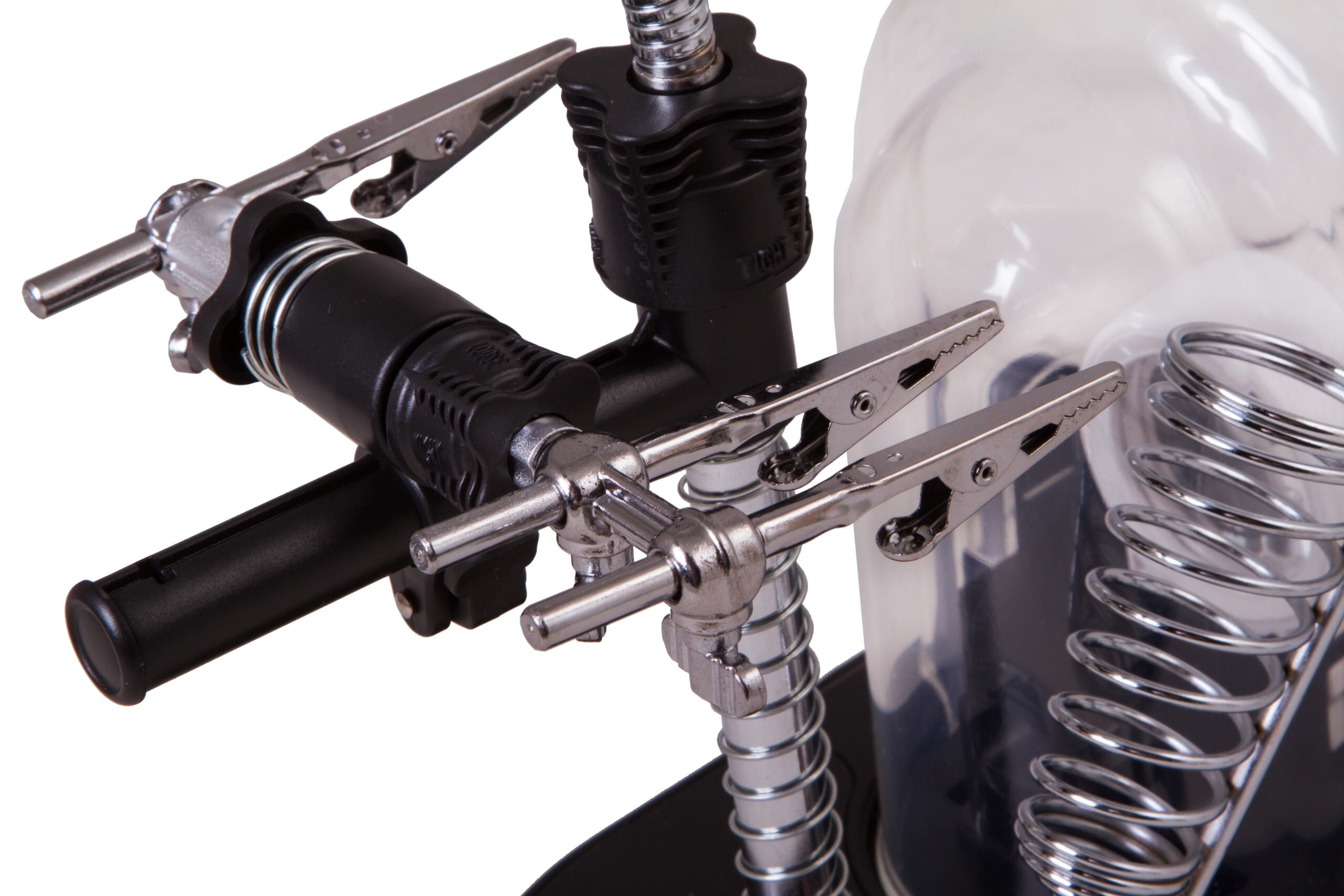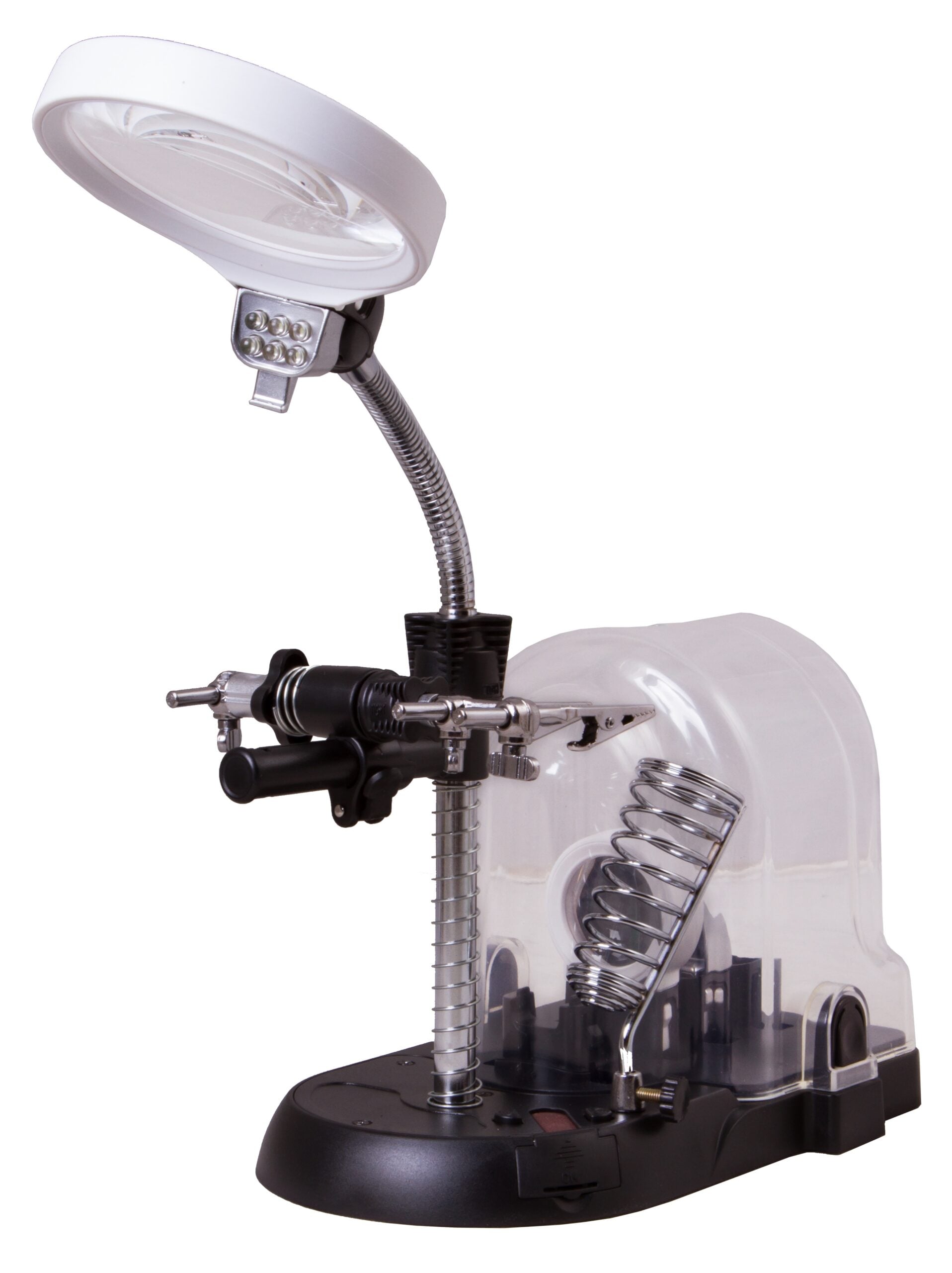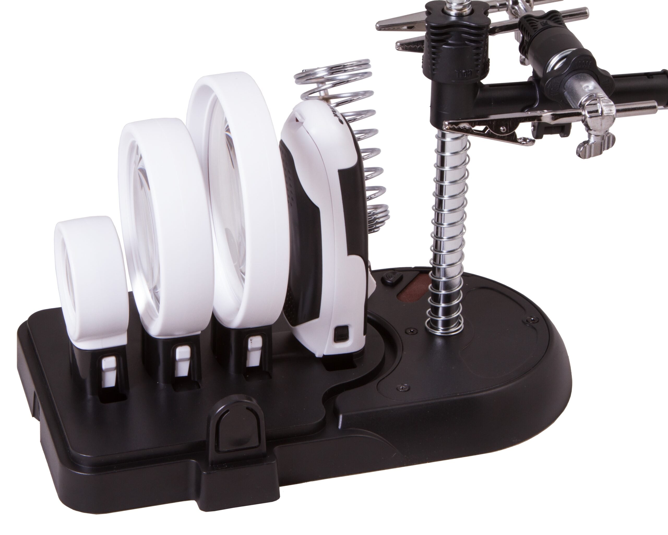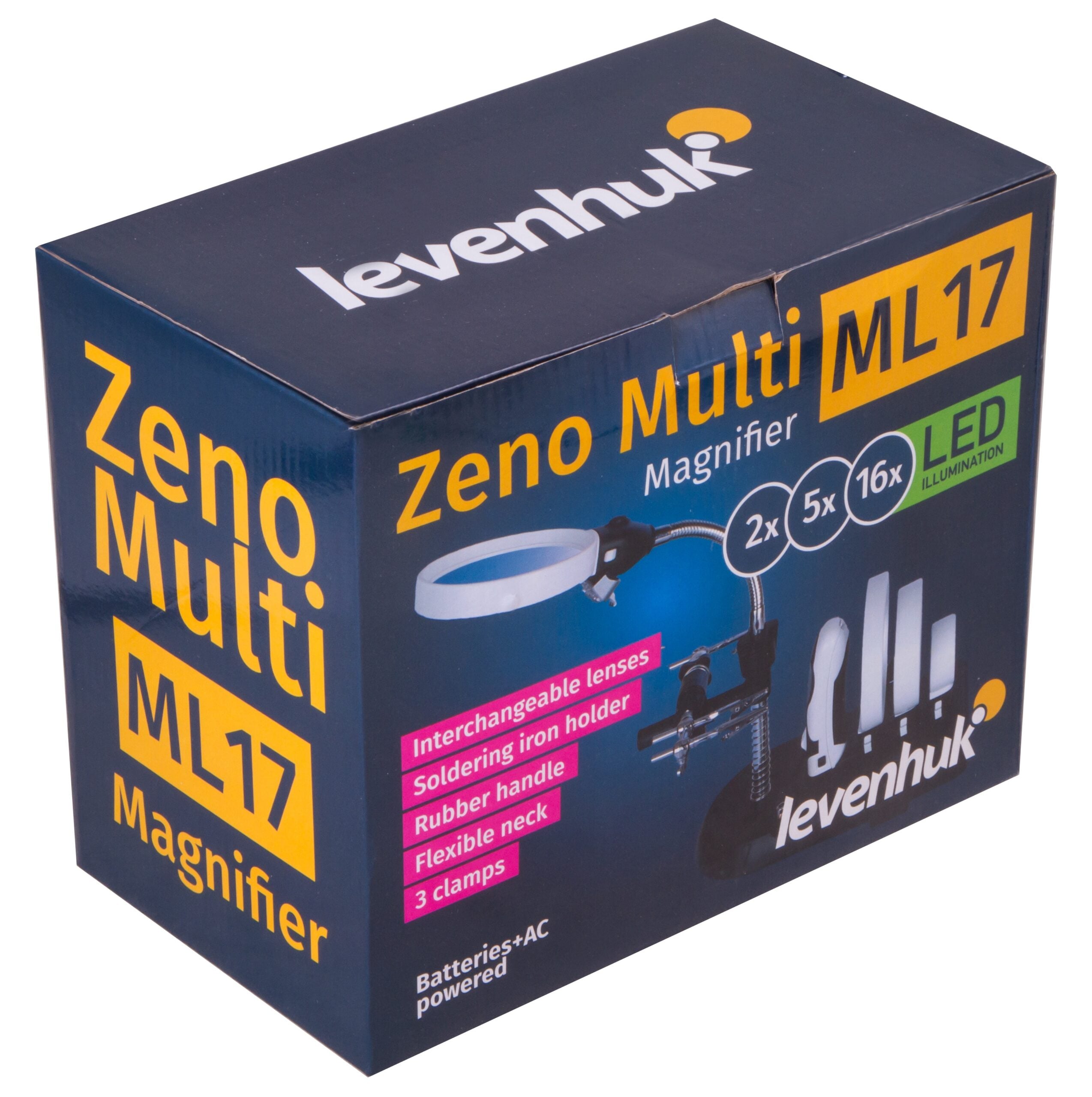 Büyüteç tabanı, değiştirilebilir merceklerin ve aydınlatma desteğinin takılabildiği esnek bir tutucuya sahiptir. Levenhuk Zeno Multi ML17, lehimleme ve benzeri hassas işler için üçüncü el tutucular ve lehimleme havyası tutucusu ile donatılmıştır. Bu yapı, çalışma sırasında hem büyüteci hem de aletleri sabitleyerek ellerinizi serbest bırakır.
