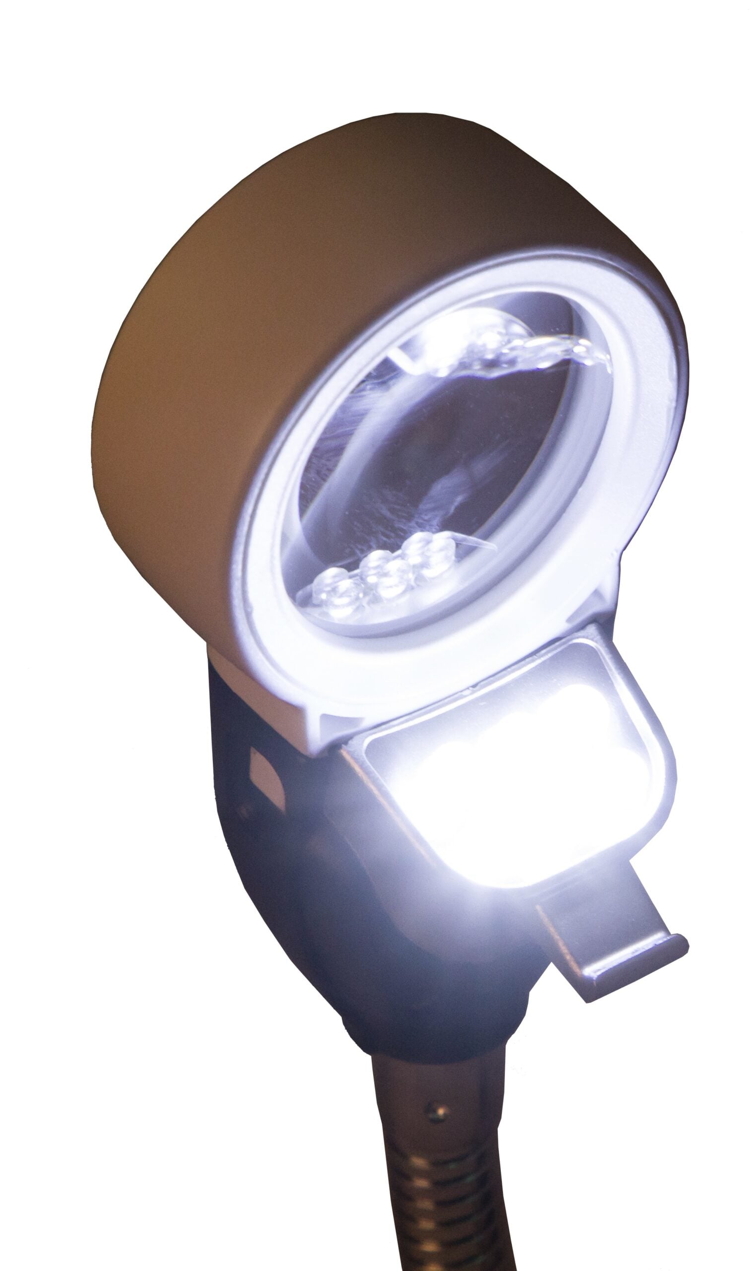 Sete dahil üç değiştirilebilir mercek, esnek tutucuya veya ergonomik elde tutma sapına takılabilir. Böylece ürün, masa üstü büyüteç veya elde tutulan büyüteç olarak kullanılabilir. Mercek tabana yerleştirildiğinde sistem, aydınlatmalı bir masa lambasına dönüşür.