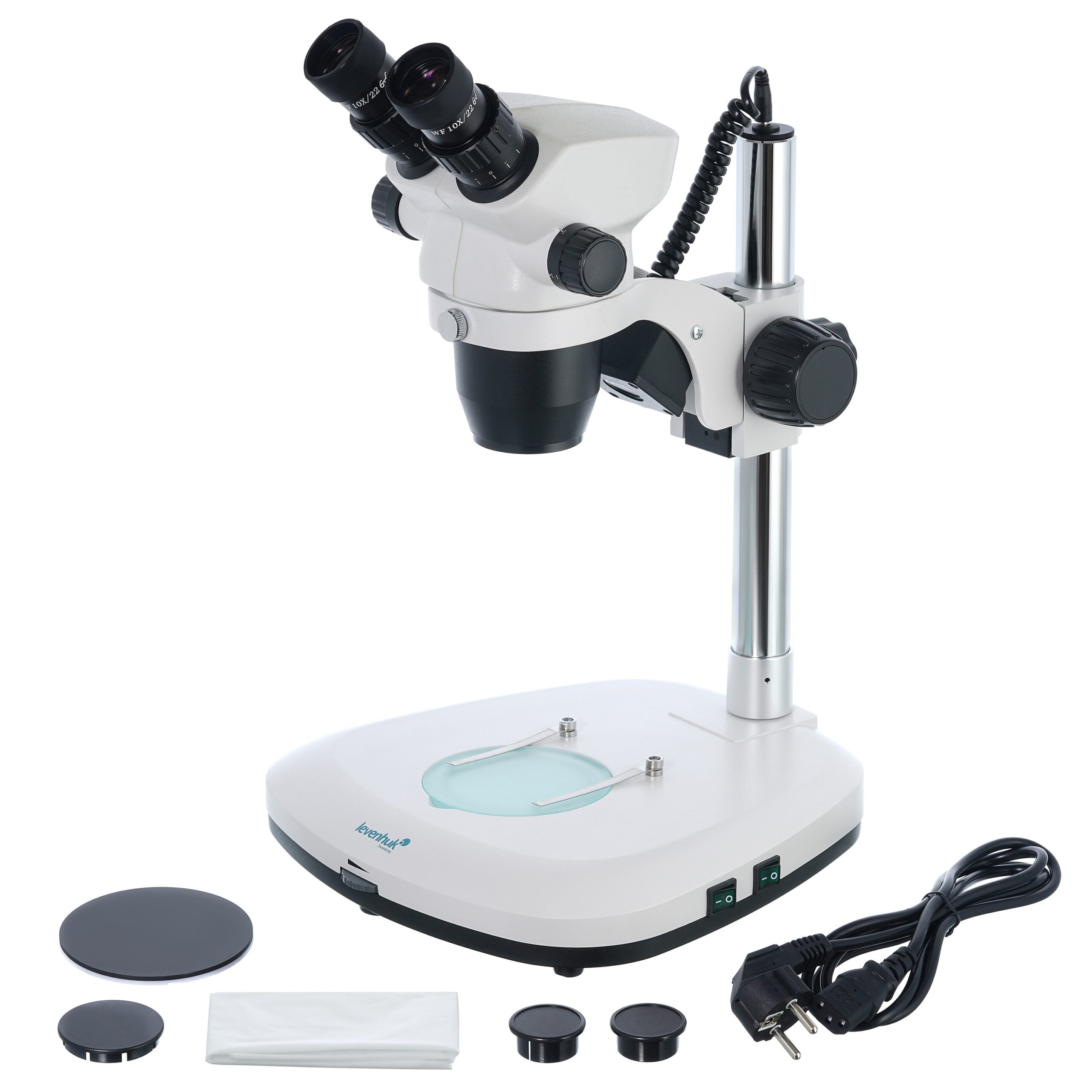Tasarım açısından, mikroskop bir taban, dikey bir sehpa ve bir optik başlıktan oluşur. Aynı anda her iki gözünüzle gözlem yapabilirsiniz; başlık hafif açılıdır ve 360° döndürülebilir. Kit, 10x büyütme oranlı, geniş alanlı iki göz merceği içerir. Optik düzen, bir yakınlaştırma objektifi ile desteklenmektedir; bu sayede mikroskopun büyütme oranını yalnızca kademeli olarak değil, aynı zamanda sorunsuz bir şekilde de değiştirebilirsiniz. Genel büyütme oranı 7 ile 45 kat aralığındadır. Kaba odaklama ayarı yapılabilir.
