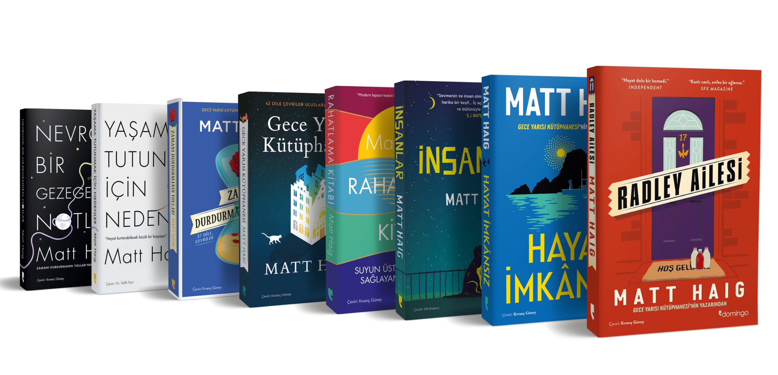 İngiliz edebiyatının önemli isimlerinden Matt Haig; Nora’nın pişmanlıklara, ihtimallere ve yeniden seçme imkânına dair çıktığı bu yolculukta, ona eşlik edecek okurlara sürükleyici ve insanın en temel sorunlarını konu alan bir kurgu sunuyor.