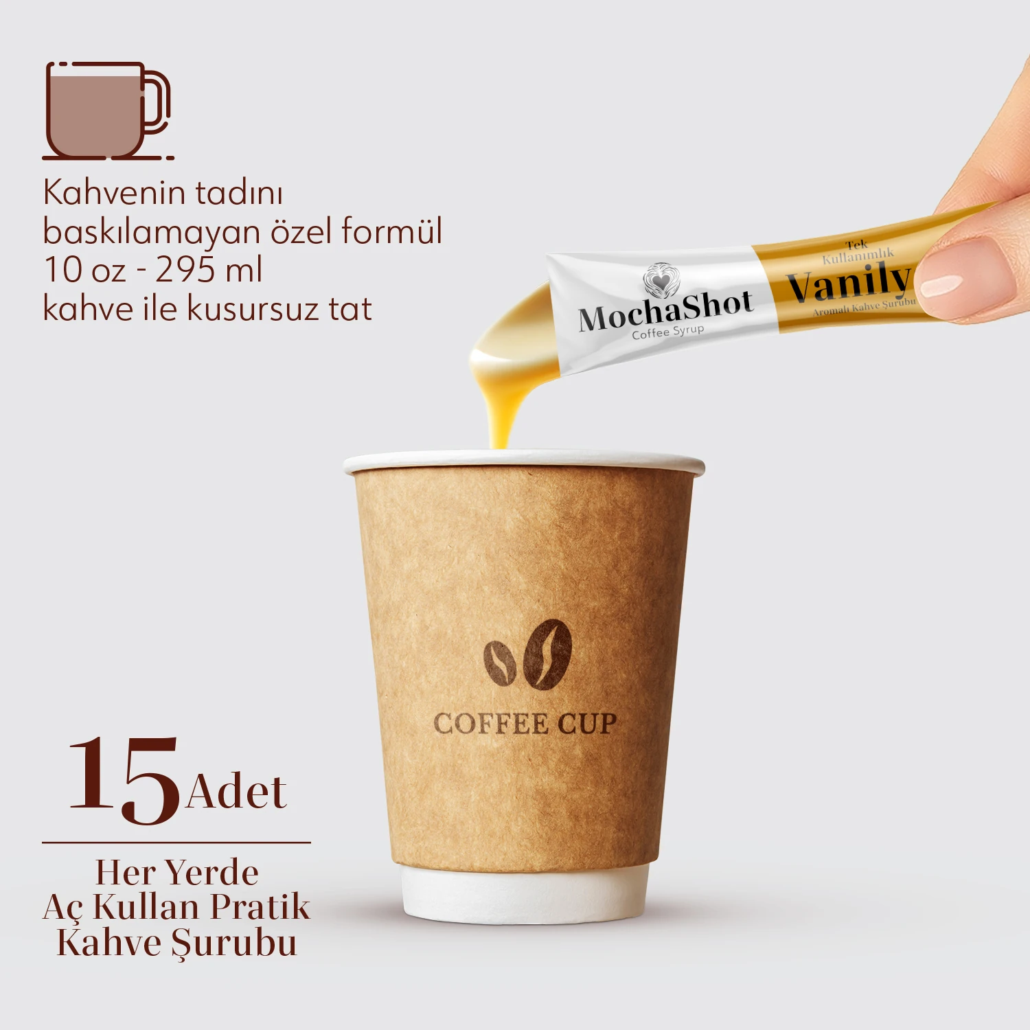 Kahve Mocha Shot Vanilya Aromalı Tek Kullanımlık Kahve Şurubu 20 ml x 15 Adet