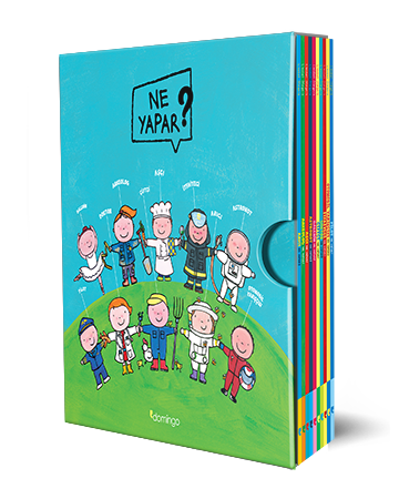 Büyüyünce ne olsam? Çocuklardan sık sık işittiğimiz bu soruya ünlü Belçikalı çocuk kitabı yazar ve çizeri Liesbet Slegers’in pek çok yanıtı var. 12 dilde yayımlanan 10 kitaplık NE YAPAR? serisi sevimli tasarımı ve eğlenceli metinleriyle çocuklarla buluşuyor. Çocuklar, aşçıların yeni lezzetler yarattıkları mutfaklarını ziyaret ediyor, hepimizin kahramanı olan itfaiyecilerle tanışıp pilotlarla gökyüzüne çıkıyorlar. İsterlerse çiftçi olup süt sağıyor, sebze meyve yetiştiriyor, isterlerse arkeolog olup havalı aletlerle tarihin gizemli derinliklerine iniyorlar. Kitabın sonunda ise onları eğlenceli sürprizler bekliyor: Hazinelerini gömebilir, doğru hortumu bulup itfaiyecilere yangını söndürmelerinde yardım edebilir ya da daha önce denemedikleri yeni tatları keşfedebilirler. Set içindeki kitaplar: