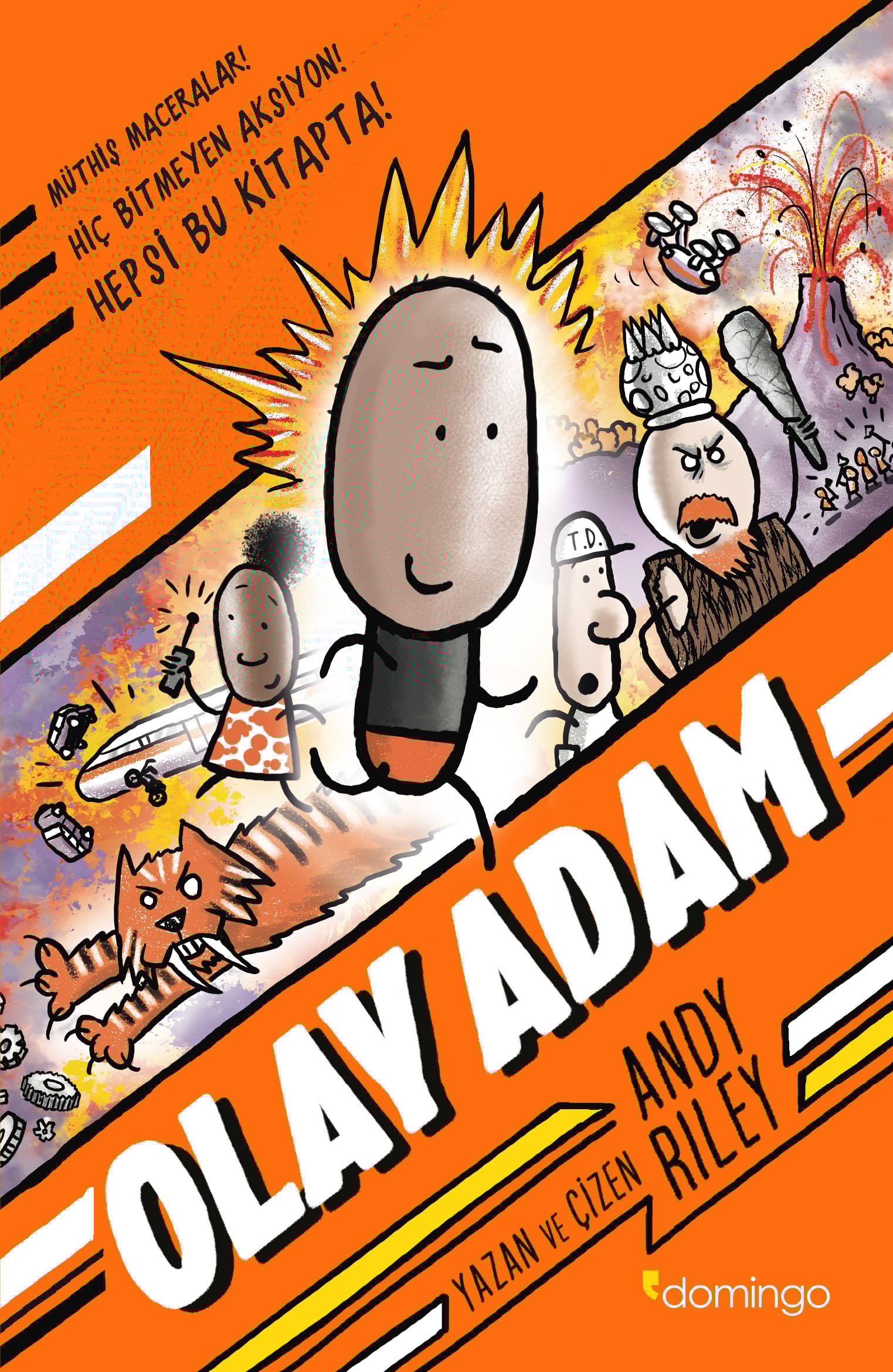 MÜTHİŞ MACERALAR! HİÇ BİTMEYEN AKSİYON! HEPSİ BU KİTAPTA! ADI… OLAY. SOYADI İSE… ADAM. Tema parkındaki robotlar çıldırdı! Şehrin bir kahramana ihtiyacı var! O kahramanın adı OLAY ADAM. SADECE TEHLİKE İÇİN YAŞIYOR! SADECE HEYECAN İÇİN YAŞIYOR! VE TABİİ, ANNESİYLE BİRLİKTE YAŞIYOR, ÇÜNKÜ HENÜZ DOKUZ YAŞINDA. Şimdi bir sürü şey önce GÜÜÜM!, sonra ÇAAT! edecek ve hatta ÇATIRRT! diyecek! Bu kitap, heyecan dolu bir hız treni! Arkadaşlık, eğlence ve bolca patlama çatlama dolu. ONUN ADI, OLAY ADAM. OLAY ADAM GELİYOR… İŞTE GELDİ!