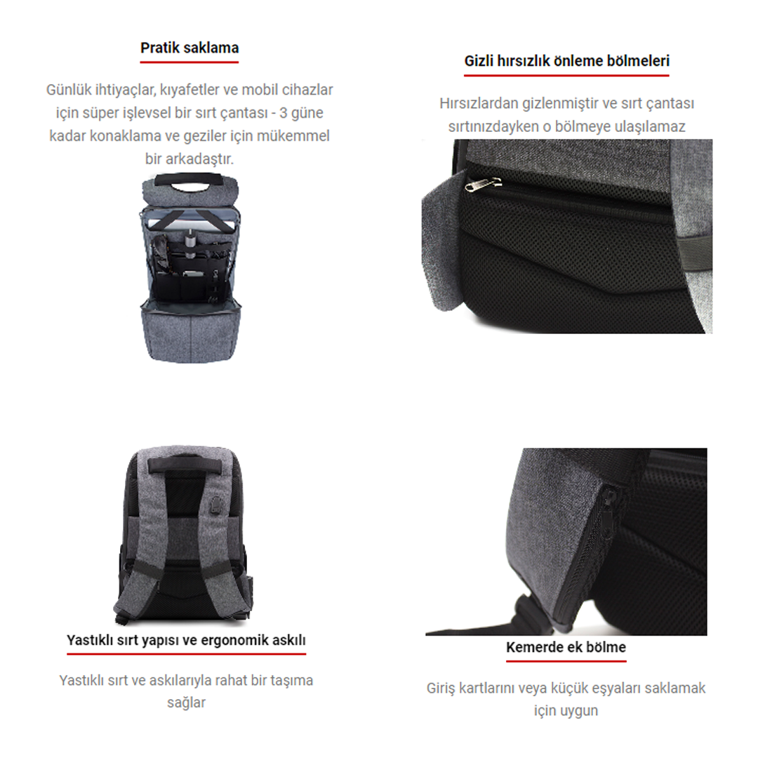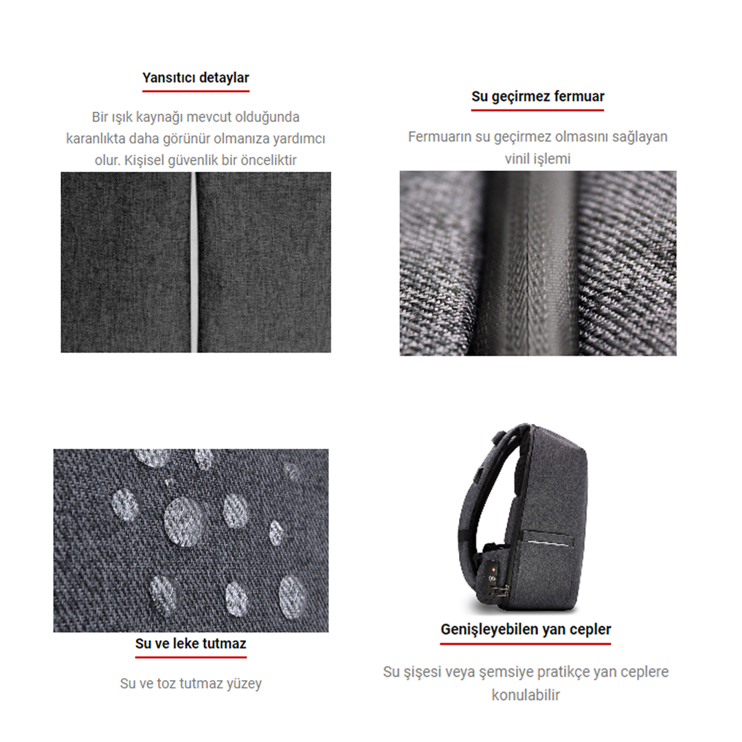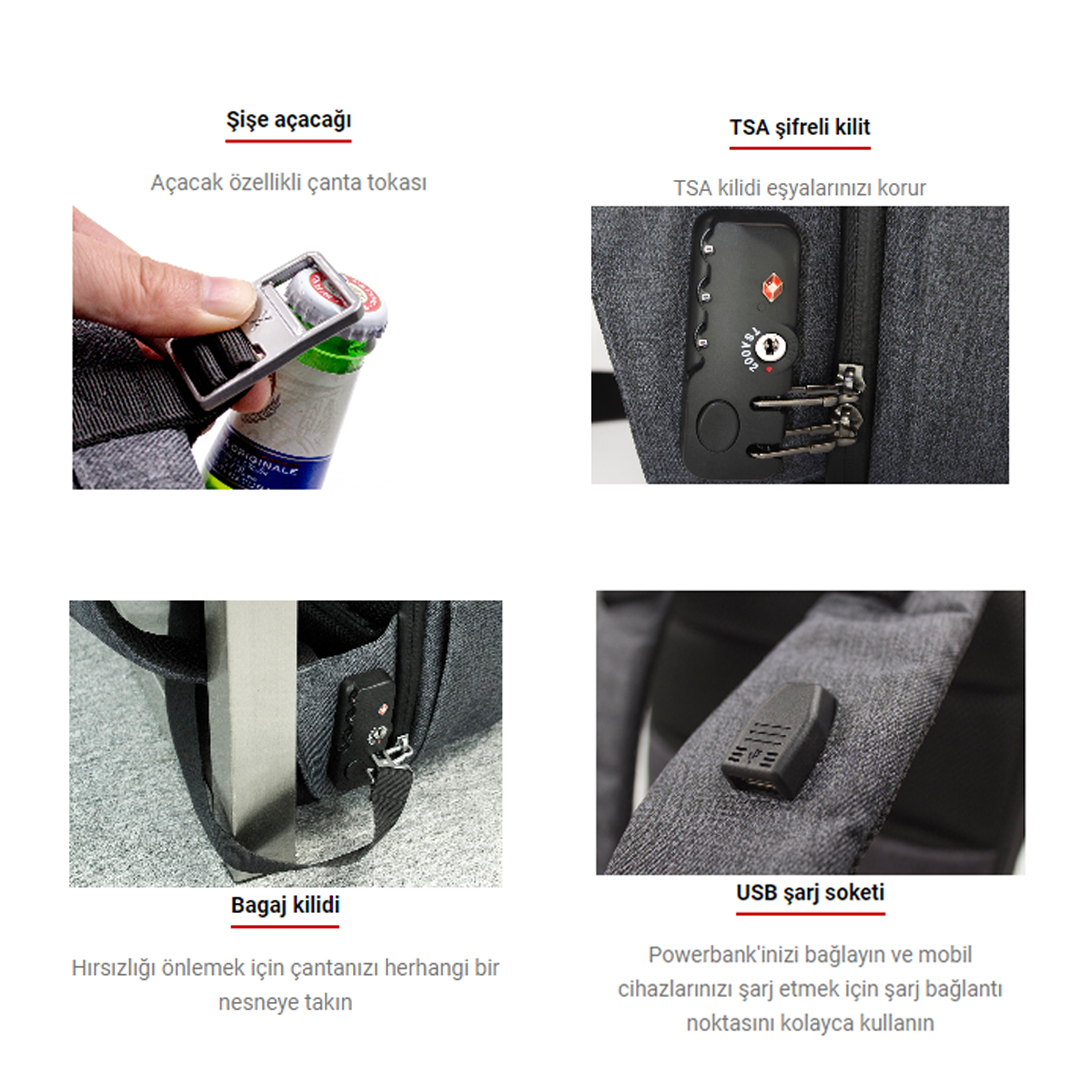 Çanta güzel ama usb girişi küçük geliyor kablolarıma, hızlı şarj da desteklemiyor.