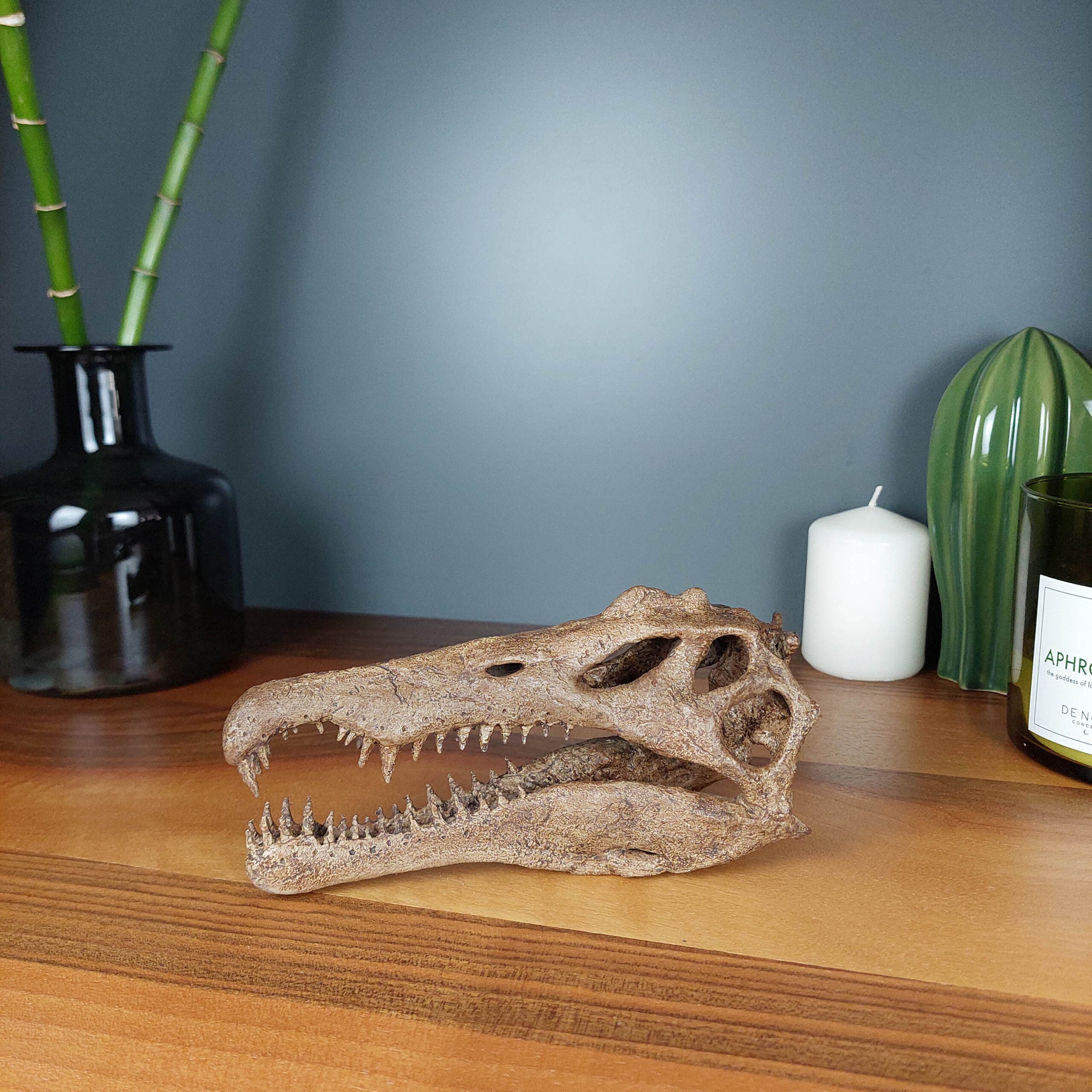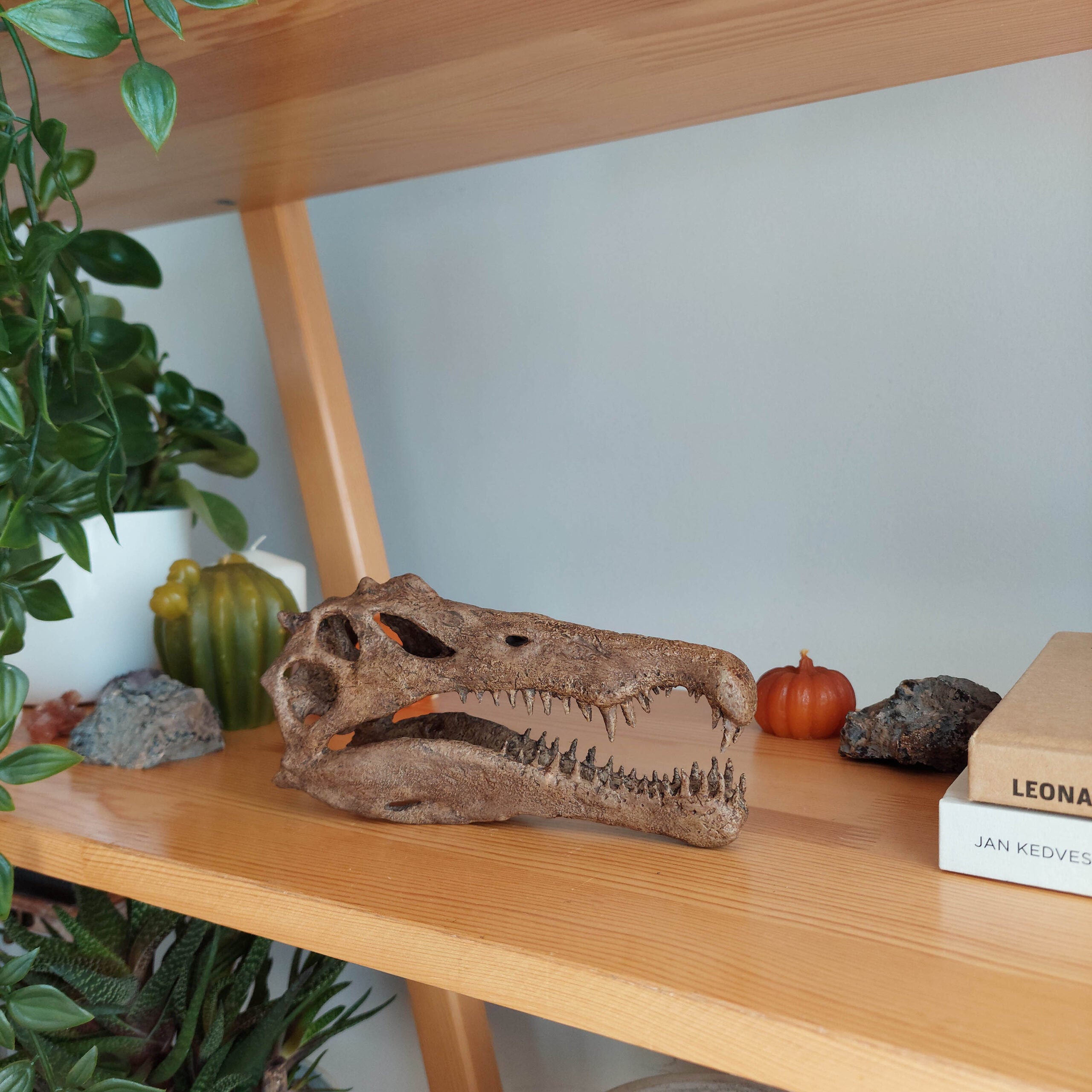 %100 El Yapımıdır. Yetişkin bir Spinosaurus fosilinin ölçüleri baz alınarak tasarlanmıştır.Polyester, resin ve plastik kullanılmadan üretilmiştir. Malzeme:Kil,Akrilik Boya Ürün Boyutları: 17cm x 6cm x 9 cm Not:Kişiye özel üretim yapıldığı için siparişiniz sonrasında heykel en geç 15 iş günü içerisinde kargoya verilecektir.