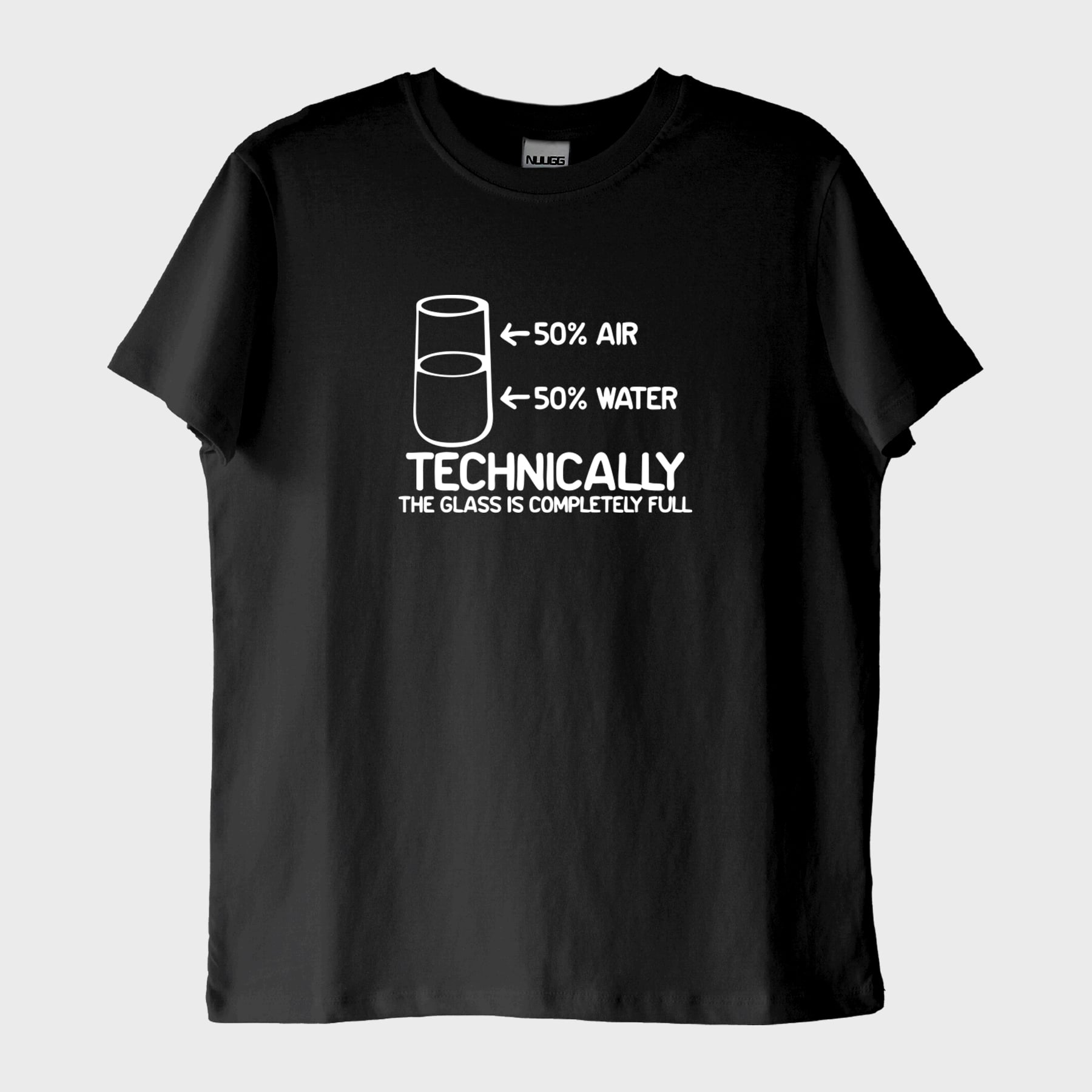Yarısı boş değil, tamamı dolu — sadece bakış açısı meselesi! “Technically, Glass is Full” tişörtü, bilimsel gerçeklerle mizahı birleştiren zeka dolu bir tasarım sunuyor. Yarı sıvı, yarı gaz... ama bütünüyle pozitif! Bu tişört; karamsarlığa bilimle karşı duranların, her duruma çözüm arayanların sembolü olacak. %100 pamuklu kumaşı sayesinde gün boyu konfor sağlarken, kaliteli baskısıyla uzun süre dolu dolu bir stil sunar. Bilime ve iyimserliğe inananlar için vazgeçilmez!
