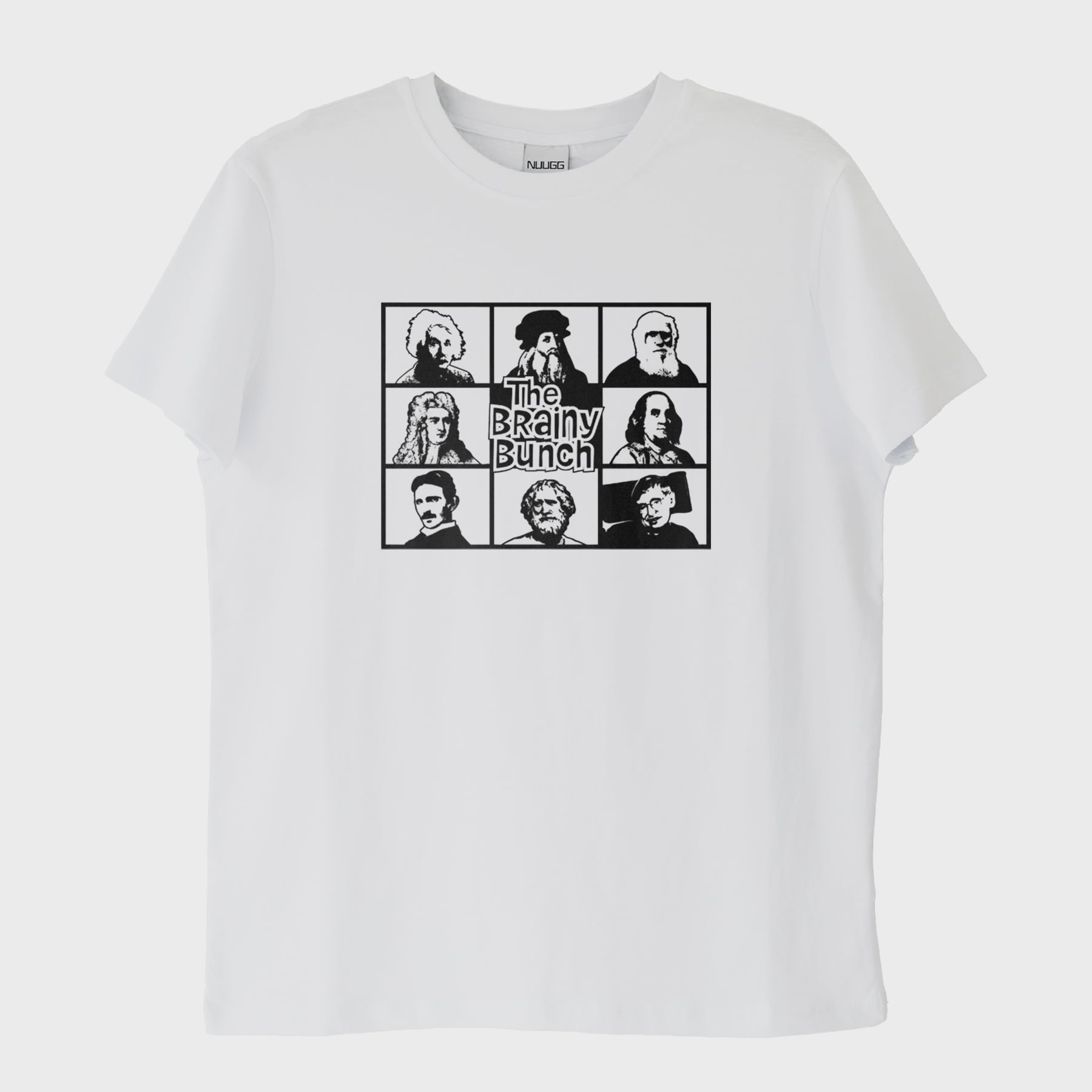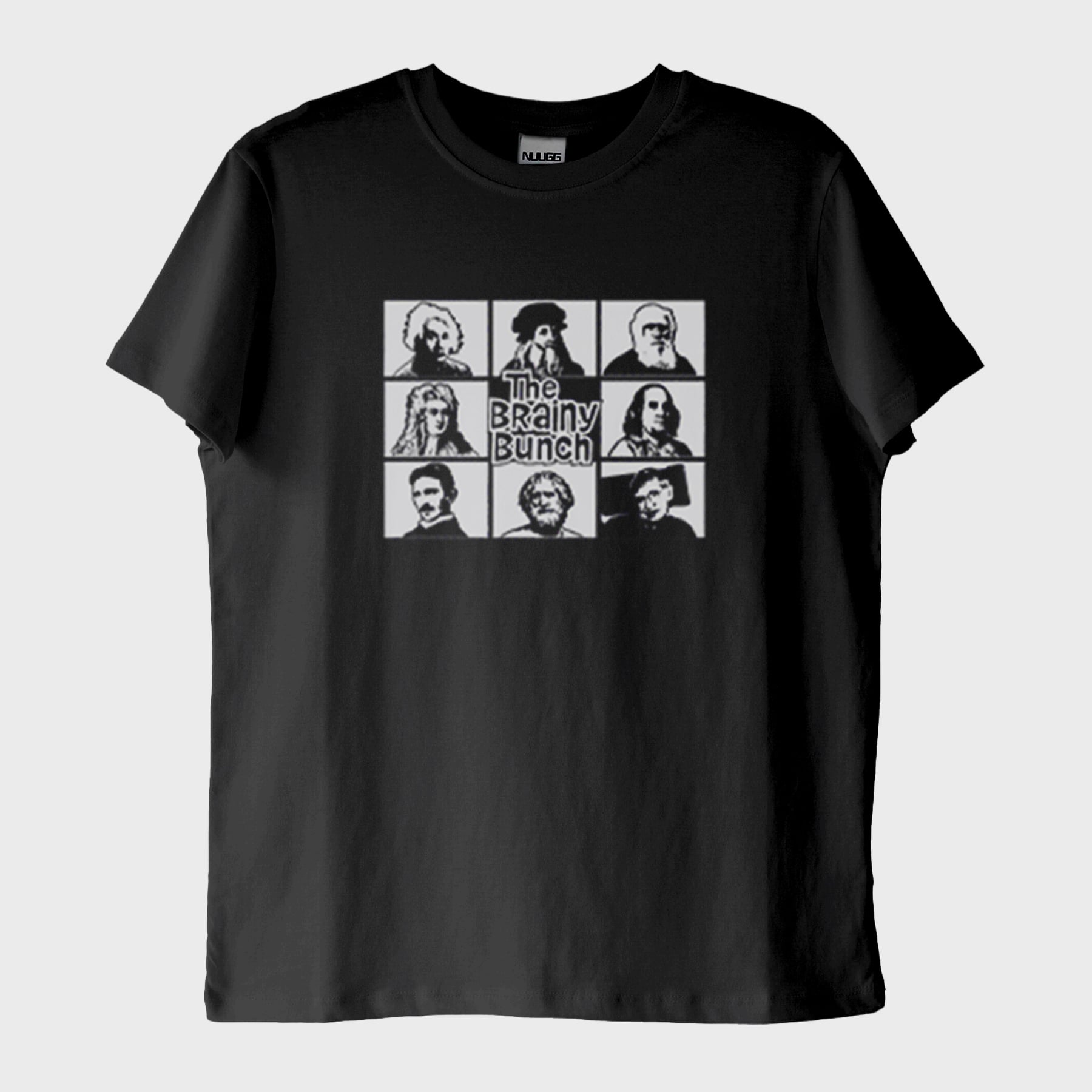 Bu t-shirt, "The Brainy Bunch" mesajıyla zekayı ve entelektüel stili kutluyor. %100 pamuklu yapısı sayesinde gün boyu konfor sağlarken, kaliteli baskısıyla uzun ömürlü kullanım sunar. Akıllı ve eğlenceli tasarımıyla, bilim ve düşünceye değer verenlerin favorisi olacak!