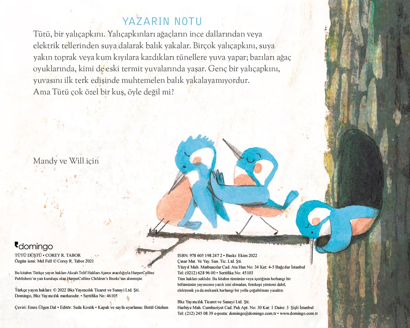 Bazen düşer, düşer, düşersin, ama sonra uçmayı öğrenir, yükselir, yükselir ve yükselirsin.  Minik yalıçapkını Tütü, o sabah tüm cesaretini toplayıp uçmaya karar verir. Kendini yuvadan aşağı bırakır ve başlar düşmeye. Neyse ki sen varsın! Tepetaklak başlayan bu yolculukta, kitabı doğru yerde çevirmeyi sakın unutma. İşte orada başlayacak, Tütü’nün muhteşem uçuşu. Ödüllü yazar ve çizer Corey R. Tabor’dan kendine inanmak üzerine yenilikçi ve eğlenceli bir kuş masalı. 2022 CALDECOTT ONUR ÖDÜLÜ ve 2022 ALA YILIN KİTAPLARI SEÇKİSİ