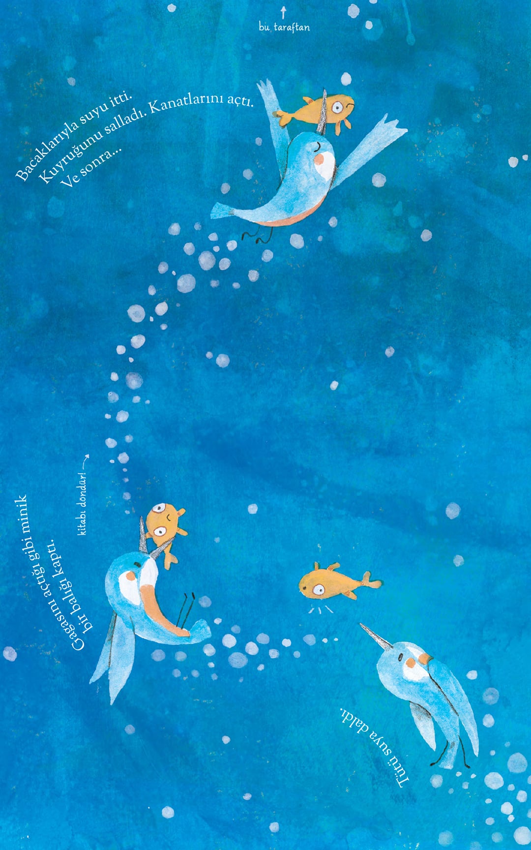 Bazen düşer, düşer, düşersin, ama sonra uçmayı öğrenir, yükselir, yükselir ve yükselirsin.  Minik yalıçapkını Tütü, o sabah tüm cesaretini toplayıp uçmaya karar verir. Kendini yuvadan aşağı bırakır ve başlar düşmeye. Neyse ki sen varsın! Tepetaklak başlayan bu yolculukta, kitabı doğru yerde çevir...
