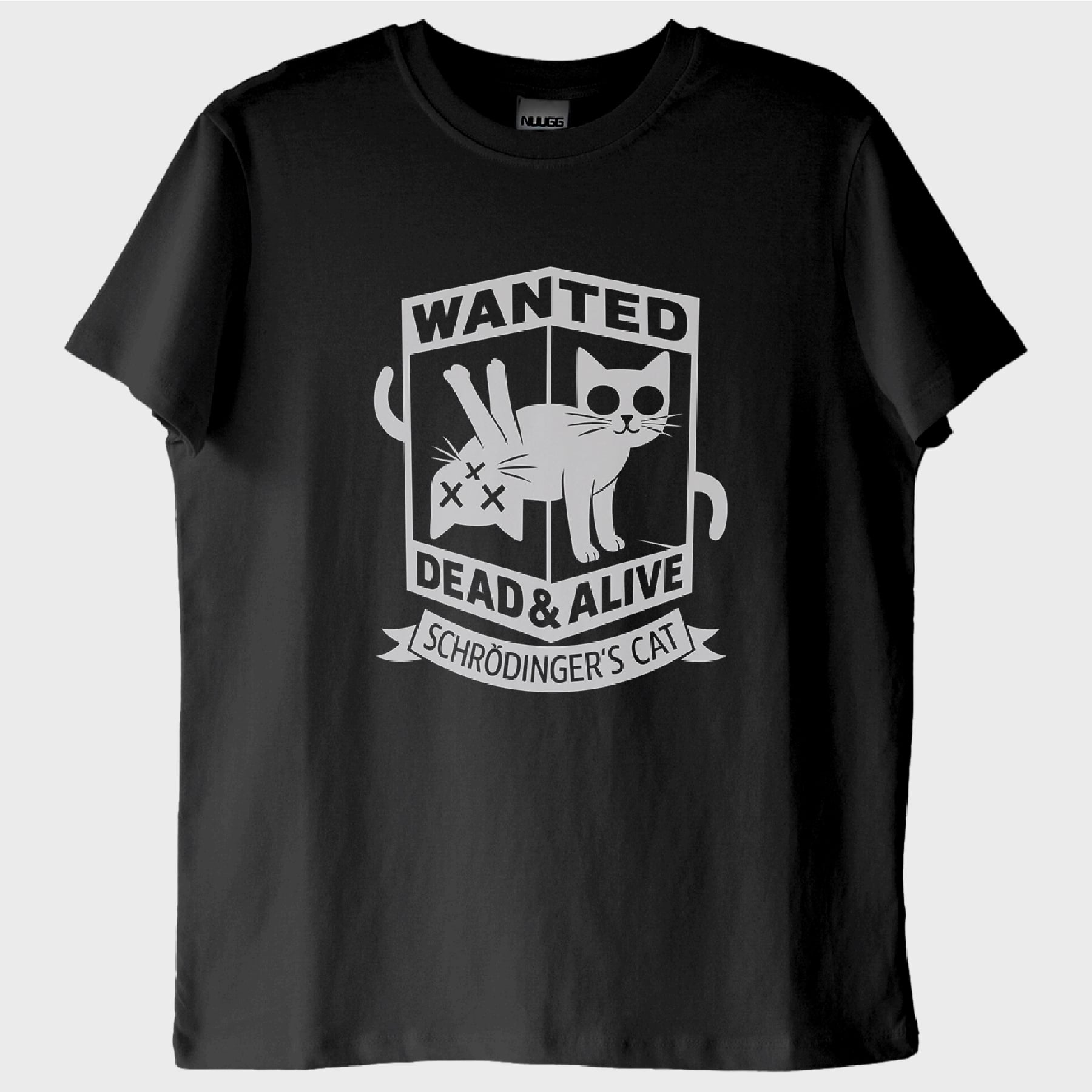 🐱 Aranıyor: Kuantumun Kaotik Kedisi! Schrödinger’in Kedisi tişörtü, yalnızca bir kıyafet değil; kuantum dünyasının en meşhur paradoksuna atılan cesur bir gönderme. Bu tasarımda aranan bir suçlu değil, olasılıkların kendisi! Ölü mü? Diri mi? Belki de ikisi birden... “Wanted: Dead & Alive” sloganıy...