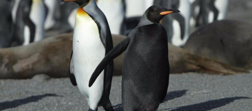 Bu, "melanistik" (melano?) bir penguen. Melanizm, albinizmin (albinoların) tam tersidir: Yani canlılar beyazımsı bir renge dönüşmek yerine, siyahî bir renge dönüşürler. Bu melanizmli penguen de, Ewan Edwards tarafından St. Andrews Körfezi'nde çekilmiştir. Bu siyah renge sebep olan şey, aşırı melanin pigmenti üretimidir. Yani albinolardakinin aksine, az melanin yerine çok melanin üretilir.
