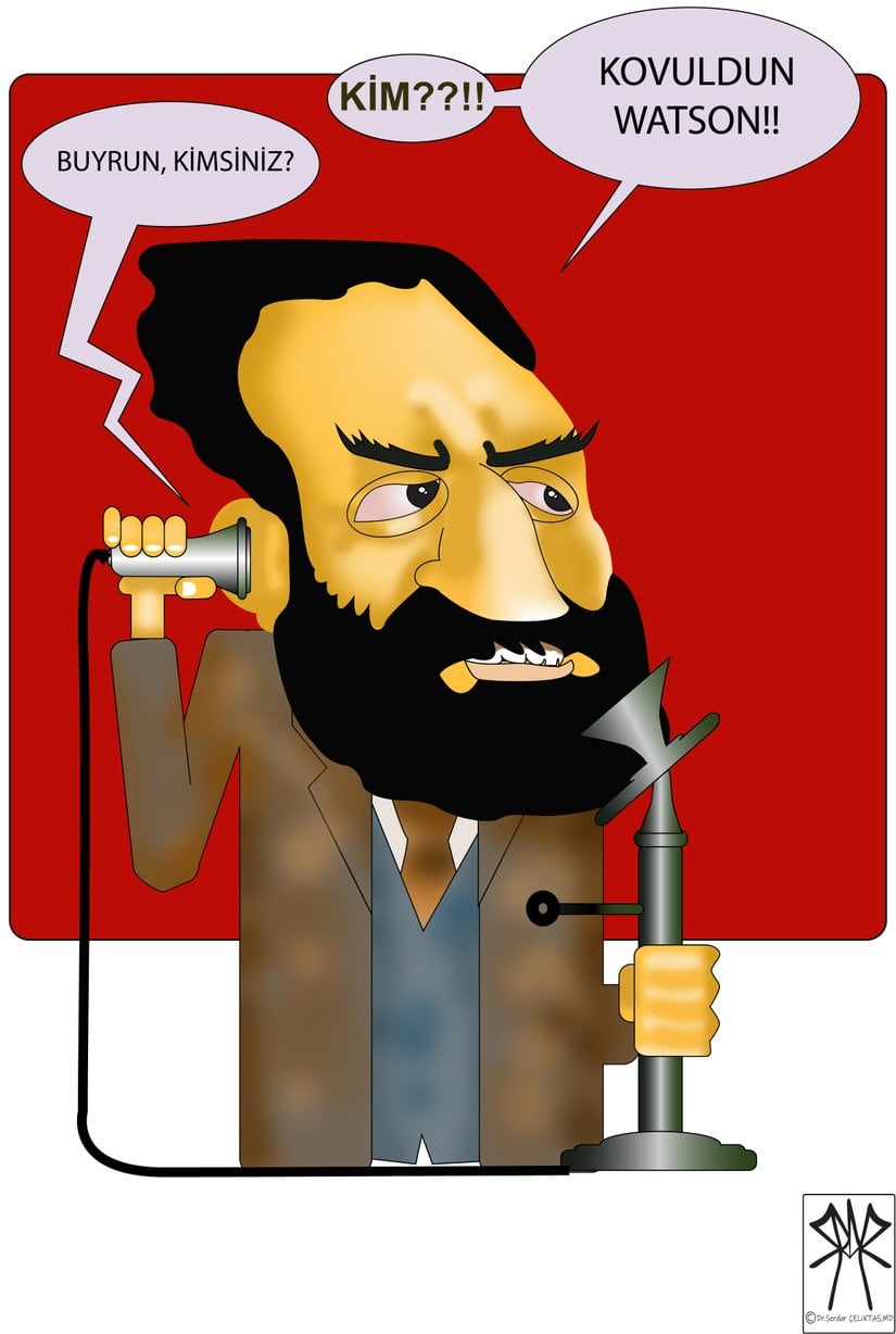 Ses tellerinin ve kulak zarının titreşimlerinden yola çıkıp, insan sesindeki frekansı elde ederek, bunları elektrik sinyali biçiminde bir telden iletmenin olanaklı olup olmadığını araştırıyordum. Elektrik mühendisi Watson, sevgili dostum ve yardımcım. Benim fikirlerimi gerçeğe dönüştüren ustaydı. Birlikte yaptığımız çalışmalar ve uzun uğraşlar sonucu sesin bir kablodan iletilebileceğinin sadece bir hayal olmadığını gördük ve ilk öncü telefonu çalıştırmayı başardık.