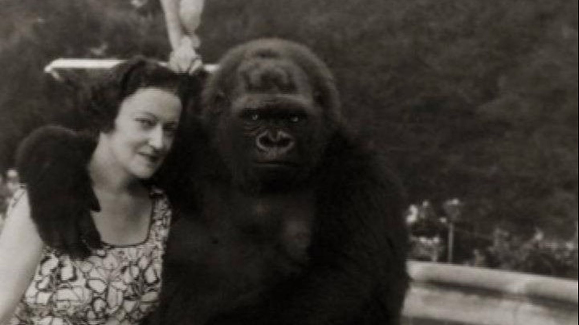 Aşağıdaki fotoğraf, 1940 yılında National Geographic'te yayınlandı. Fotoğrafta Maria Hoyt isimli bir kadın ile Toto isimli bir goril poz veriyor.