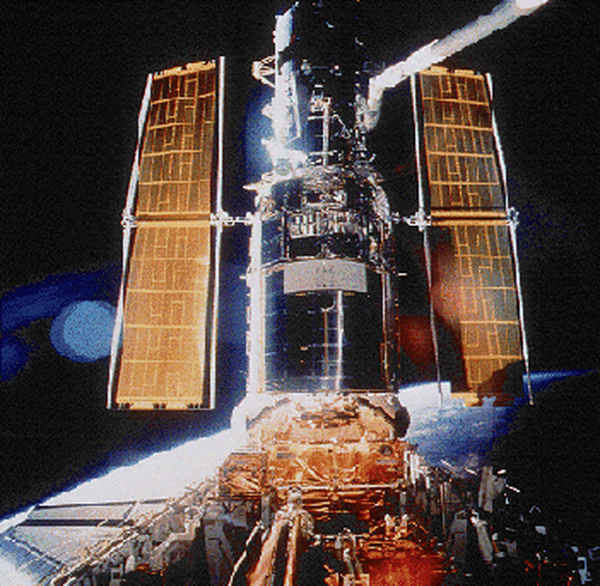 August 11, 1995 The Compton Gamma Ray Observatory Credit: NASA, Compton Gamma Ray Observatory Science Support Center Explanation: The Compton Gamma Ray Observatory (CGRO) was the most massive instrument ever launched by a NASA Space Shuttle and continues to revolutionize gamma-ray astronomy. This orbiting observatory sees the sky in gamma-ray photons - light so blue humans can't see it. These photons are blocked by the Earth's atmosphere from reaching the Earth's surface. Results from CGRO have shown the entire universe to be a violent and rapidly changing place - when viewed in gamma-rays. Astronomers using CGRO data continue to make monumental discoveries, including showing that mysterious flashes of gamma-rays are much more powerful than previously imagined, discovery of a whole new class of QSO, and discovery of objects so strange that astronomers can't yet figure out what they are.