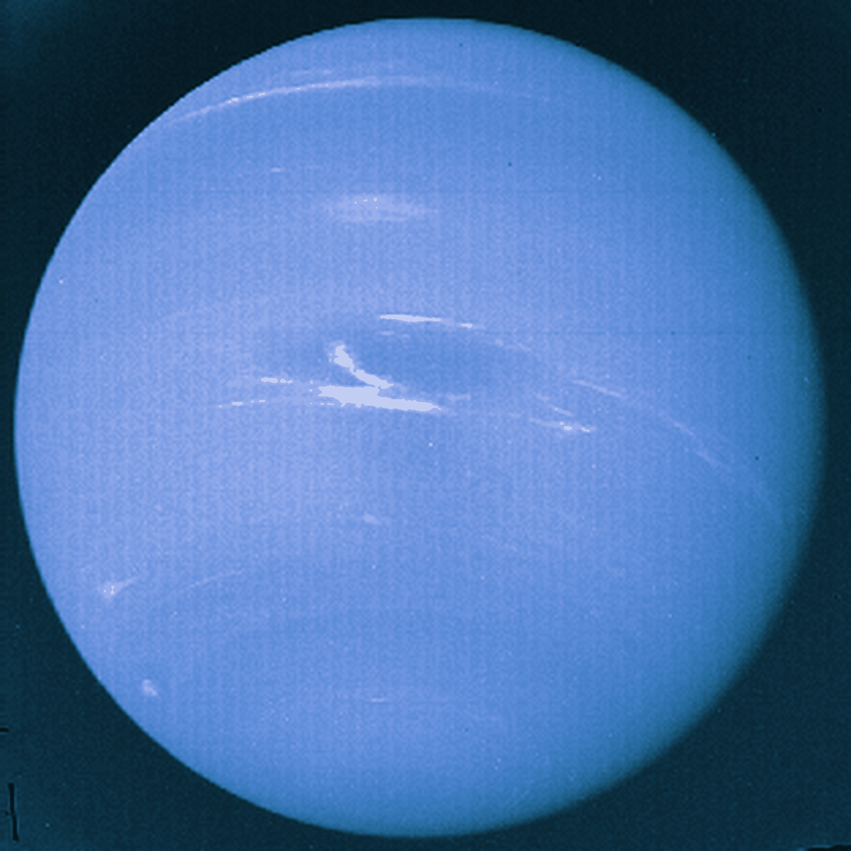 August 16, 1995 Uranus: The Tilted Planet Credit: NASA, Voyager 2 Explanation: This picture was snapped by the Voyager 2 spacecraft in 1986 - the only spacecraft ever to visit Uranus. Uranus is the third largest planet after Jupiter and Saturn. Uranus has many moons and a ring system. Uranus is composed mostly of liquid water, methane and ammonia, surrounded by a thick gas atmosphere of mostly hydrogen and helium. Uranus is peculiar in that its rotation axis is greatly tilted and sometimes points near the sun. It remains an astronomical mystery why Uranus' axis is so tilted. Uranus and Neptune are very similar.