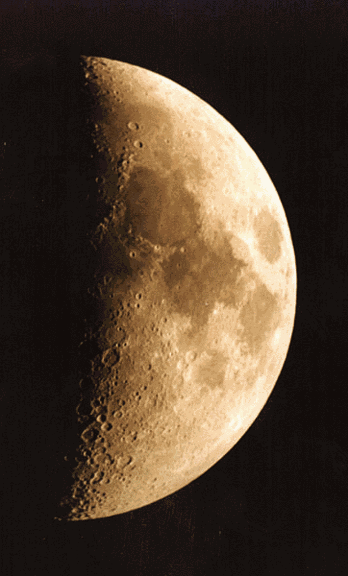 A clear blue summer sky finally grows dark and the new telescope, hastily set up in the backyard, generates excitment and anticipation. "I bought it for the kids ...", Dad assures himself as he over-anxiously supervises the two young boys' efforts to center a bright, first quarter Moon, in the finder. The evening's first target acquired, James adjusts the focus knob and falls silent. Suddenly, "Wow, looks just like on Apollo 13!". His younger brother Christopher takes his turn. "Do you see the Moon?", James asks, eager to provide guidance based on his own observing experience. Christopher echoes his brother's enthusiasm, "Yes, and I see all the crashes too!". The view they shared was not too different from the above image of a six day old moon, recorded in July 1995 by Rhode Island amateur astronomer Jim Hendrickson. Along the terminator, the line between lunar night and day, the shadows outline to advantage the spectacular craters -- caused by all the crashes.