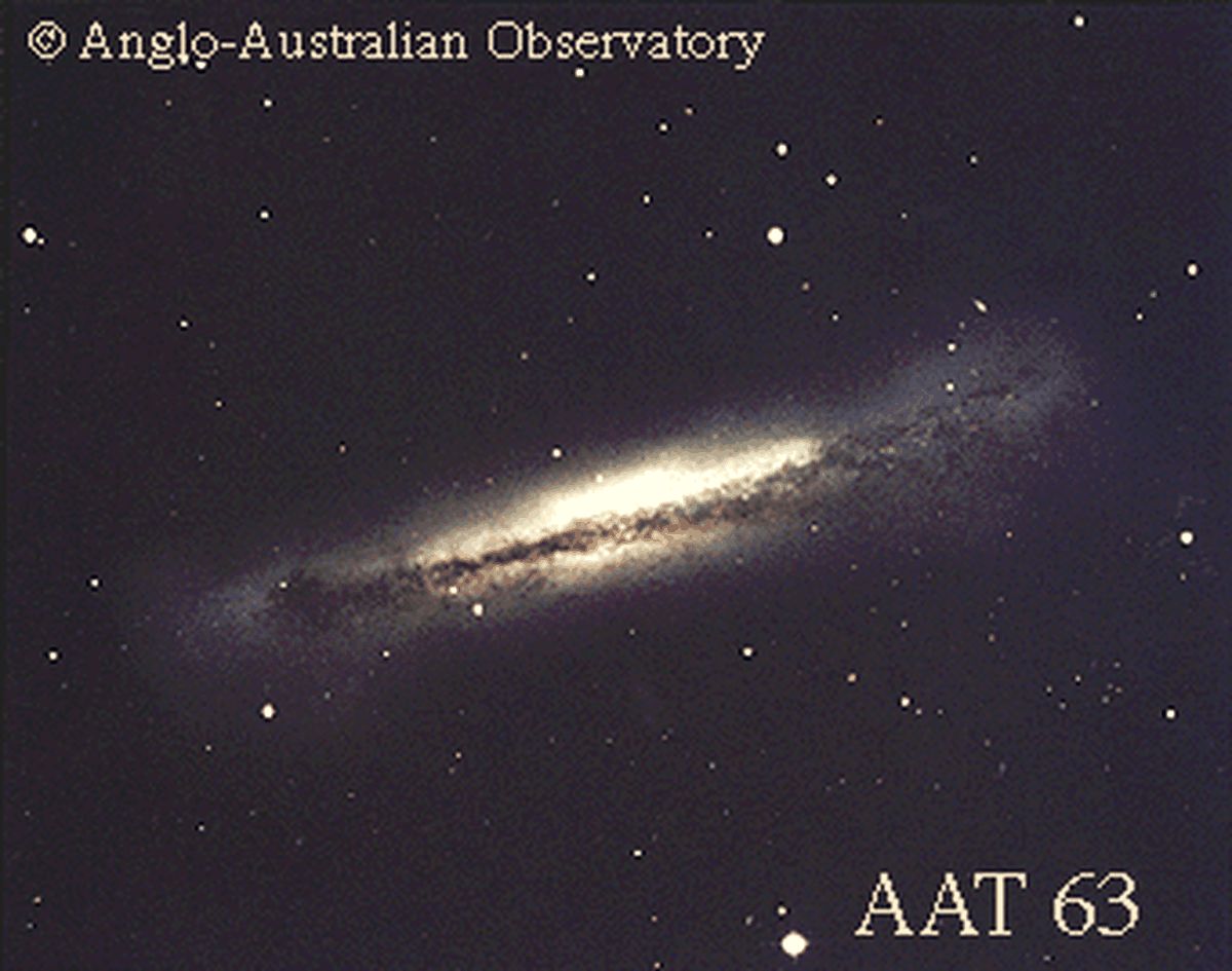 Explanation: This is what a spiral galaxy looks like sideways. This view of NGC 3628 nearly resembles our own Milky Way Galaxy, which is also known to be a spiral. The dark band across the center is absorbed starlight caused by the galaxy's own interstellar dust. NGC 3628 is the faintest member of the Leo Triplet, a group of galaxies dominated by M65 and M66. The Leo Triplet lies about 35 million light years distant. The center of NGC 3628 emits variable X-ray radiation perhaps indicating the presence of a massive black hole.